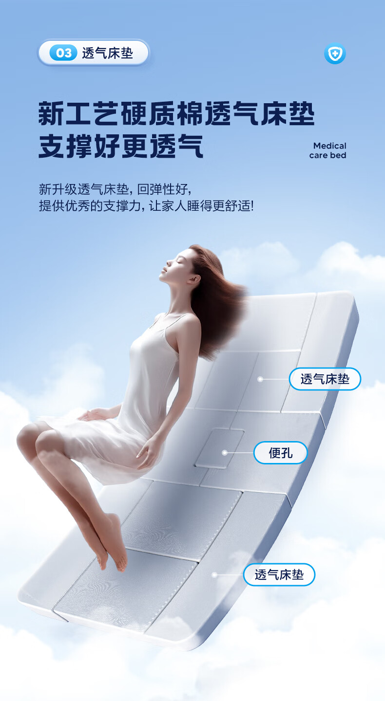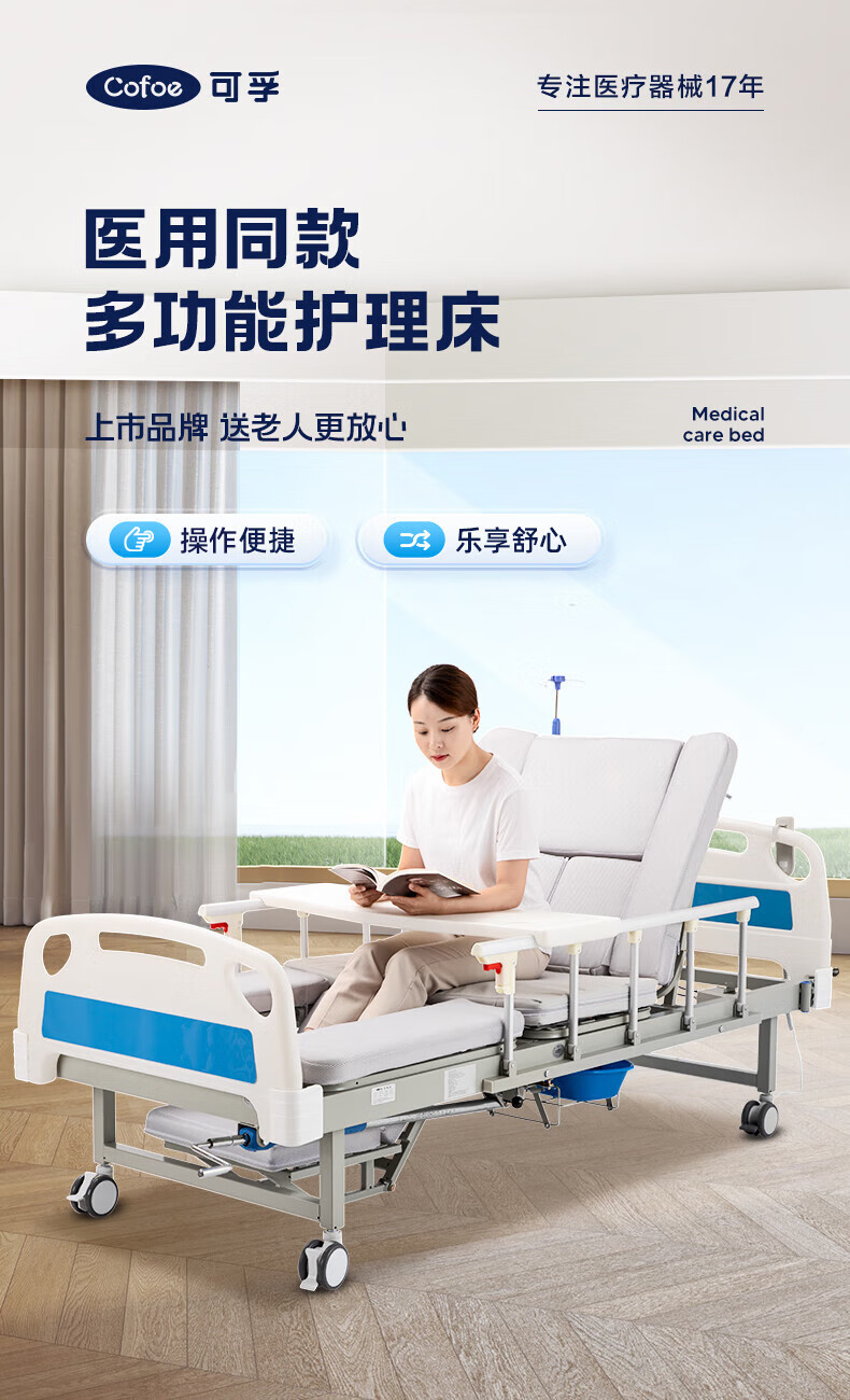可孚手动护理床老年人病床家用瘫痪病人医用医院医疗床KD-BC-D07