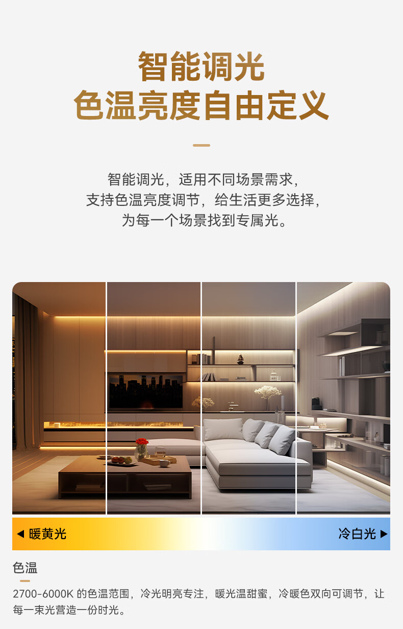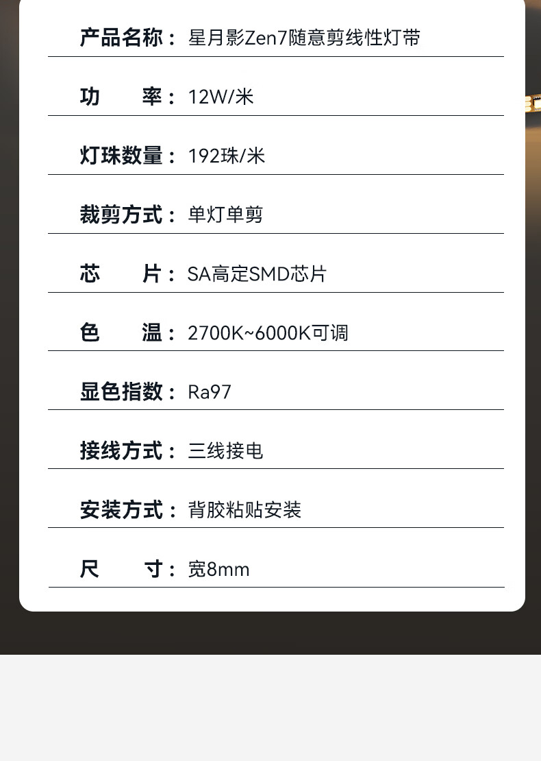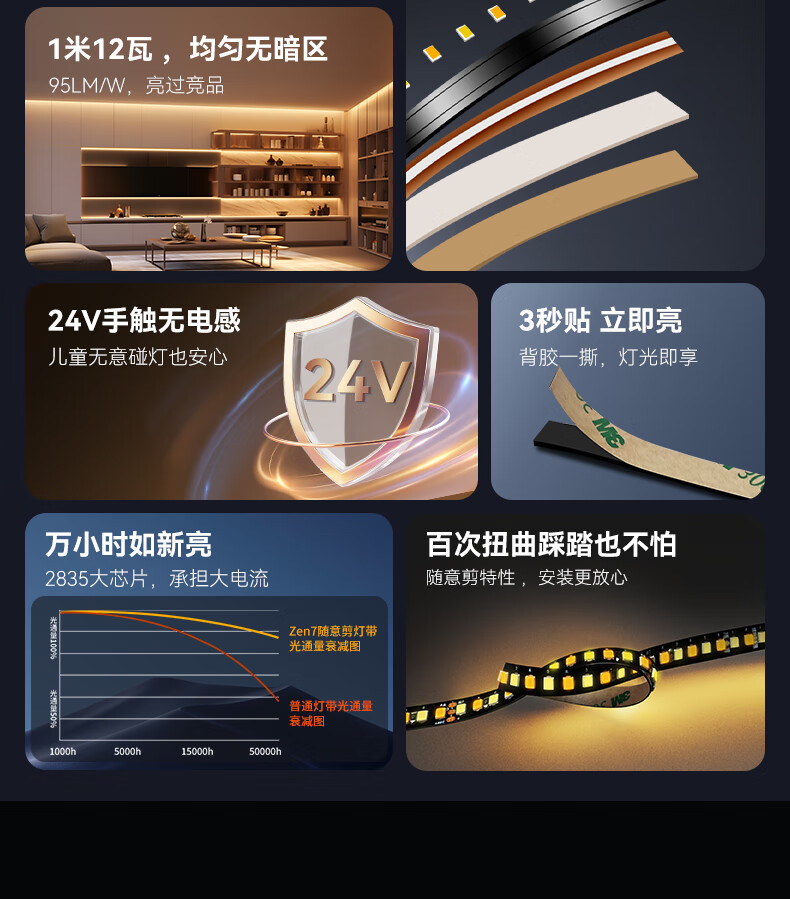 星月影Zen7双色温贴片灯带已接入米家APP客厅吊顶衣橱柜24V低压三线灯带 Zen7随意剪灯带10米【不含智能电源】