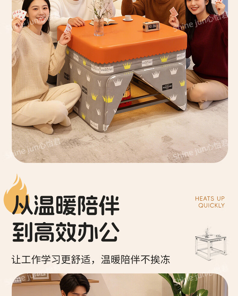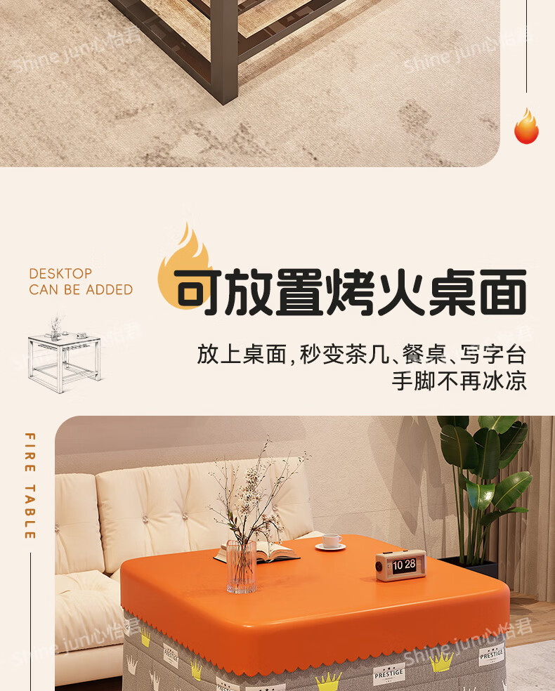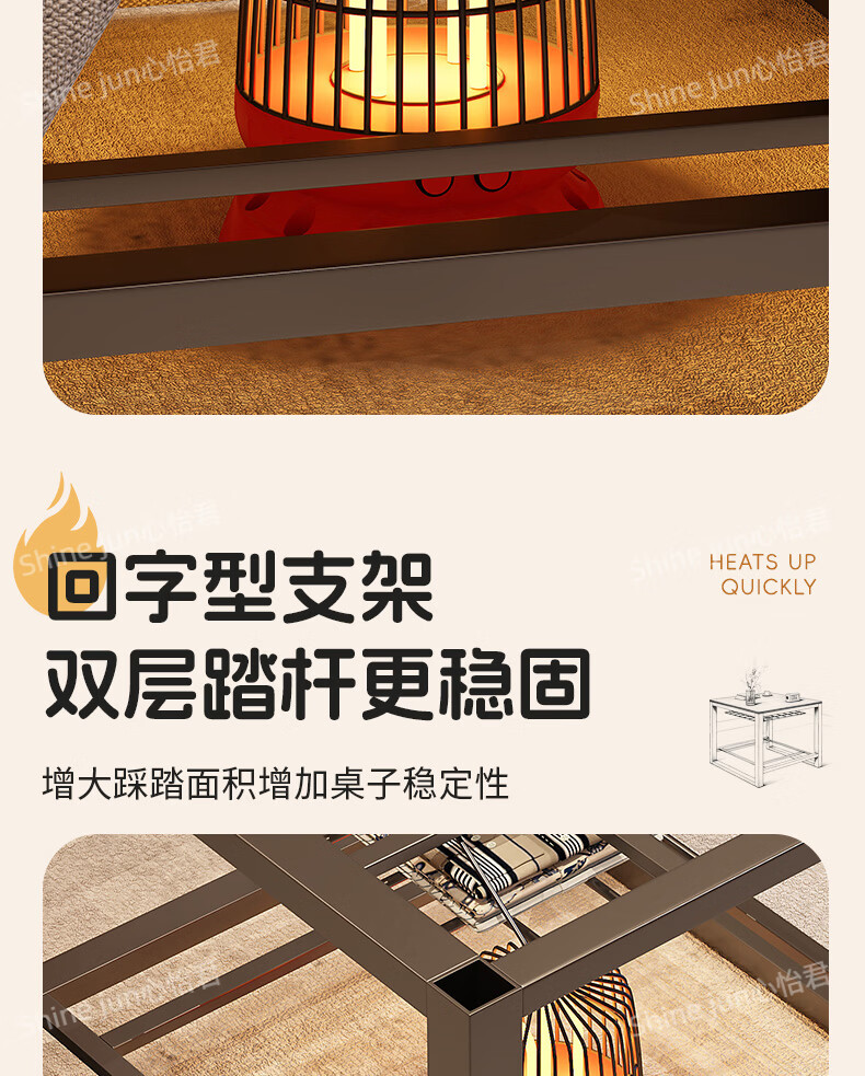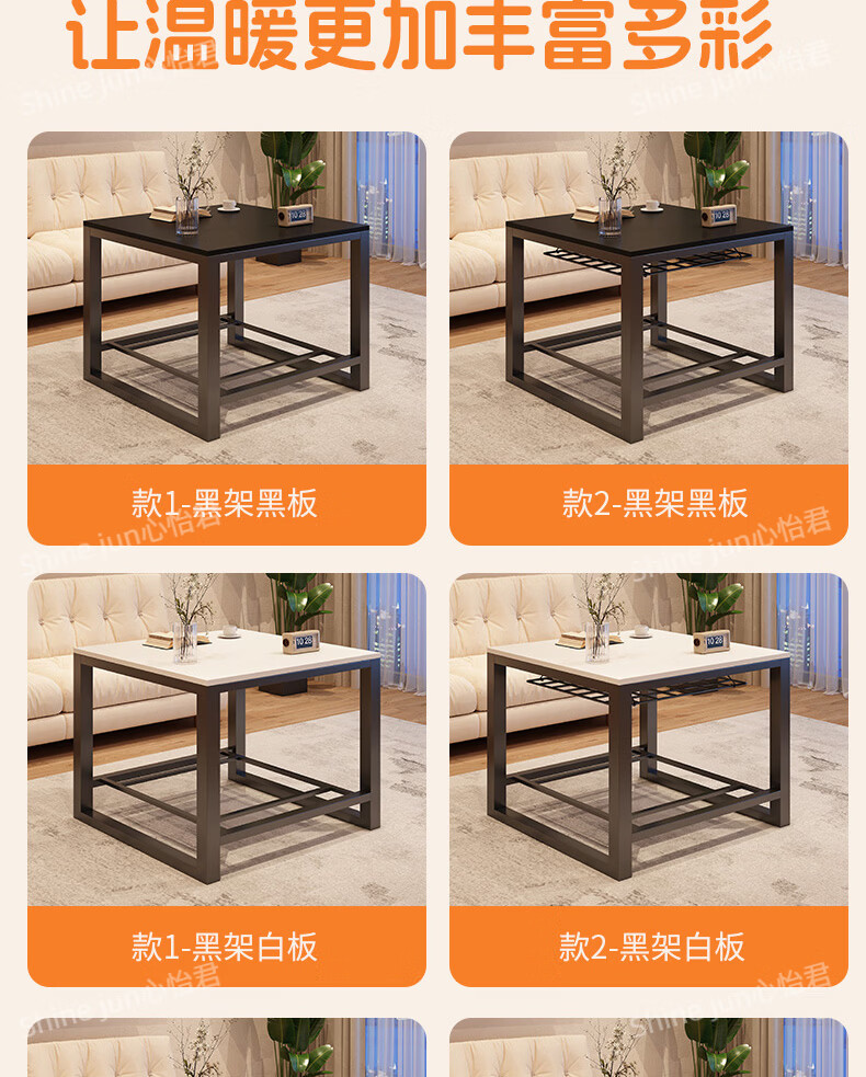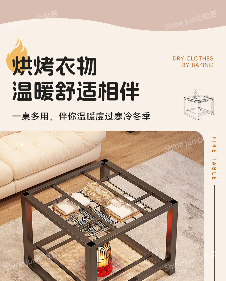 心怡君【免费送货上门】烤火桌多功能茶几冬季烤火桌家用取暖桌烤火架子 单架子【不含烘衣网】 长65宽65高65cm【加粗钢管】