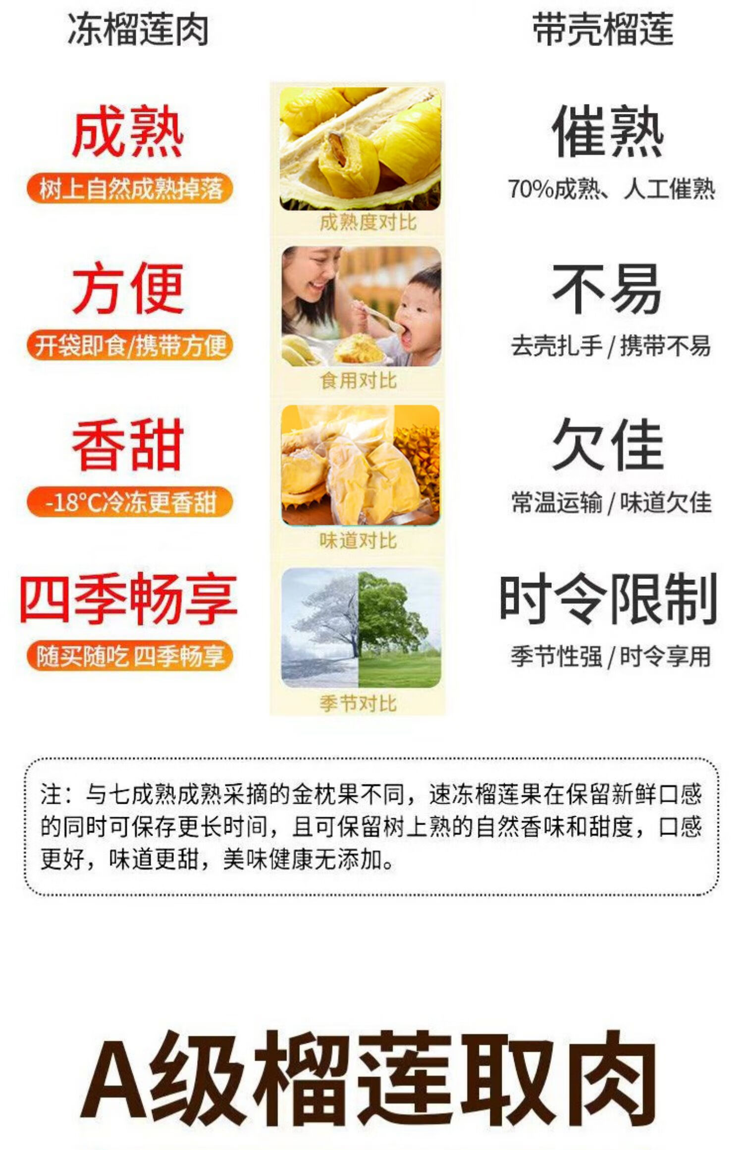泰国金枕榴莲泥榴莲肉冷冻无核速冻进口果肉泥榴莲酱烘培商用顺丰 【净重2斤】泰国3A级/软糯香甜/顺丰包邮/1000g*1包