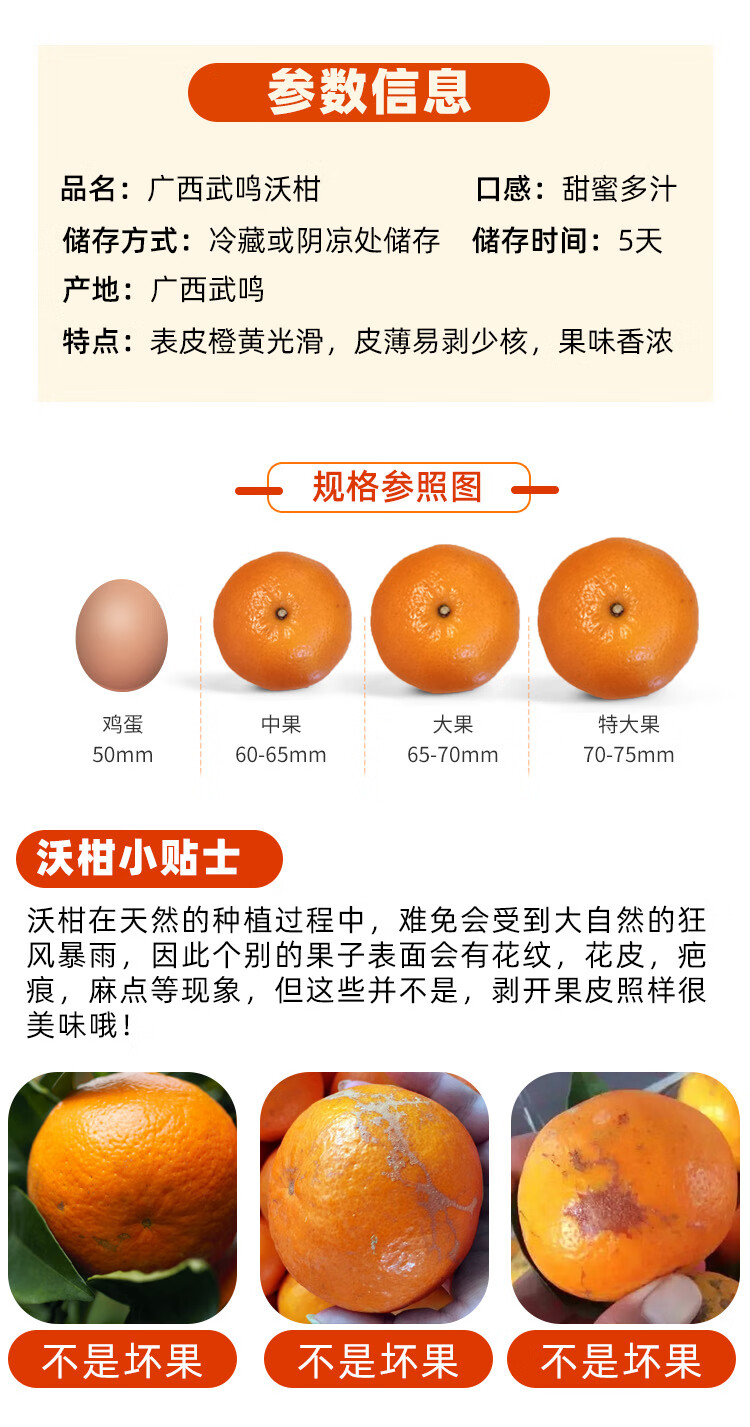 鑫佳叶广西武鸣沃柑新鲜采摘水果现摘现发 净重4.5斤装55mm+