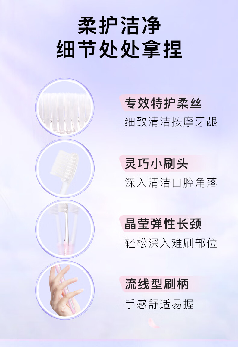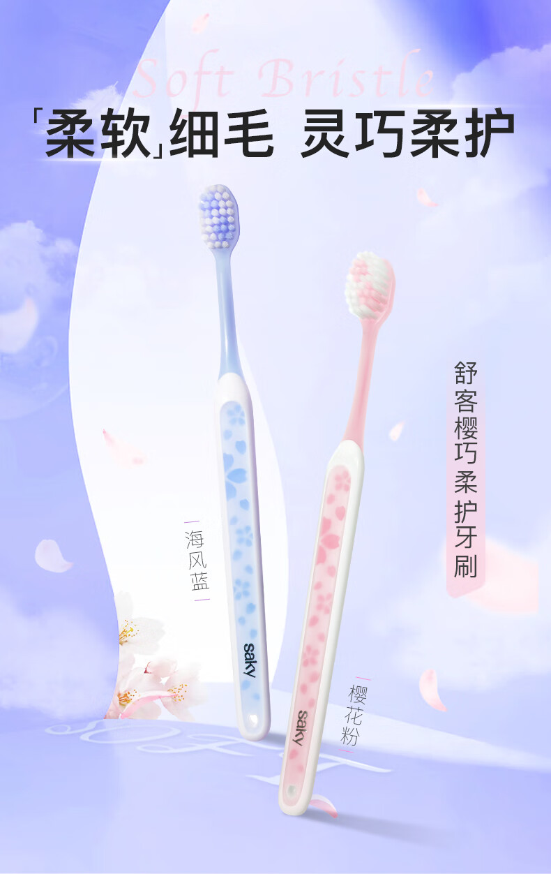 舒客花蕊樱巧柔护牙刷成人软毛牙刷情侣牙刷小头开学中秋教师节礼物 樱巧专效牙膏牙刷组合 2支
