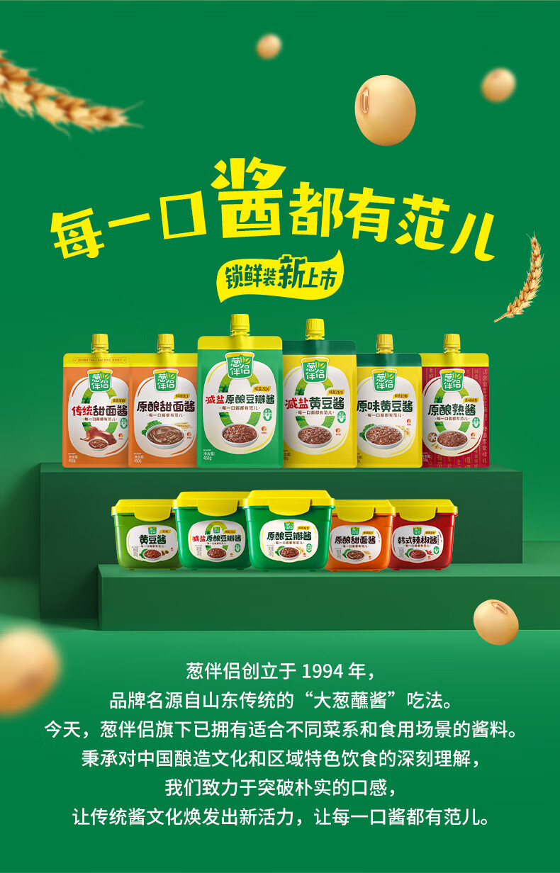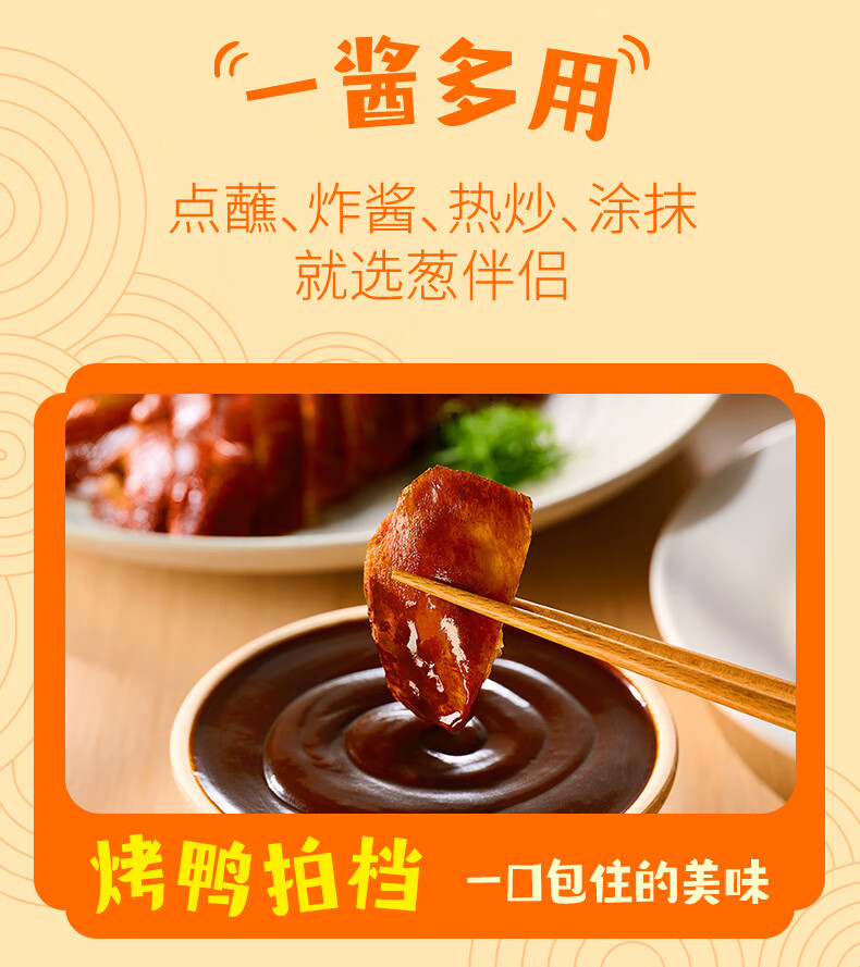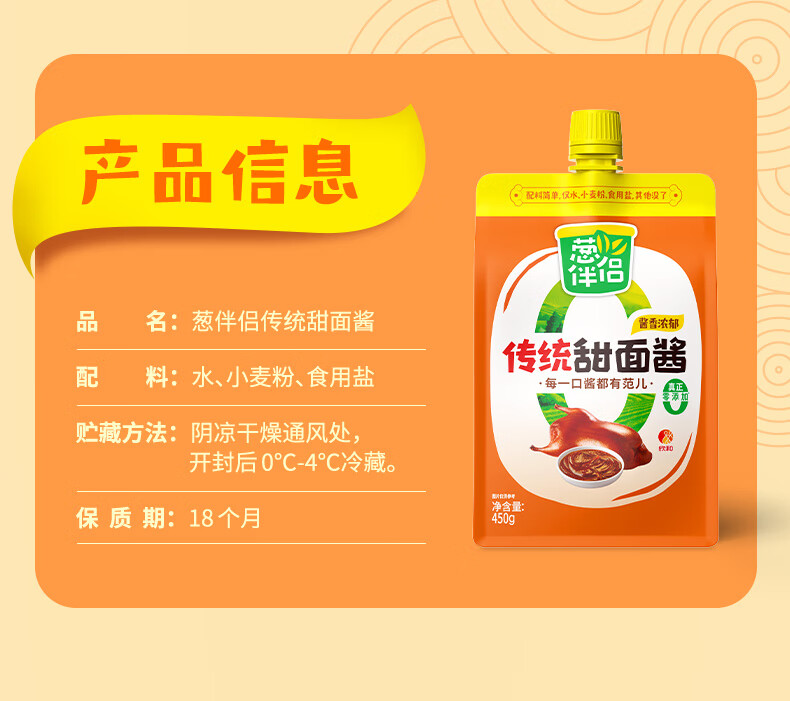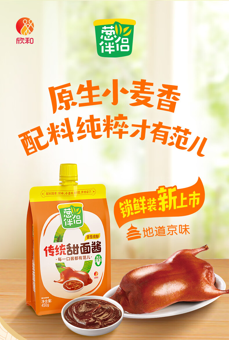 葱伴侣传统甜面酱450g加嘴装【0添加防腐剂】炒菜拌面酱六月香 欣和出品