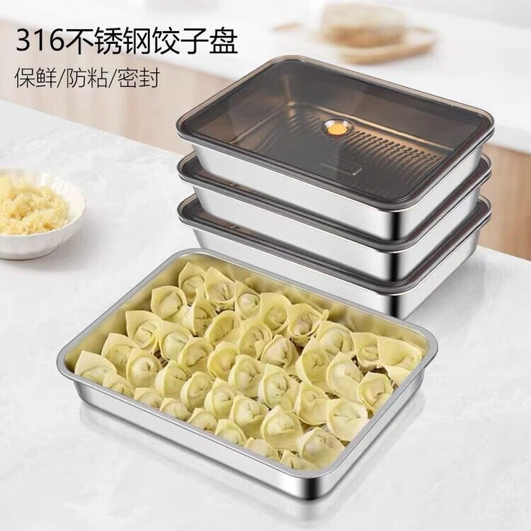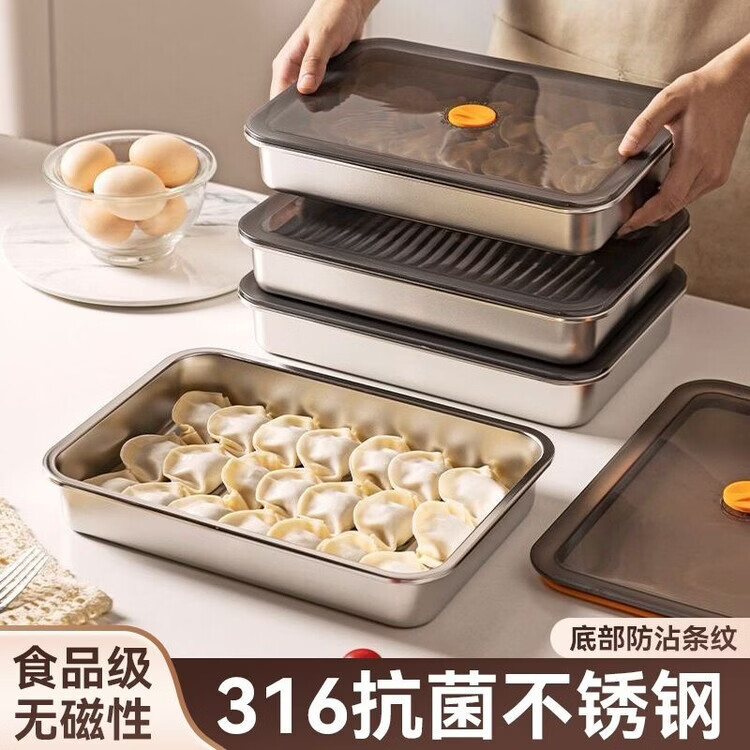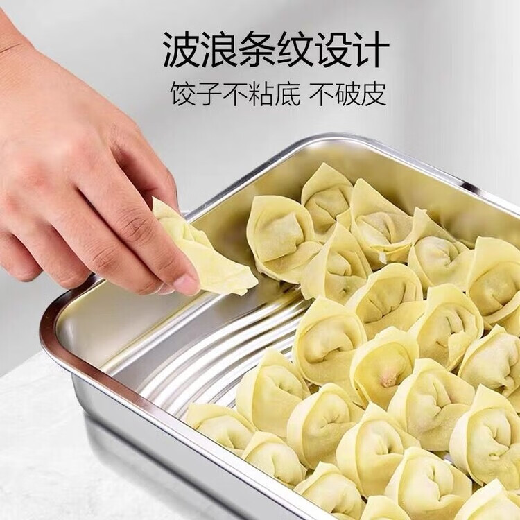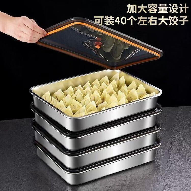 简漾不锈钢饺子盒食品级冷冻专用食品级装饺子速冻盒收纳盒冰箱用 一个装 特大号33x23x5cm