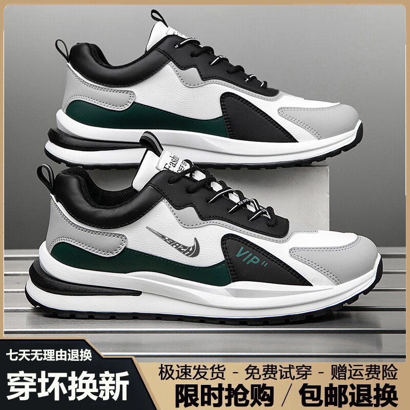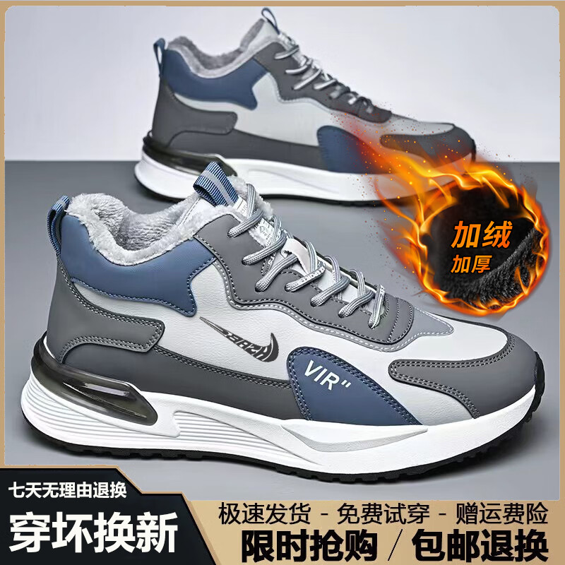 潮流轻奢男鞋2025秋冬季新款保暖运动鞋男软底休闲减震跑步鞋子男 NK336白兰色【皮面款】 42