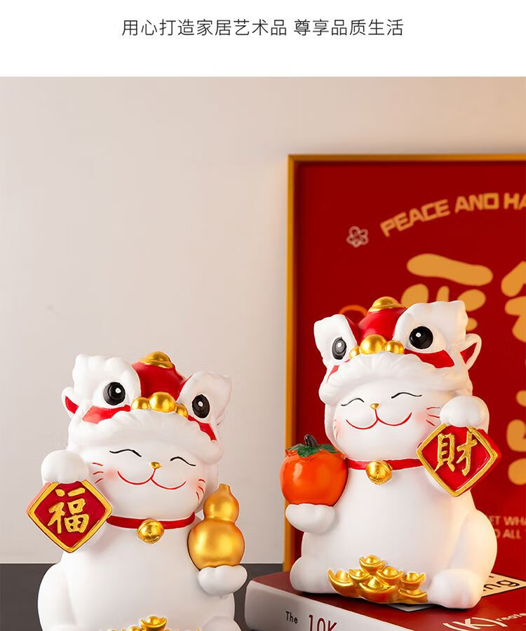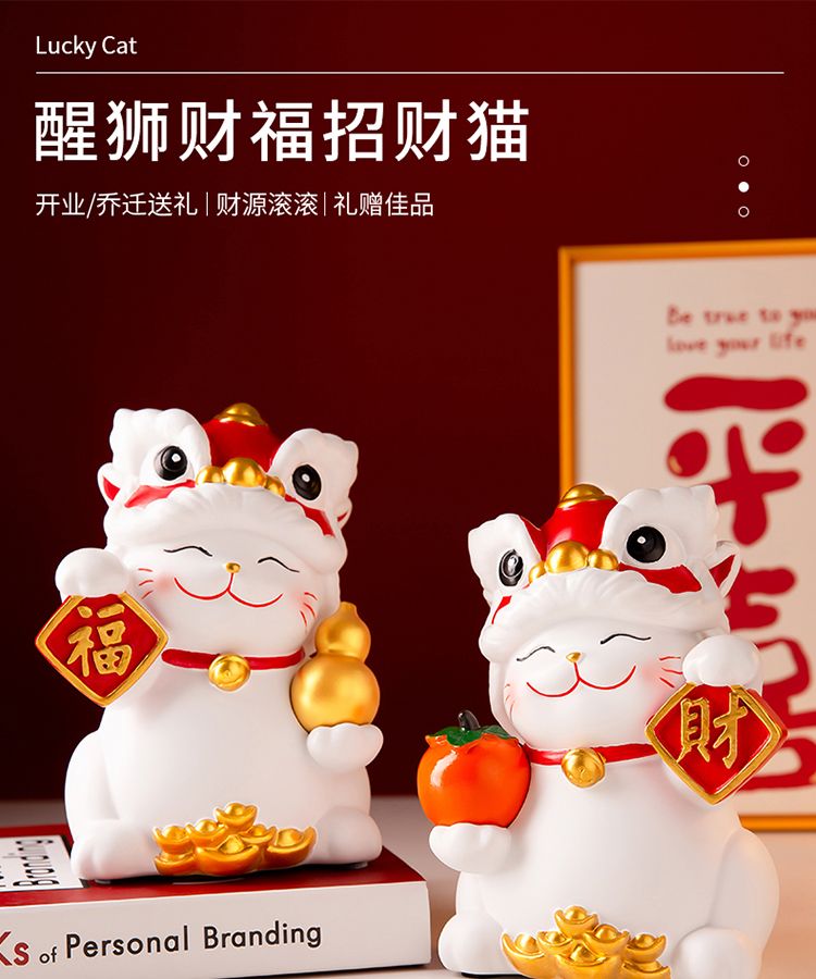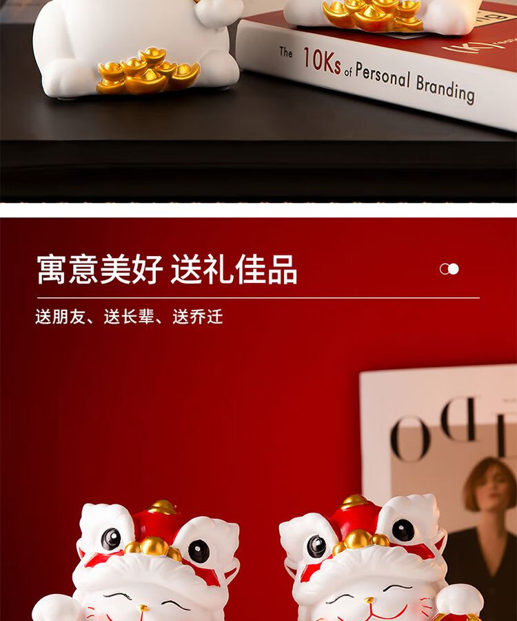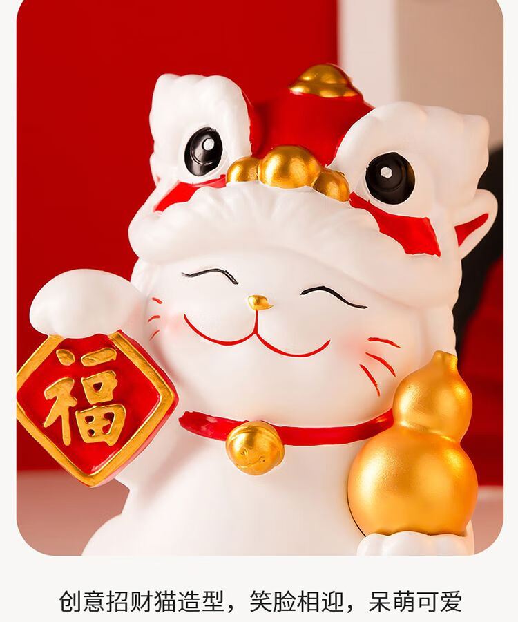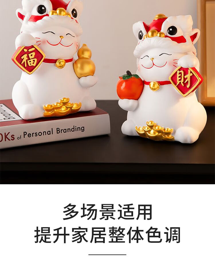 OYKTN国潮醒狮招财猫摆件搬家开业礼物客厅电视柜玄关装饰乔迁新居礼品 醒狮招财猫白色【财字】1