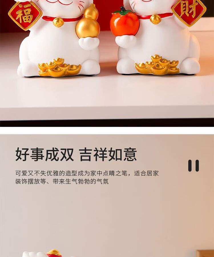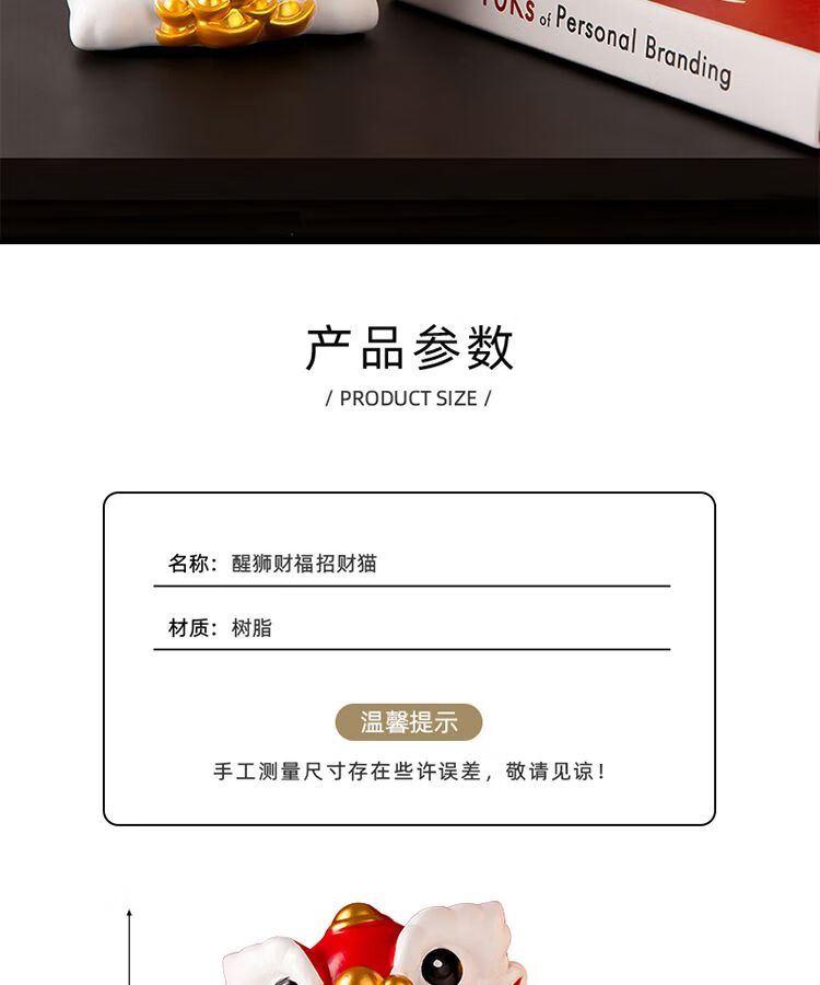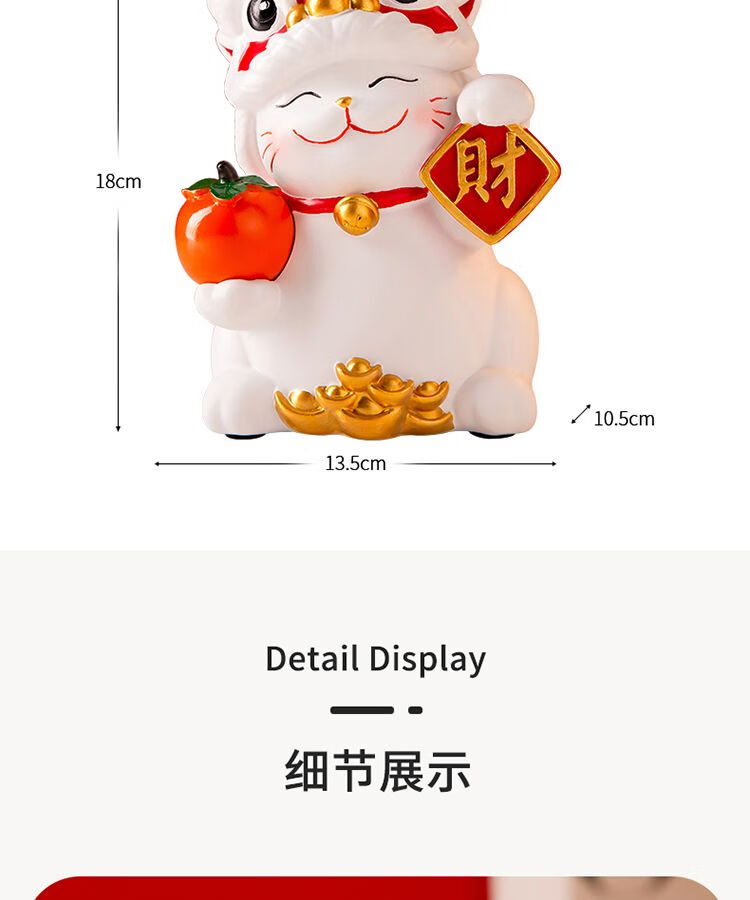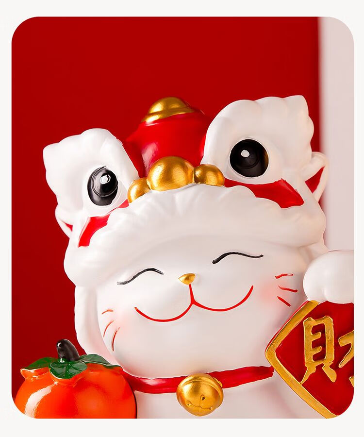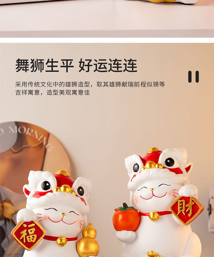OYKTN国潮醒狮招财猫摆件搬家开业礼物客厅电视柜玄关装饰乔迁新居礼品 醒狮招财猫白色【财字】1