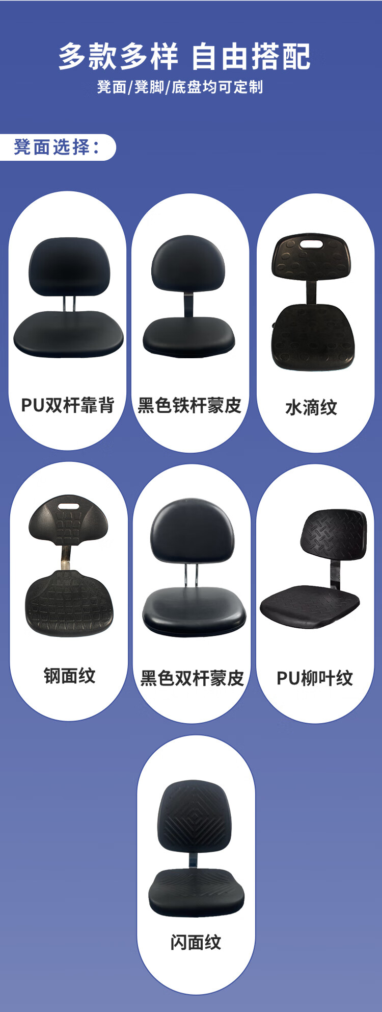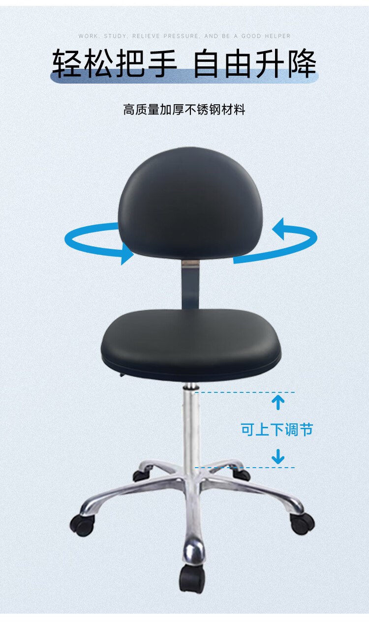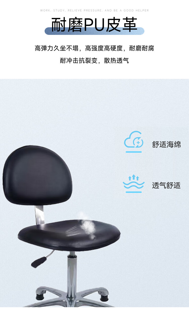 迈途森PU蒙皮铁背升降椅车间流水线皮革靠背椅实验室升降皮革凳子 电镀五星大杯款