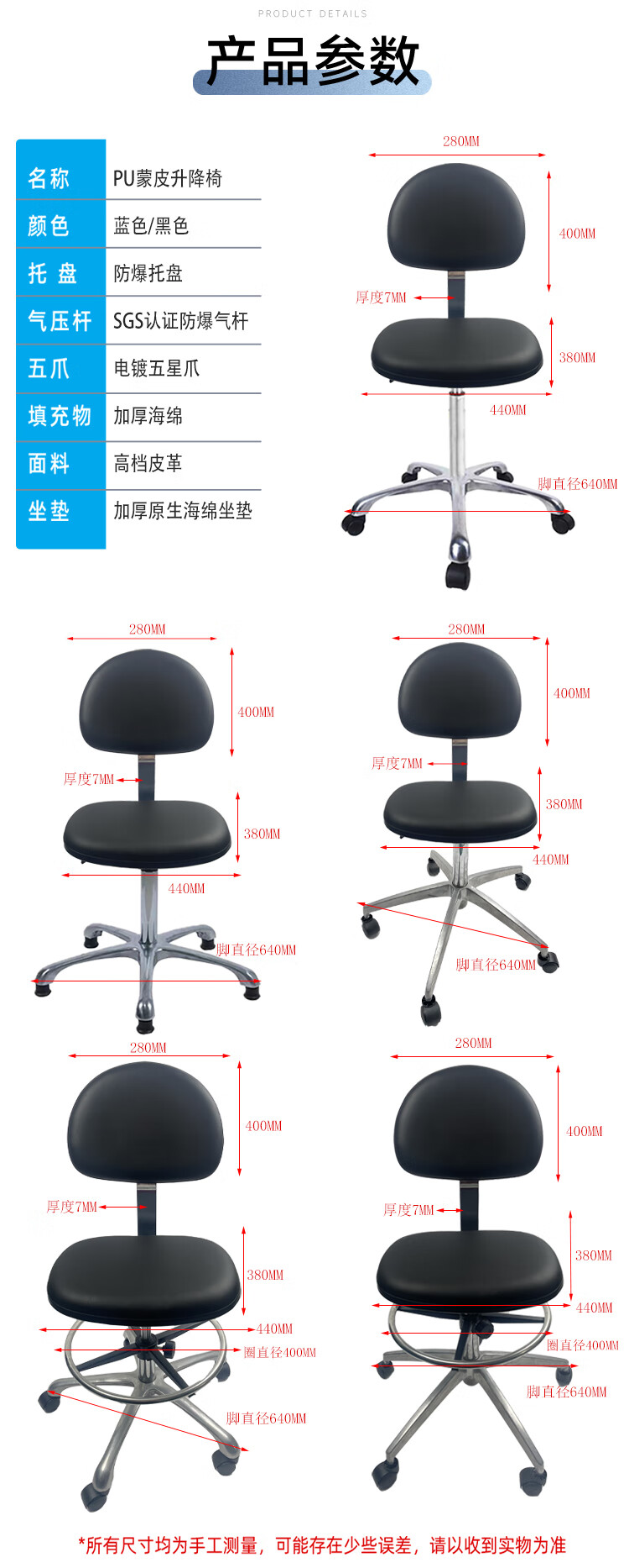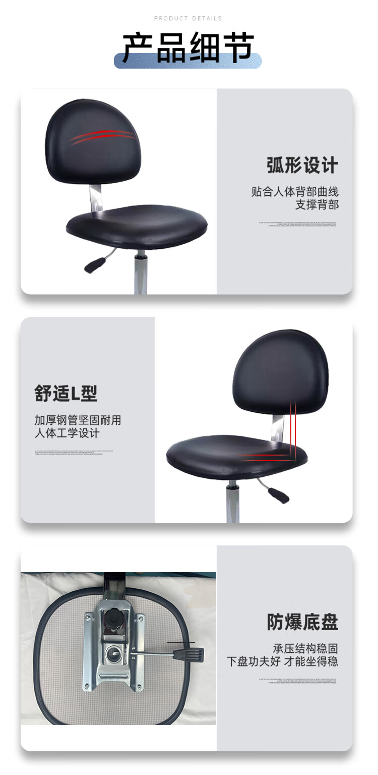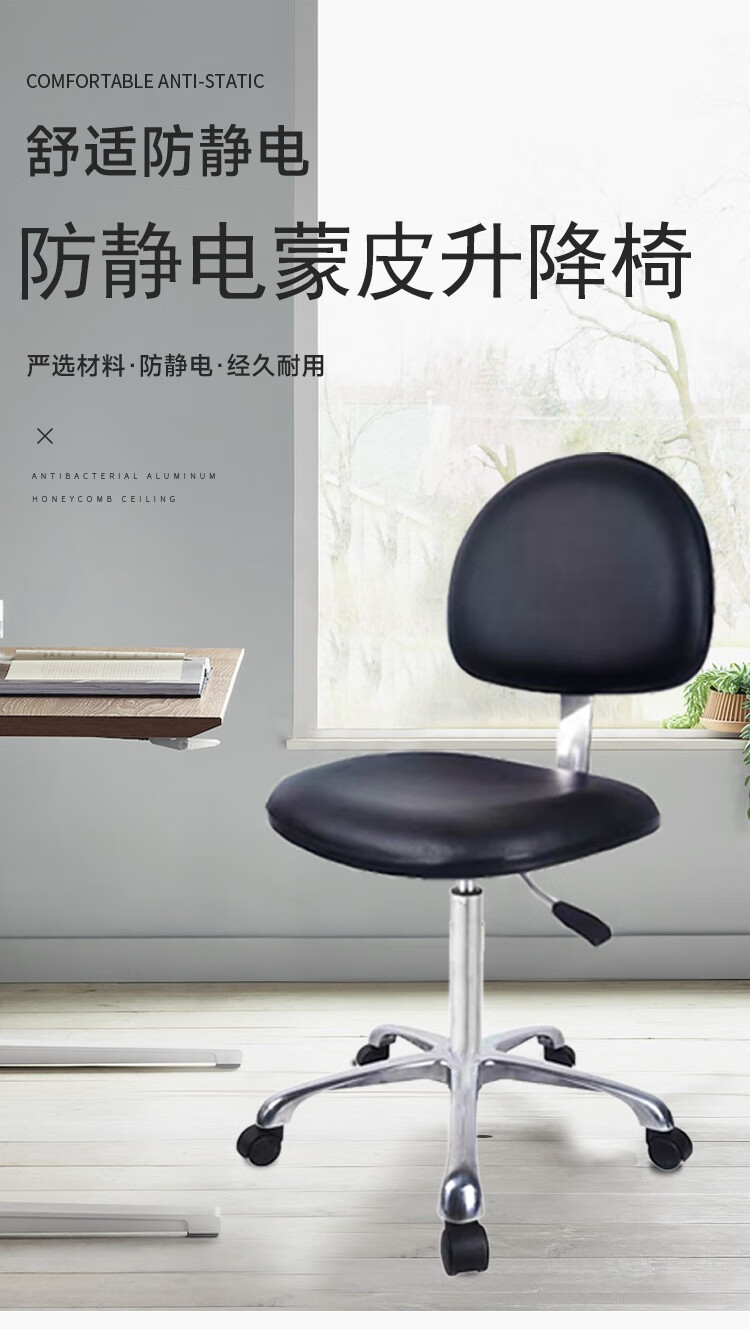 迈途森PU蒙皮铁背升降椅车间流水线皮革靠背椅实验室升降皮革凳子 电镀五星大杯款