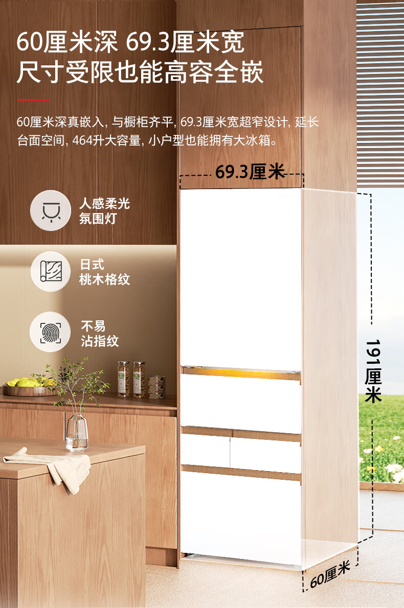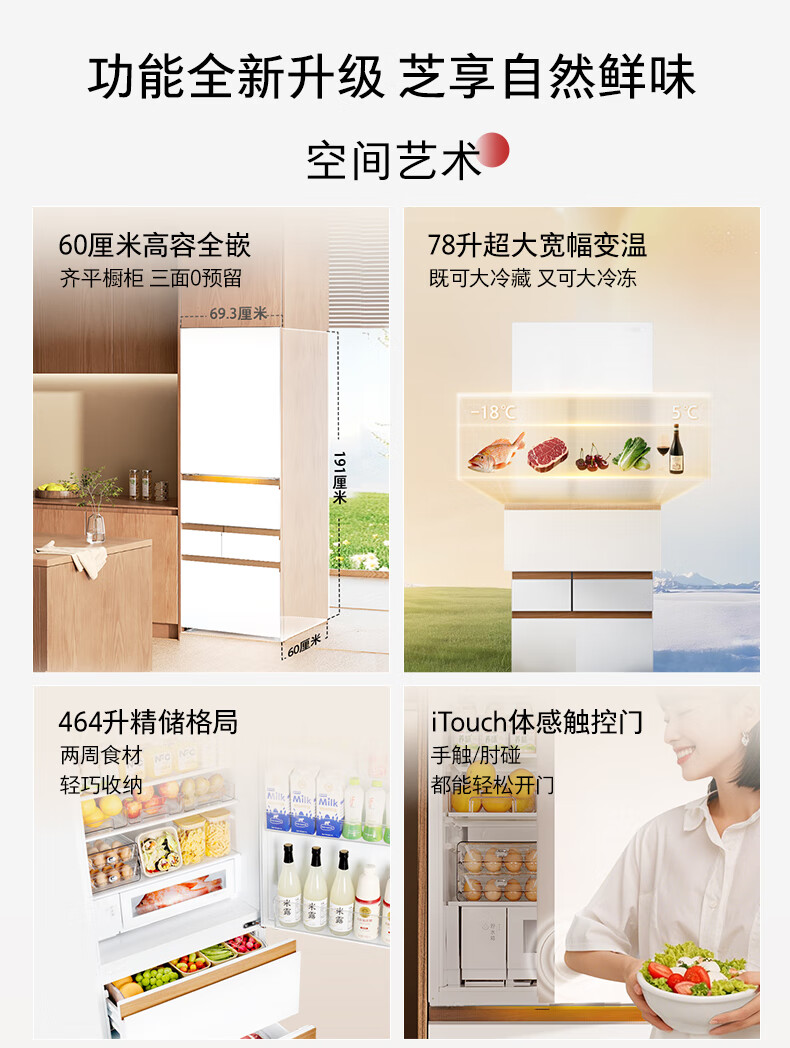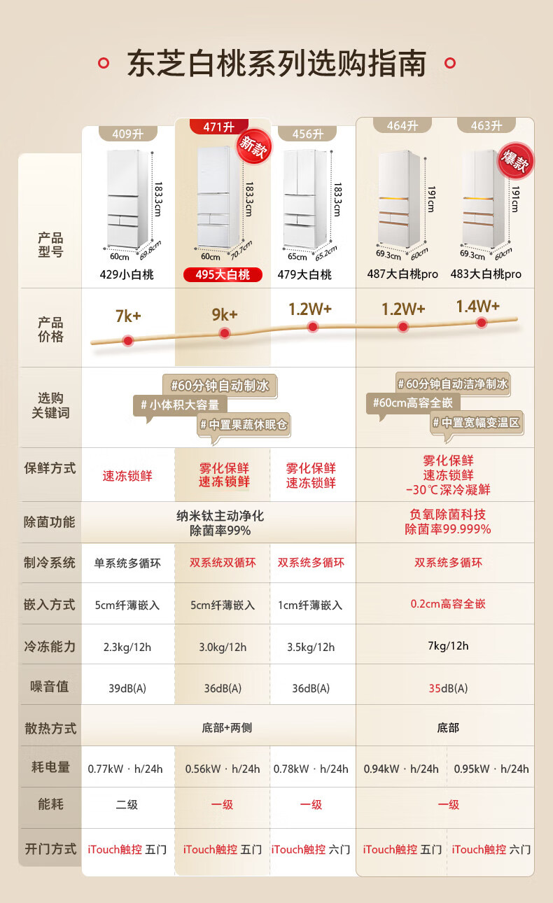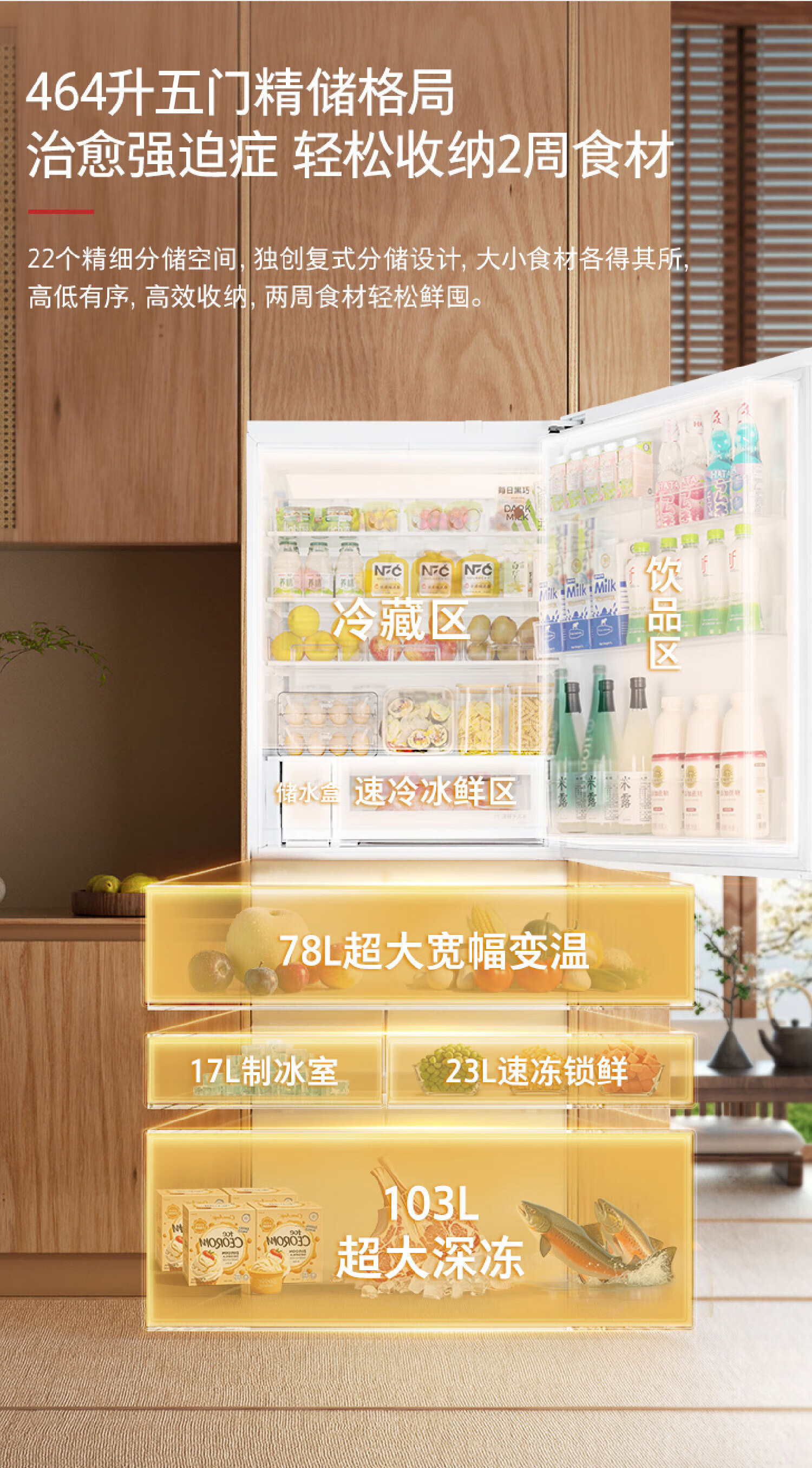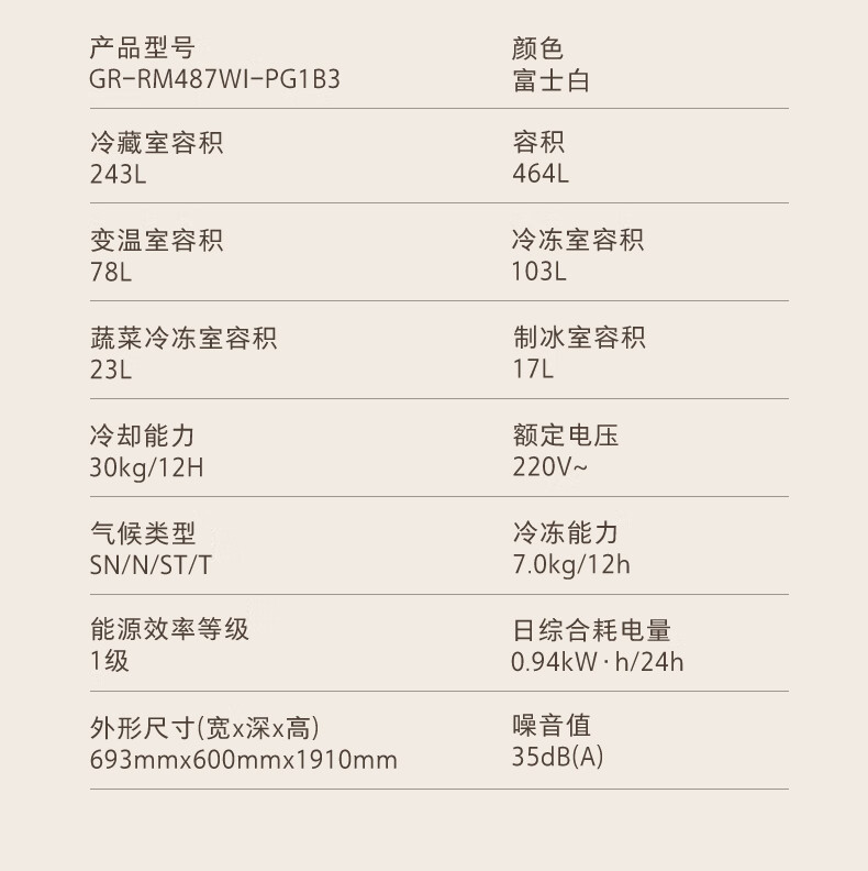 东芝(TOSHIBA)大白桃Pro464L日式多门冰箱487双系统超薄零嵌自动制冰玻璃面板小户型GR-RM487WI-PG1B3国家补贴