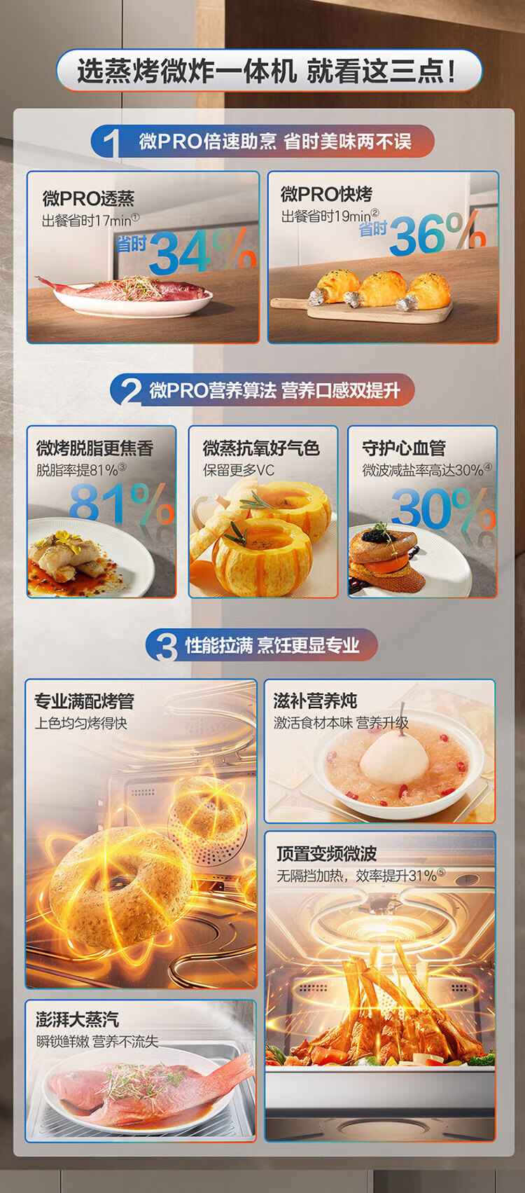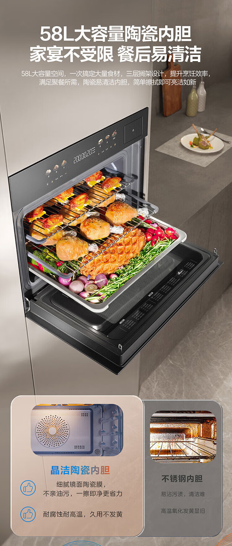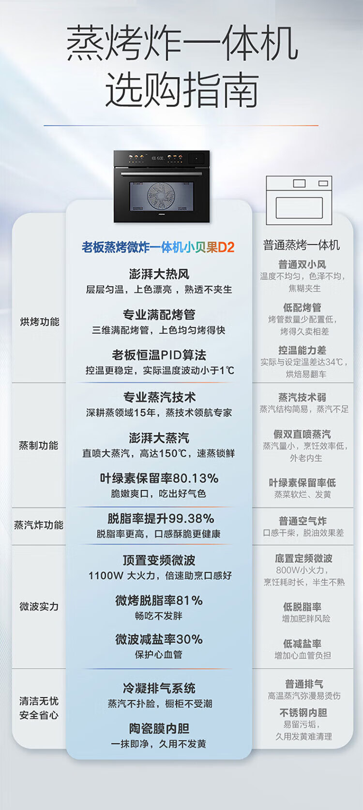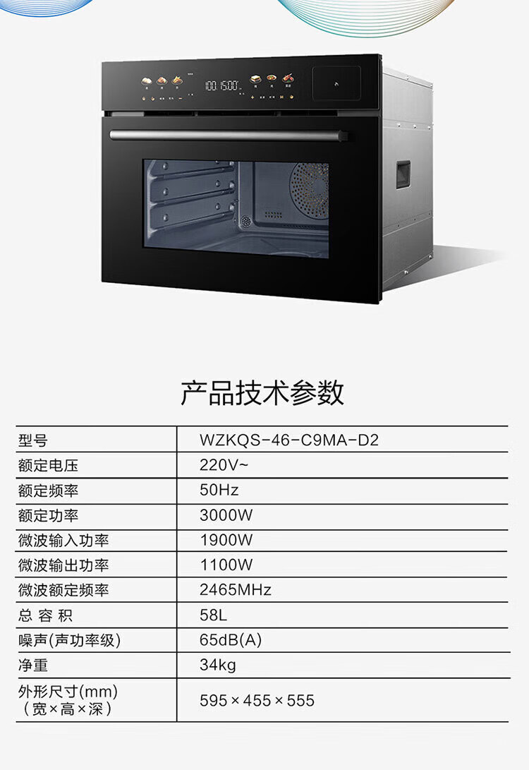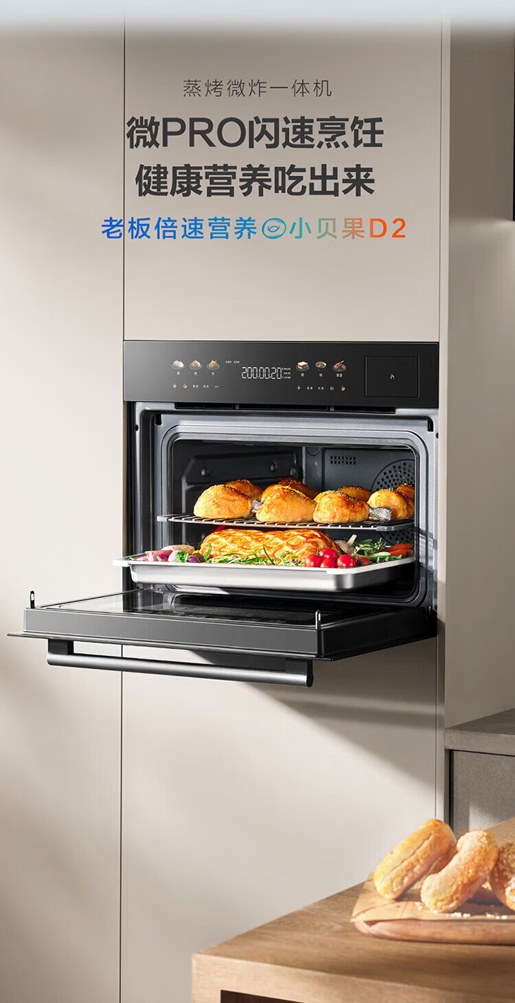 老板小贝果D2微蒸烤炸炖一体机四合一嵌入式蒸烤箱一体机多功能专业蒸箱58L大容量C9MA-D2 58L大容量小贝果微蒸烤一体机【咨询客服享优惠】