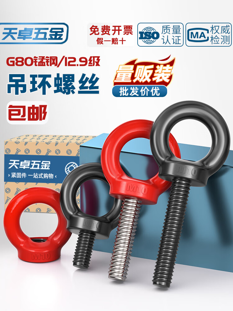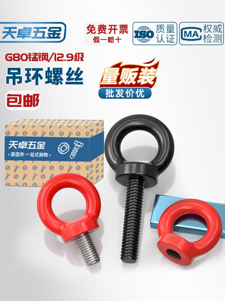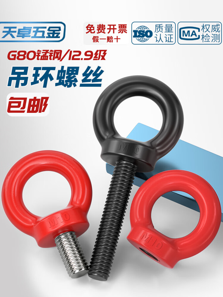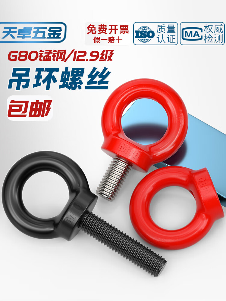 天卓五金12.9级黑色吊环螺丝高强度模具起重吊环螺栓MM6M8m10m12m16m20m24 M56螺母(拉力≤40吨)G80