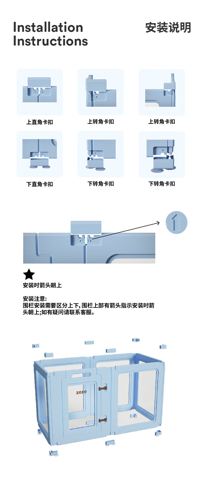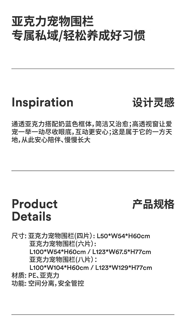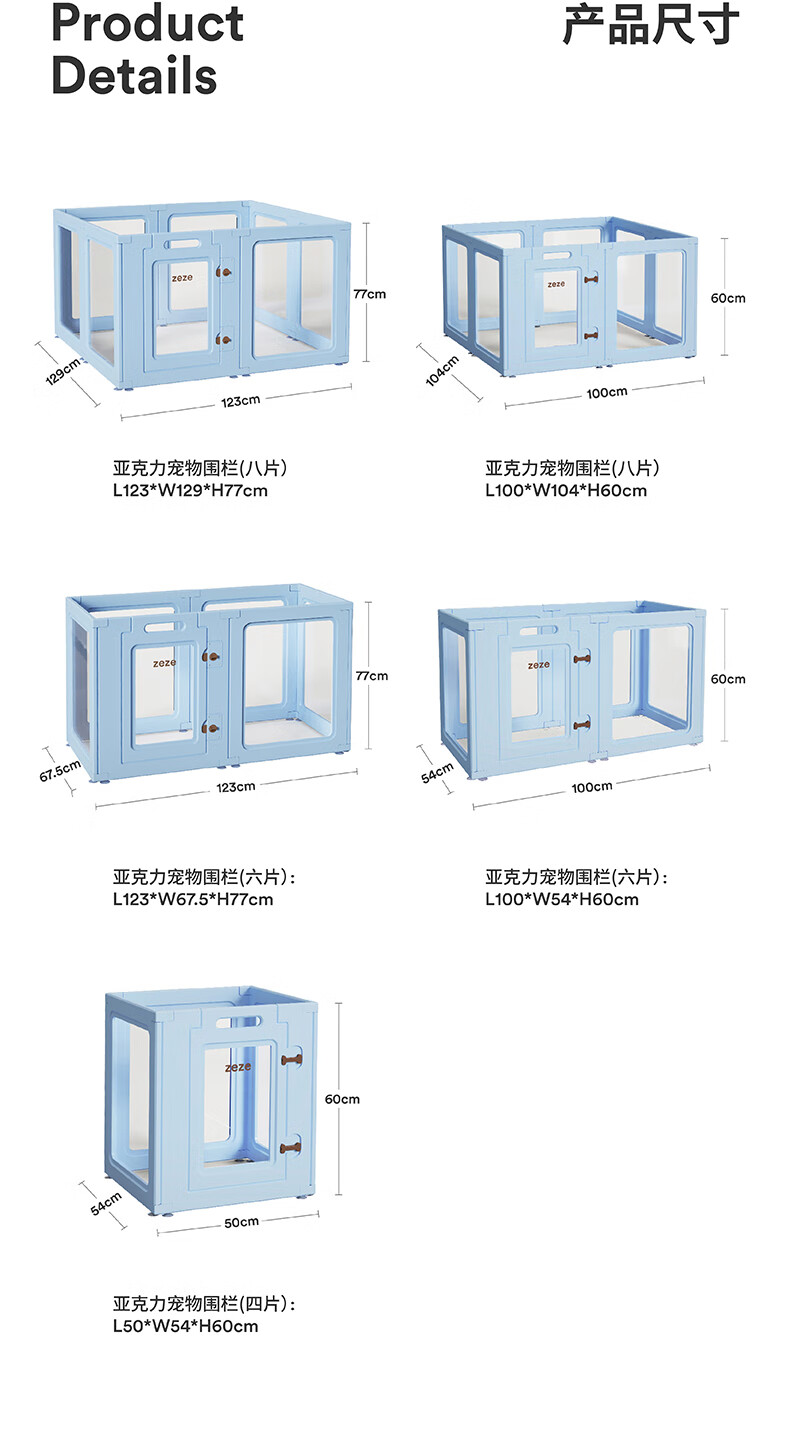 ZEZE狗狗围栏狗窝宠物室内防护栏兔子中小型犬透明狗笼子