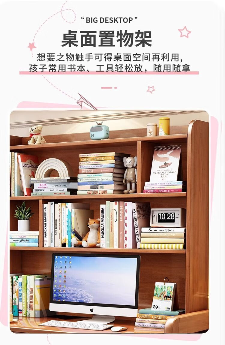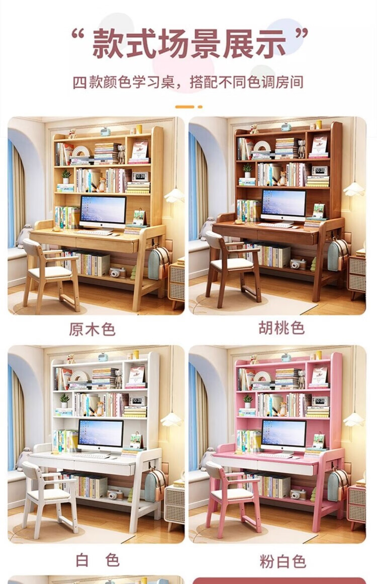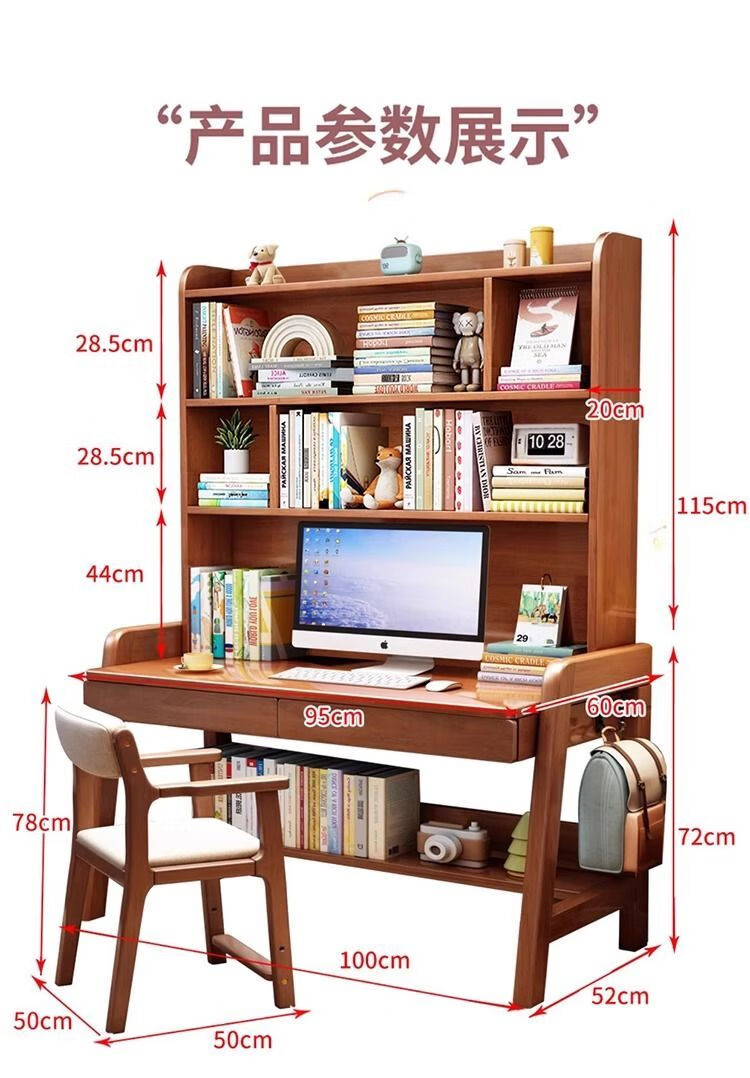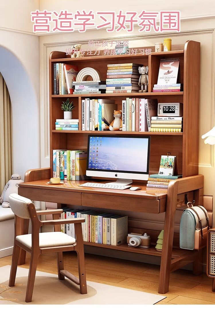 倘然之家实木学习桌卧室家用儿童书桌书架一体桌子简约现代写字电脑桌北欧 枫木色单桌【带书架】【送货到家】 80x60x182CM【双抽】