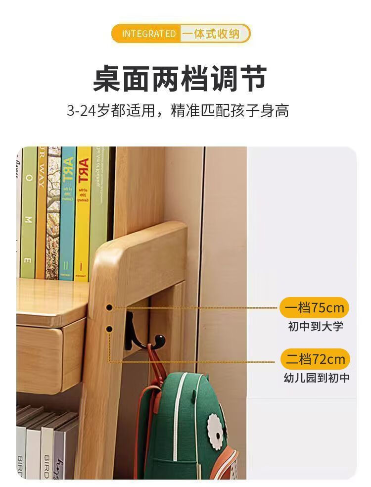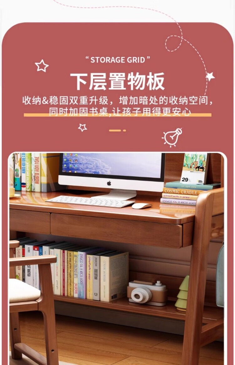 多彩鱼儿童学习书桌椅套装实木书桌中小学生多功能可升降写字家用课桌椅 1.2米沉浸舱Ultra套装 · 枫糖咖