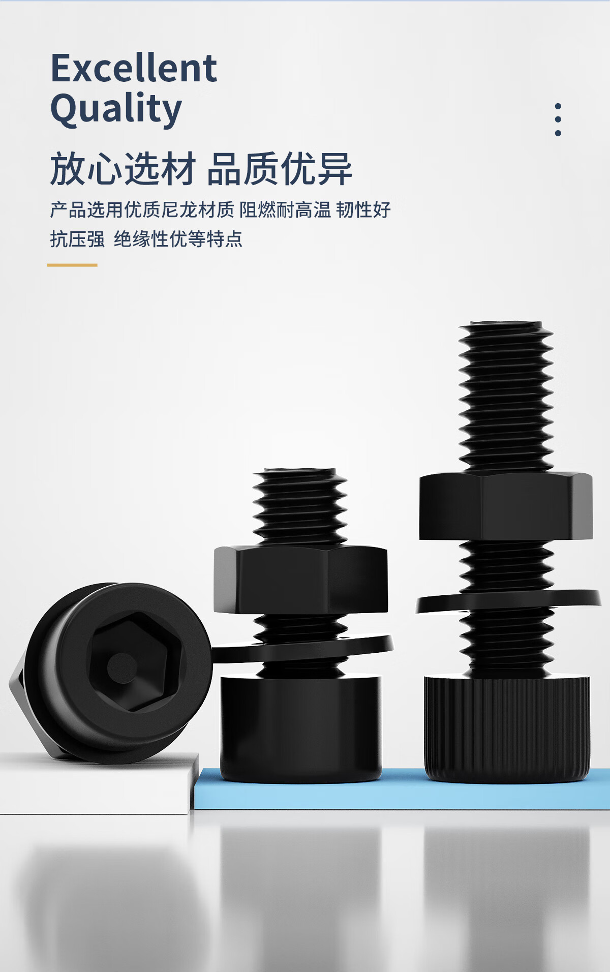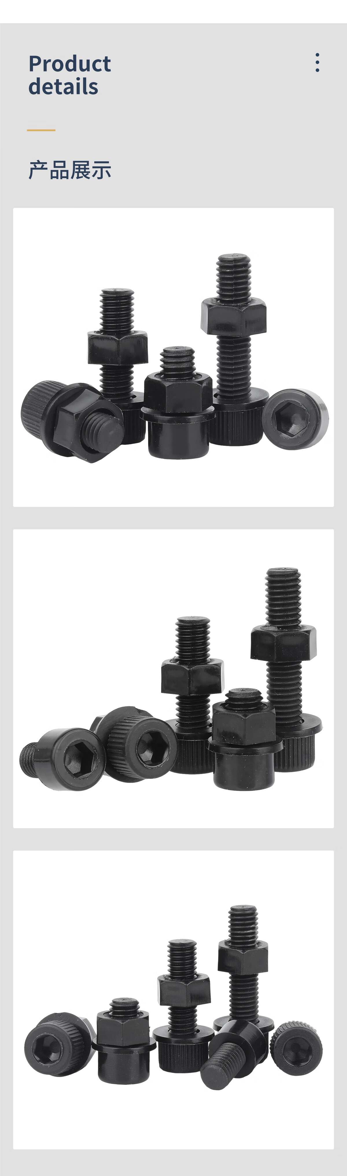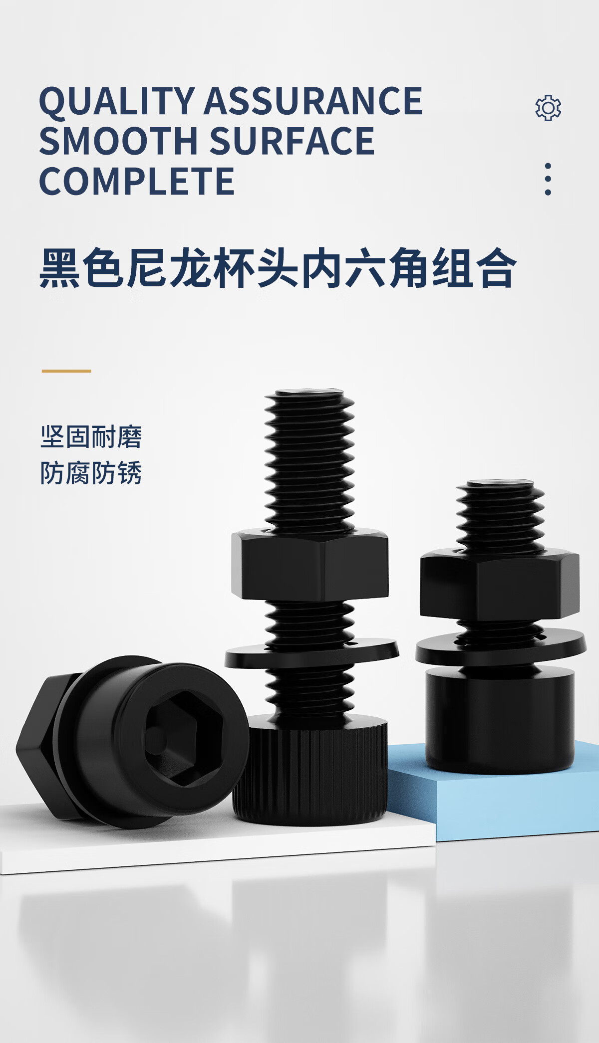固万基(GUWANJI)尼龙黑色内六角螺丝带螺母带垫组合塑料螺钉绝缘阻燃杯头塑胶螺栓 M3x4(100套)不滚花