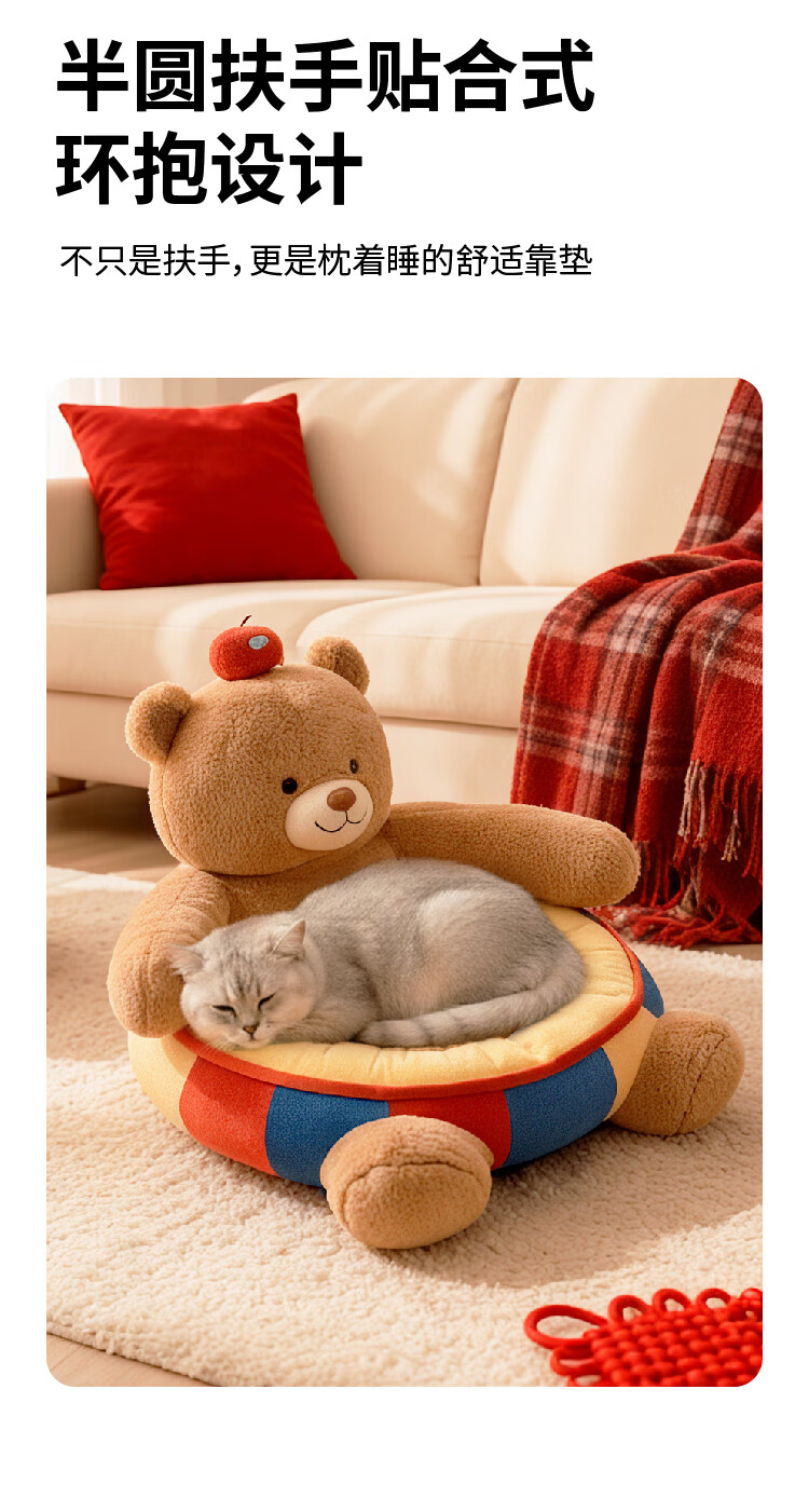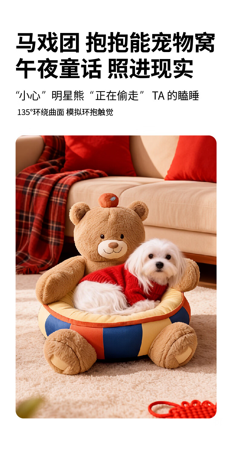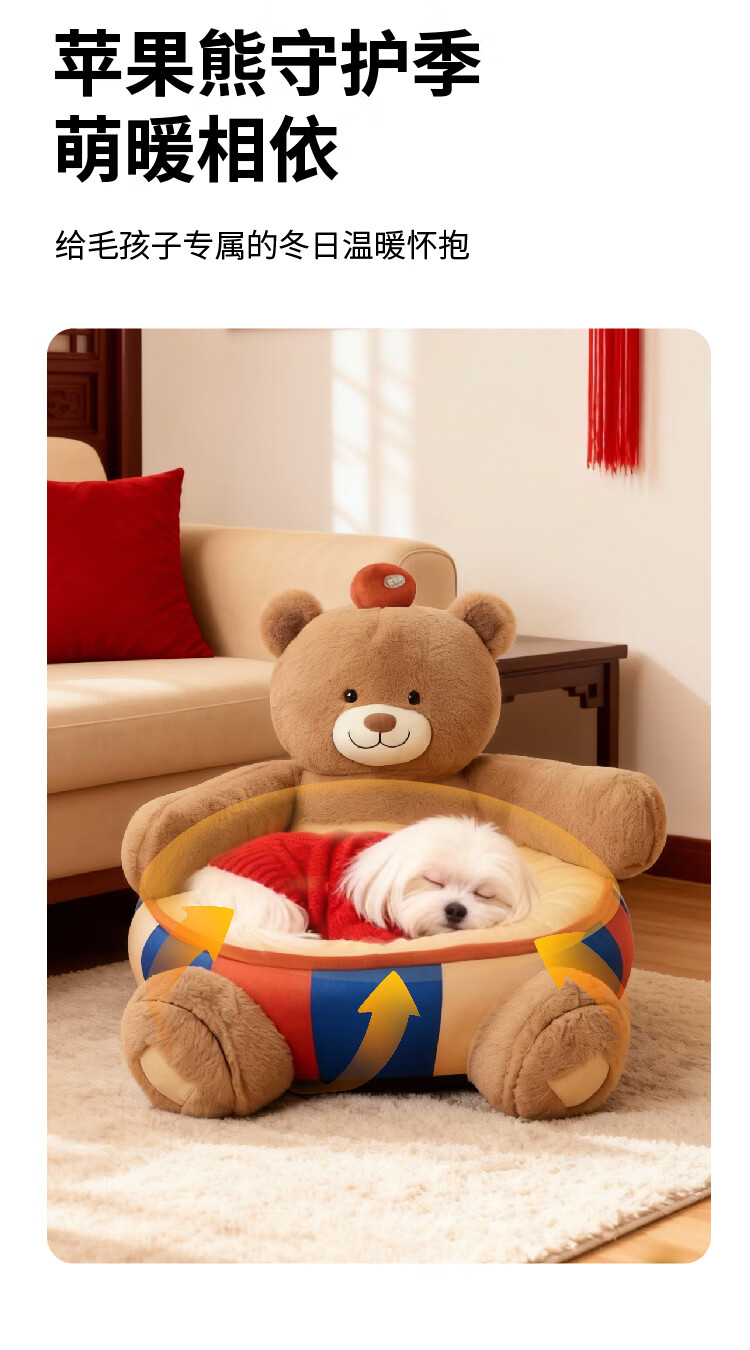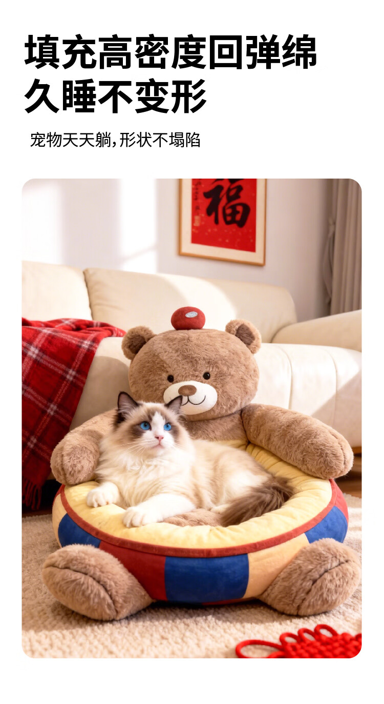 JKULNING宠物冬季床新年礼物保暖抱抱熊狗窝猫窝加厚保暖狗狗用半封闭沙发