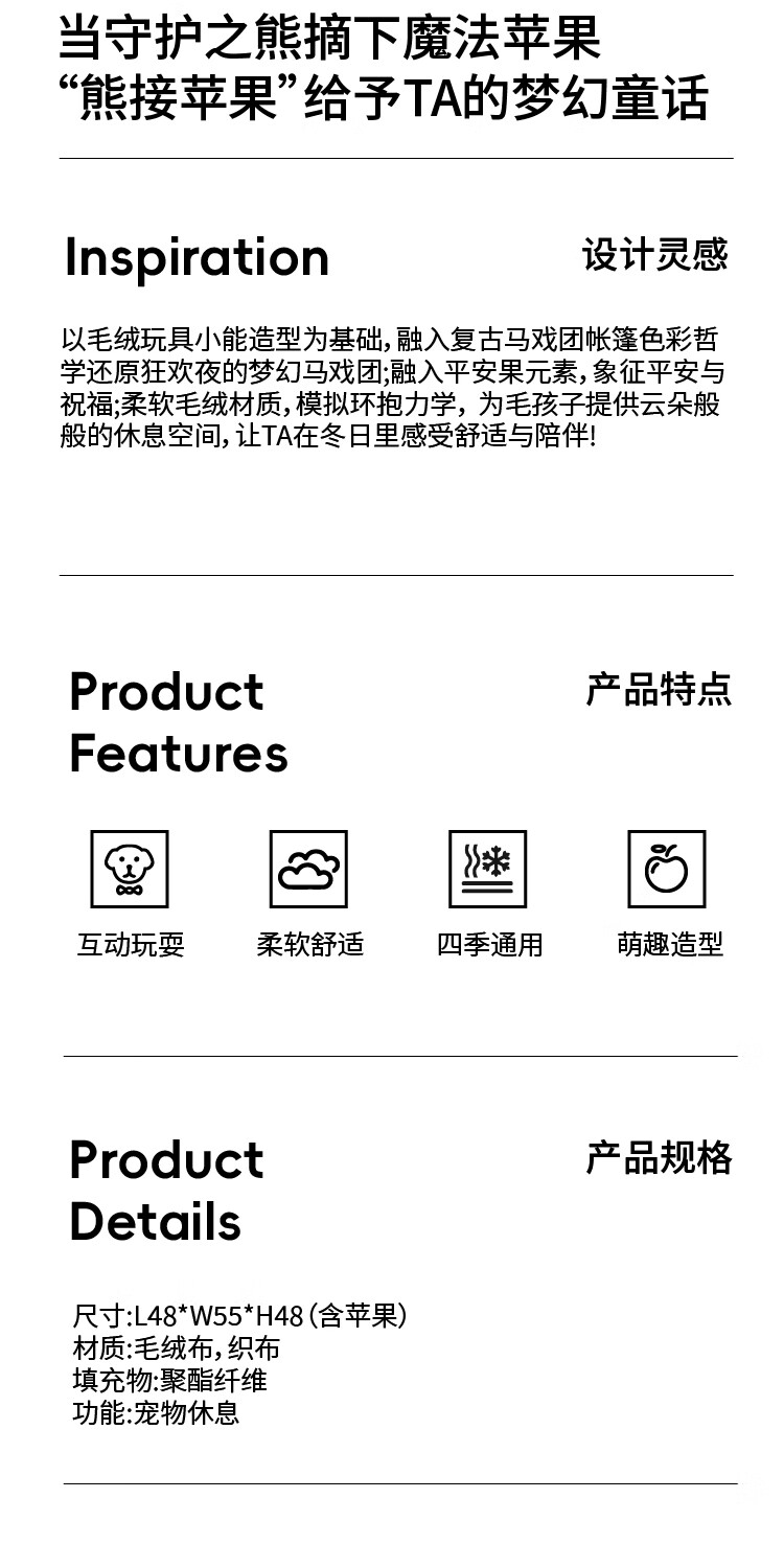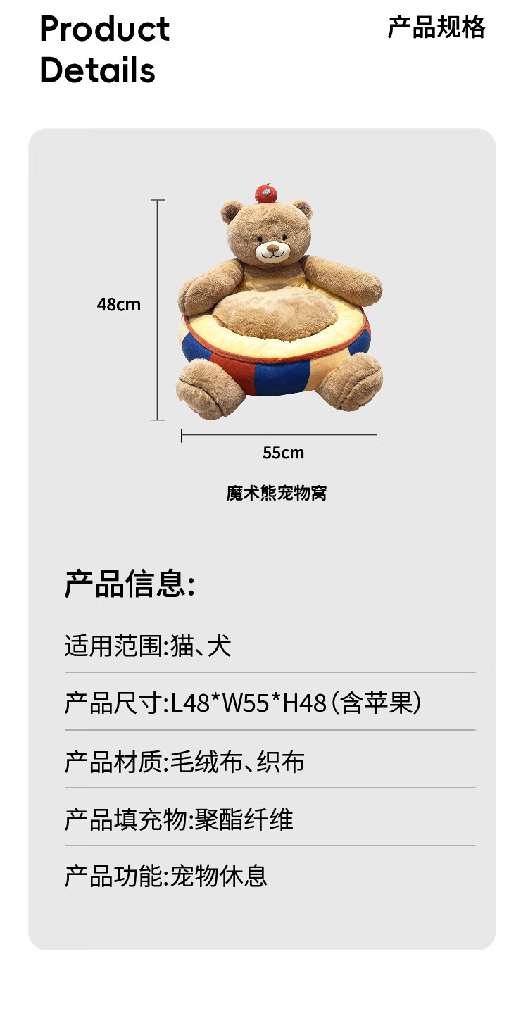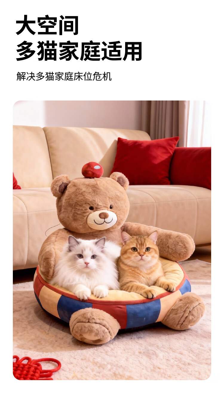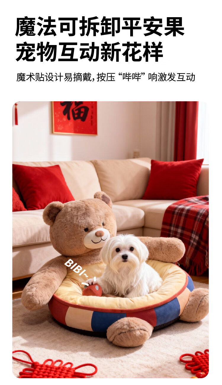 JKULNING宠物冬季床新年礼物保暖抱抱熊狗窝猫窝加厚保暖狗狗用半封闭沙发
