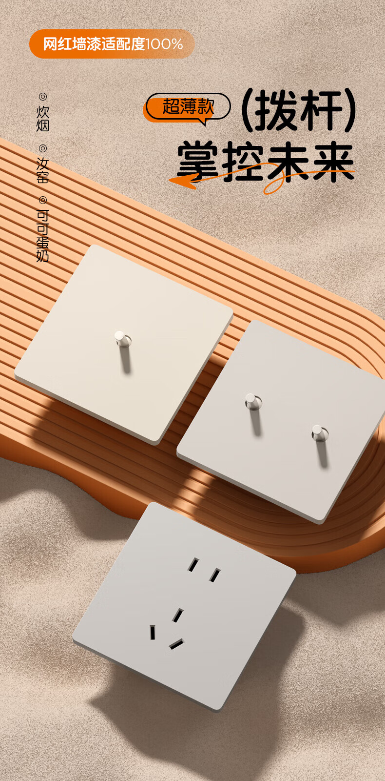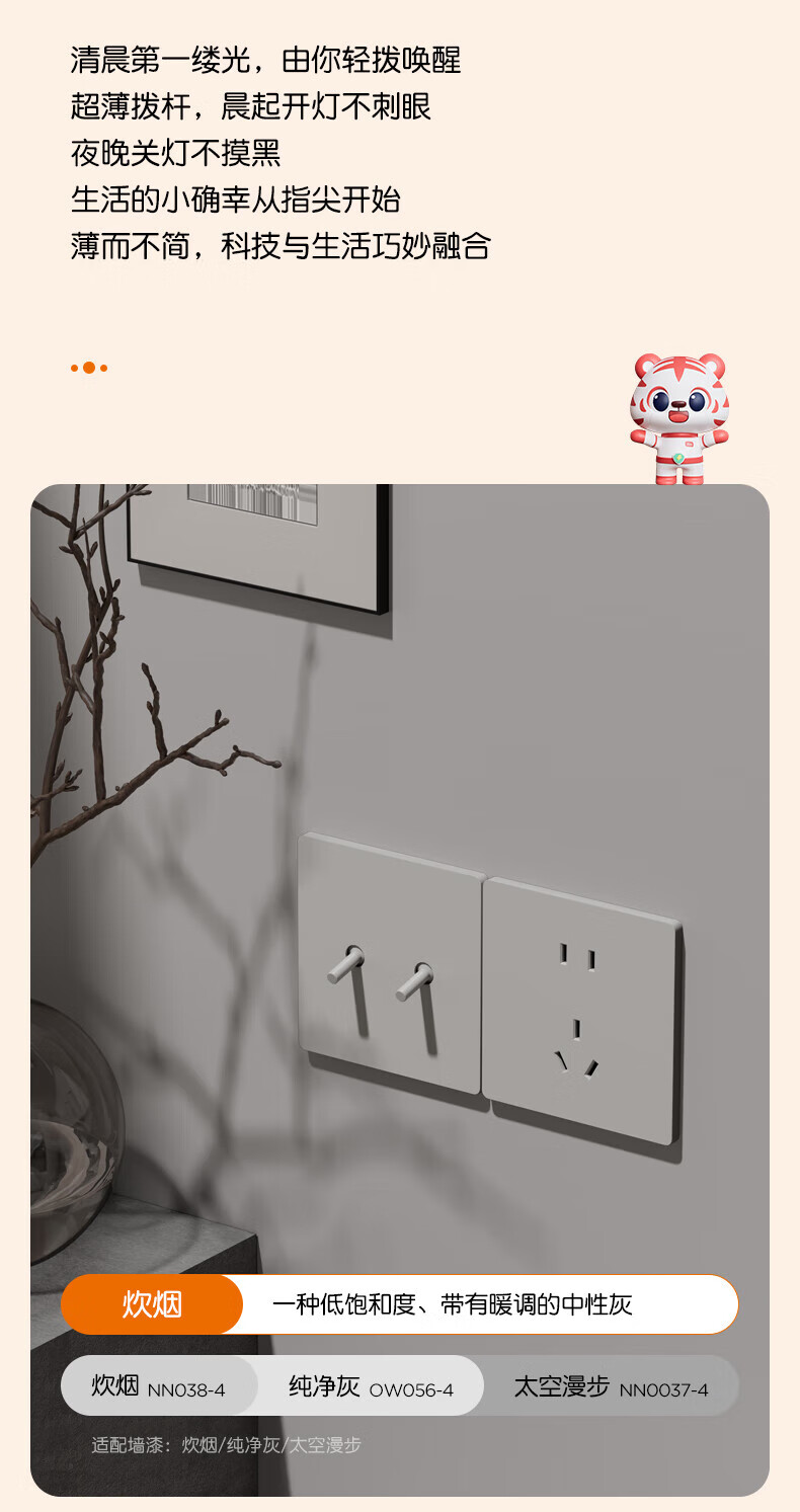 国际电工86型隐藏暗装哑光直拨杆开关插座炊烟灰家用墙壁插一开五孔双控 空白面板
