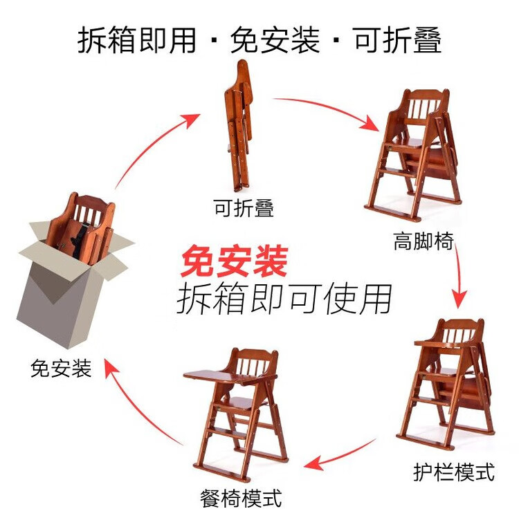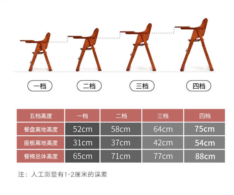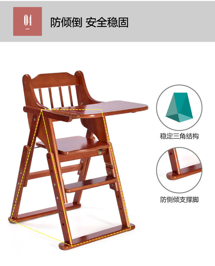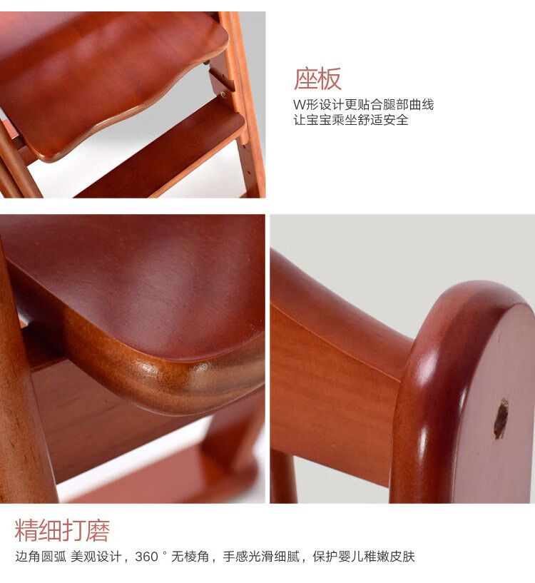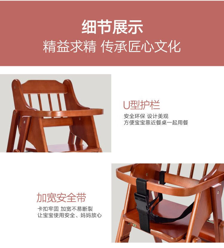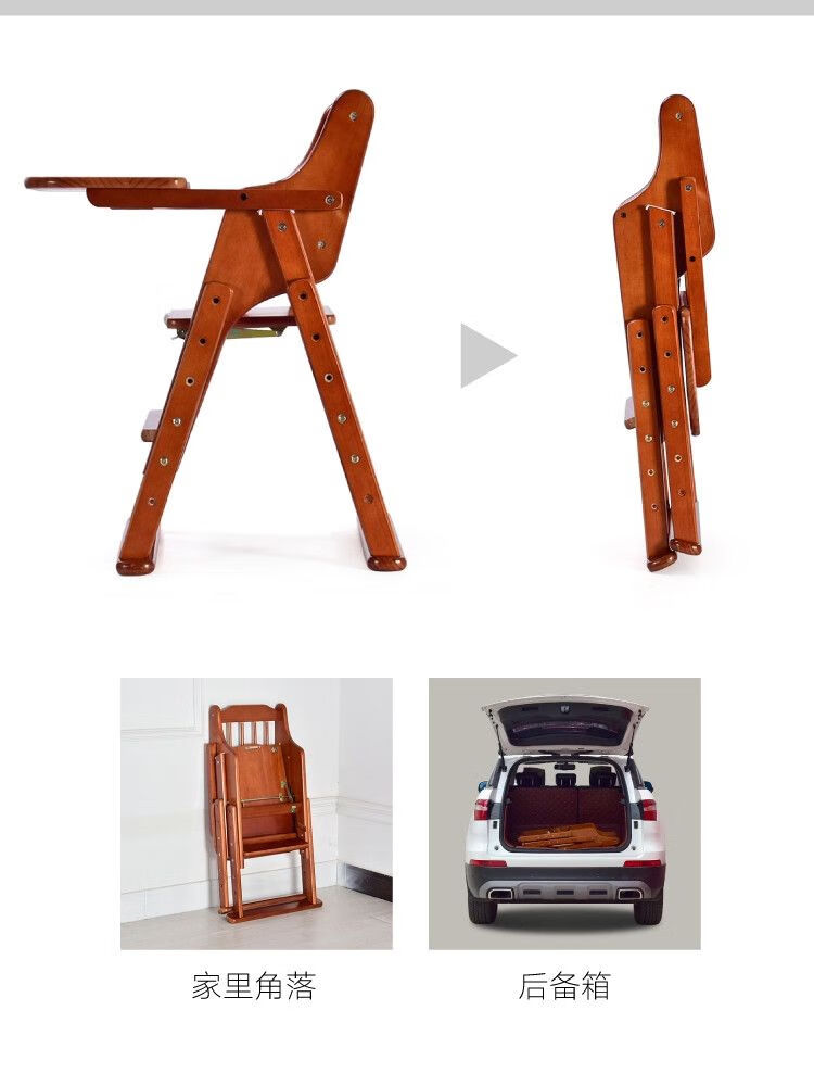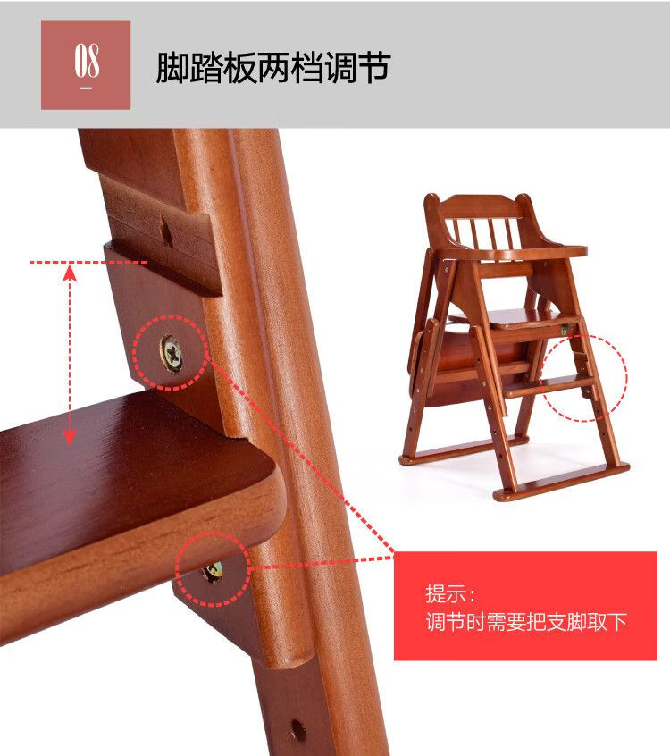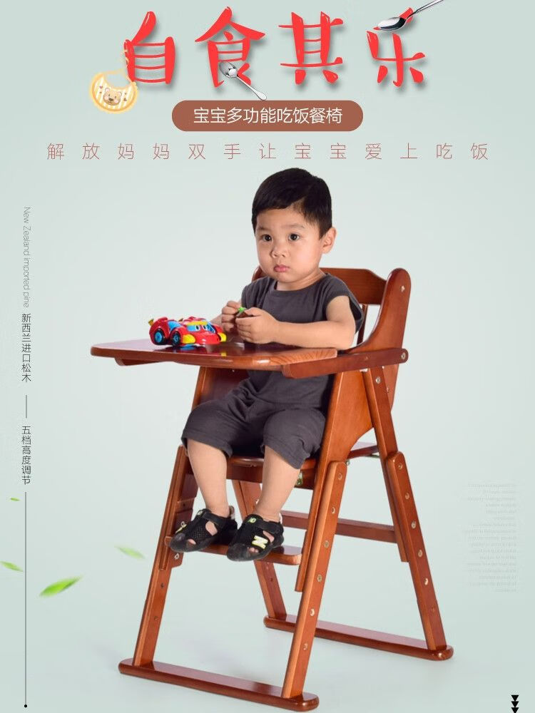 弘星隆宝宝餐椅实木可调档折叠多功能儿童餐椅便携式家用酒店婴儿坐椅 矮款小椅