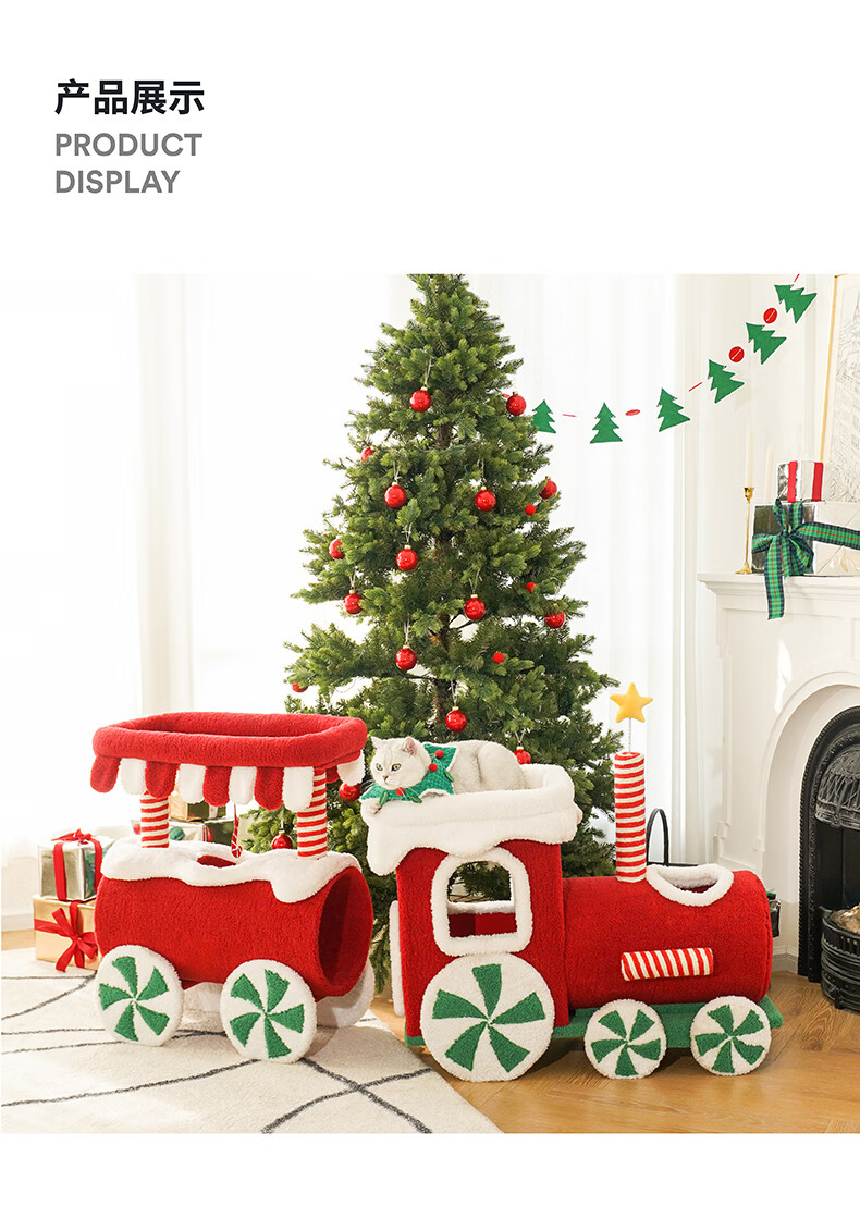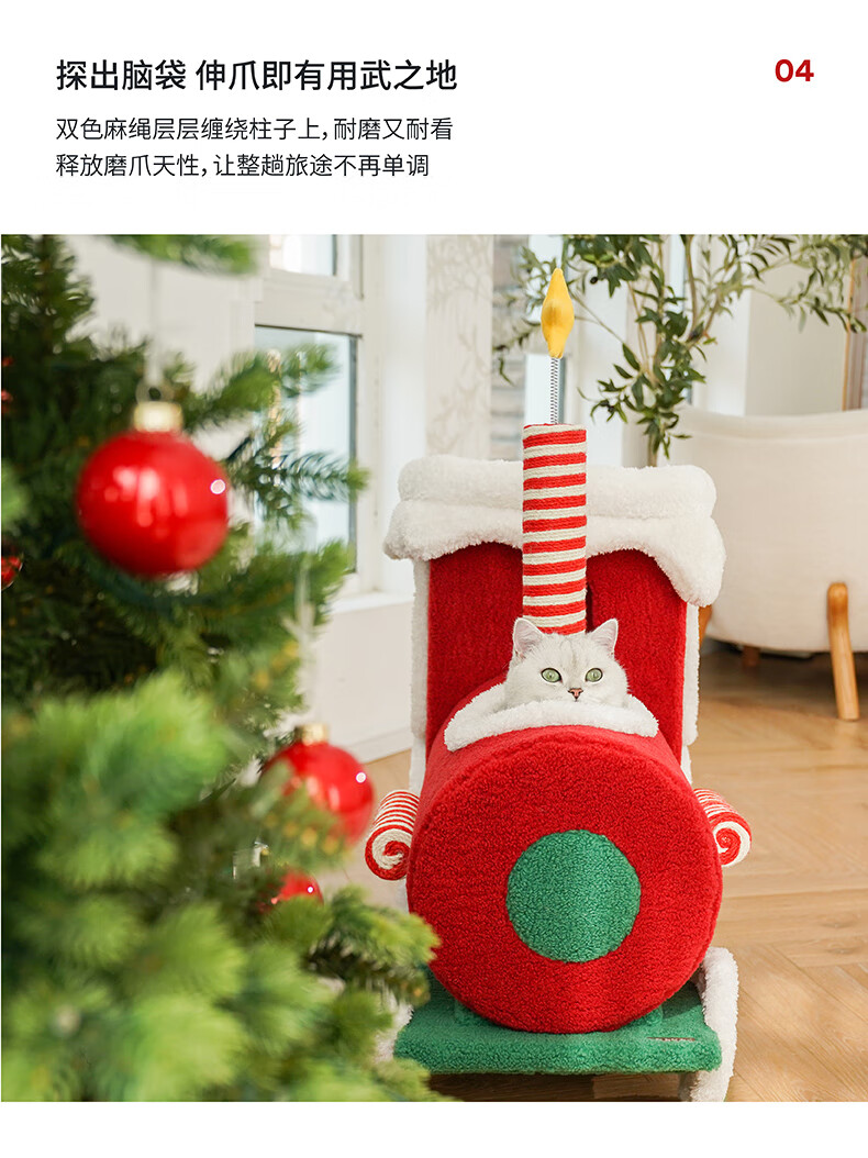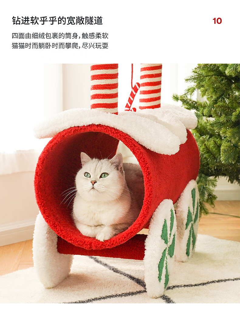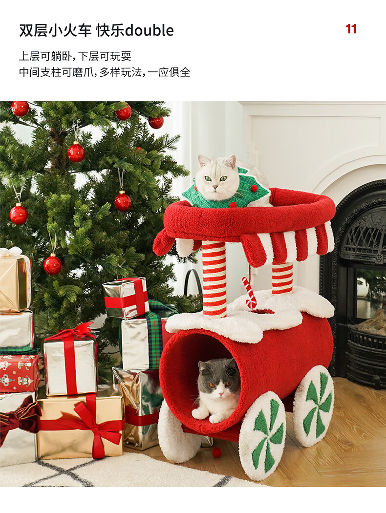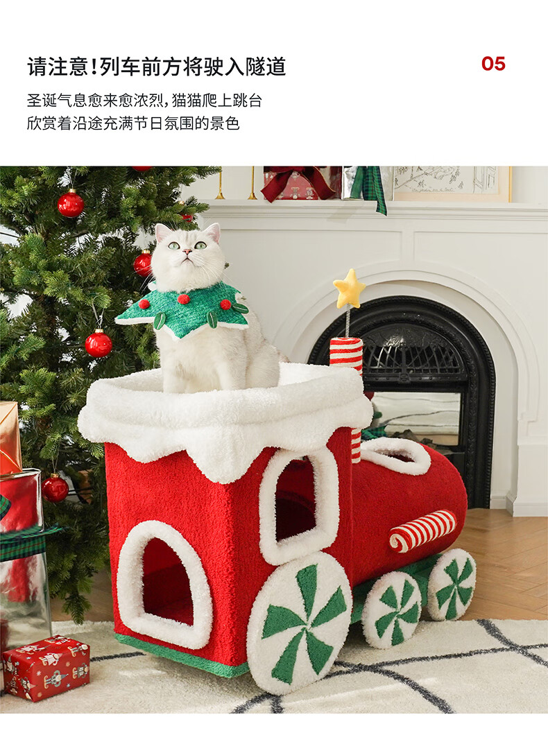 ZEZE圣诞猫爬架新年小火车猫窝一体冬季保暖四季通用猫咪睡窝猫架玩具