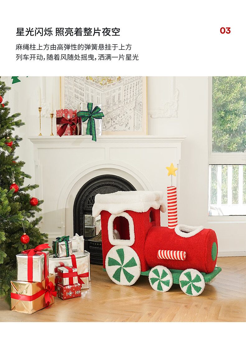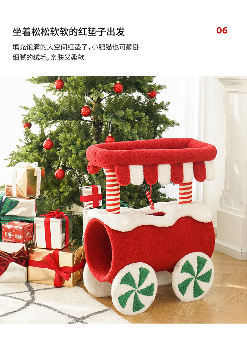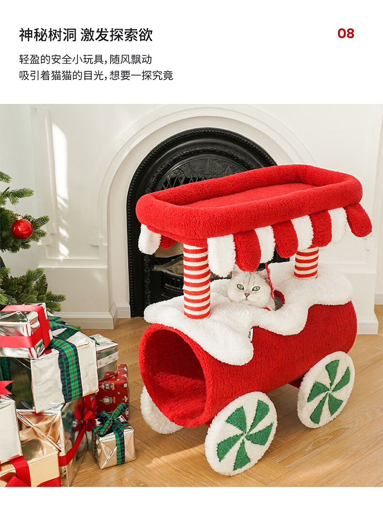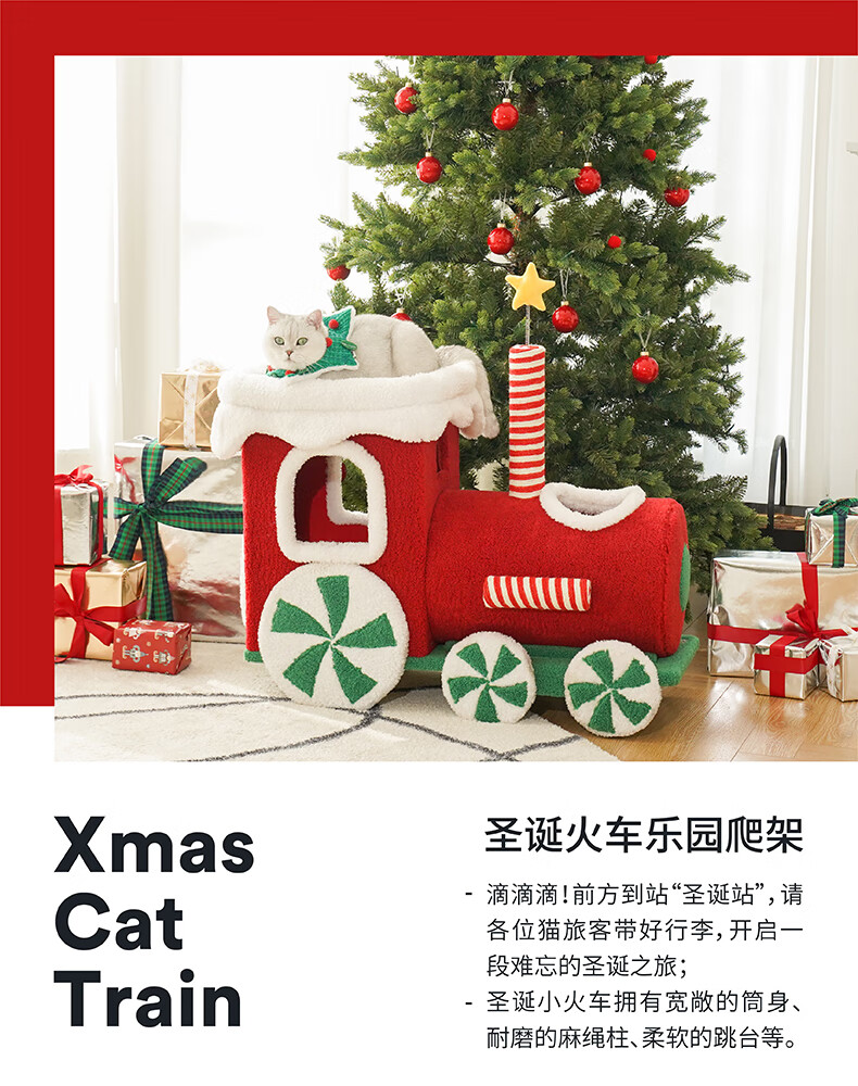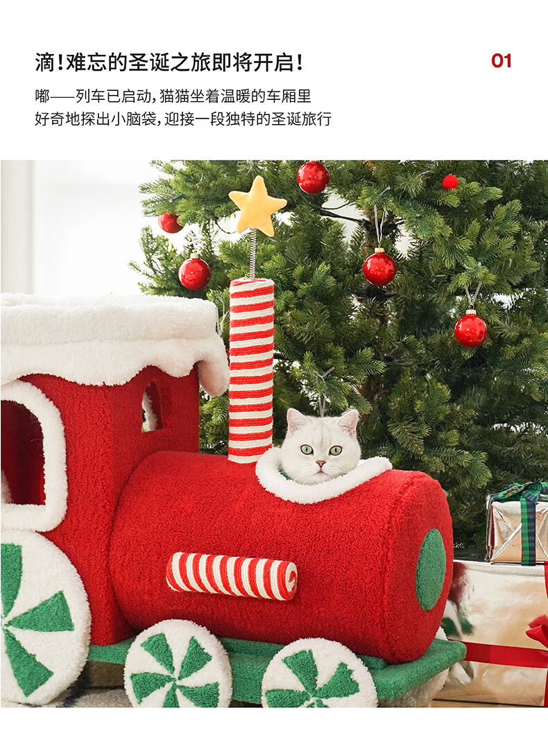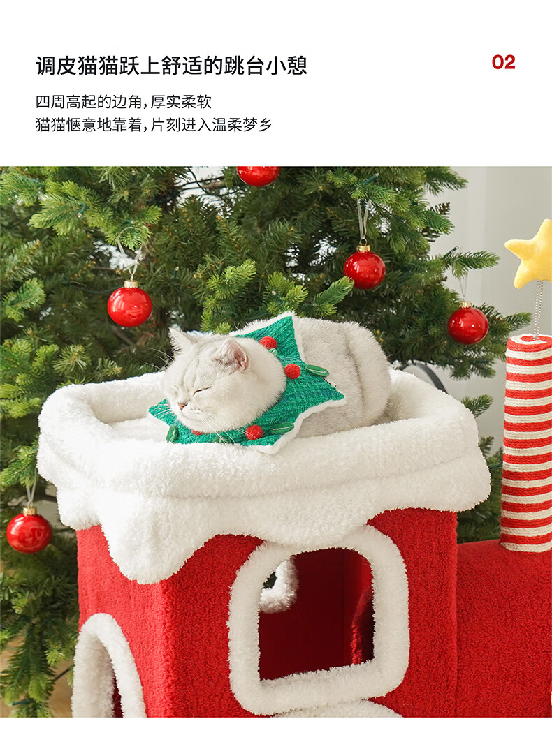 ZEZE圣诞猫爬架新年小火车猫窝一体冬季保暖四季通用猫咪睡窝猫架玩具