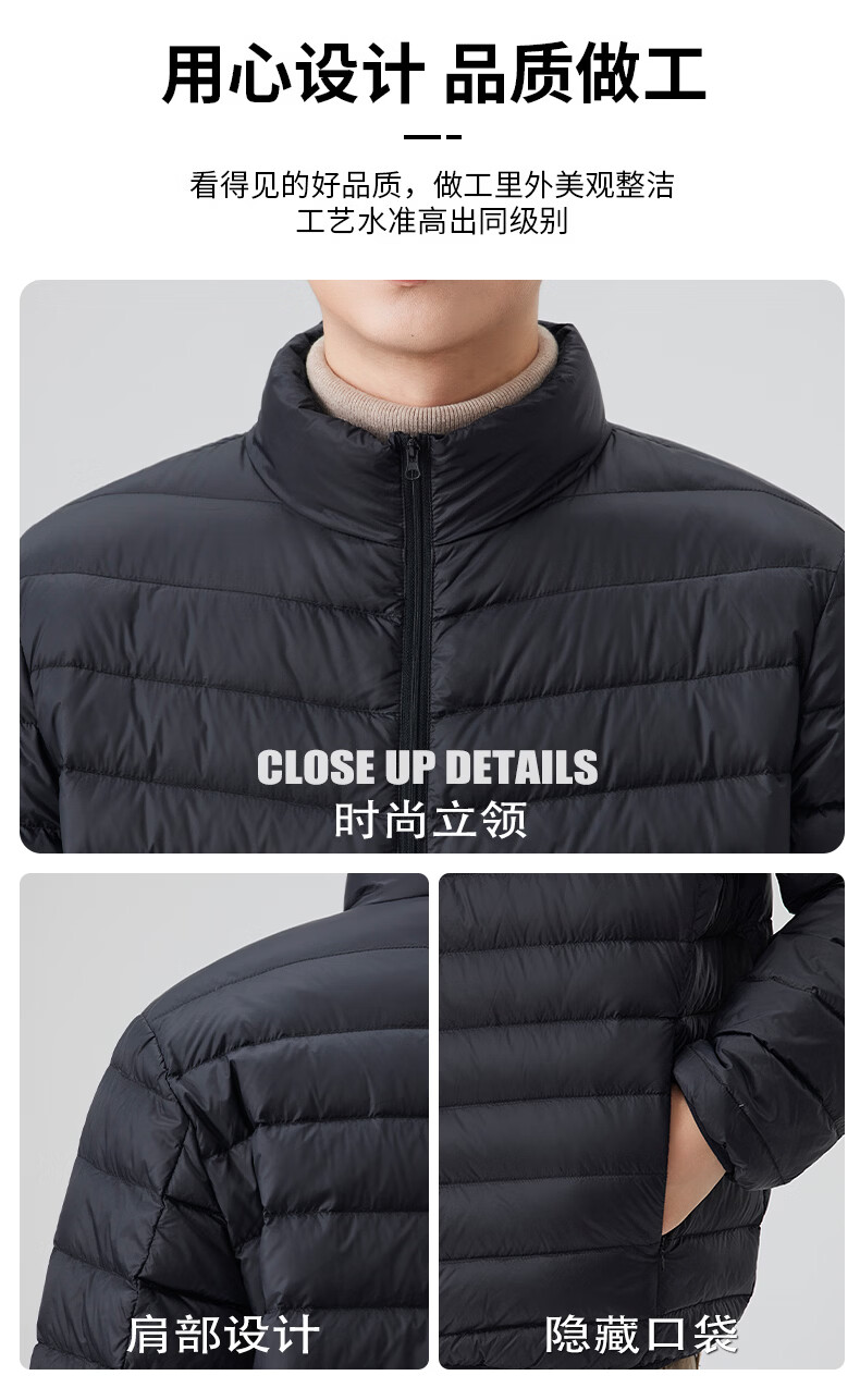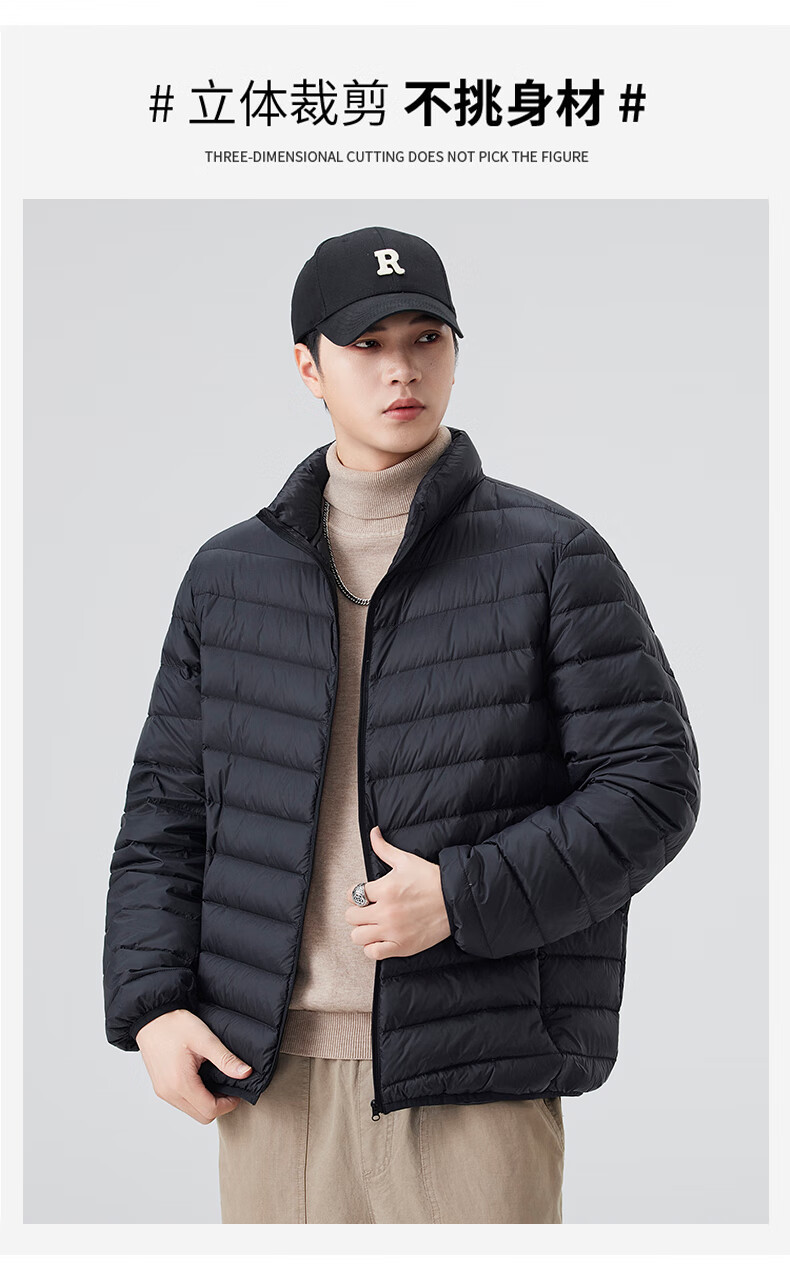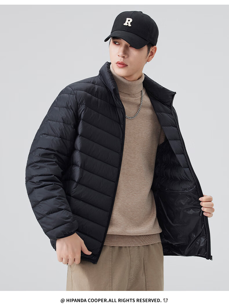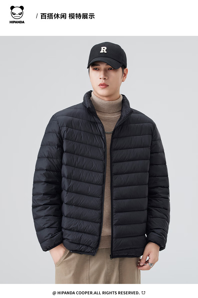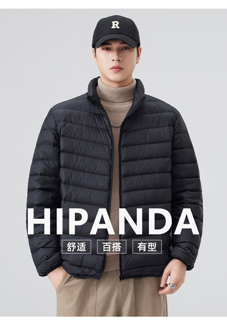HIPANDA你好熊猫羽绒服男2025新款冬季男士厚款修身短款休闲立领外套男款 黑色 M