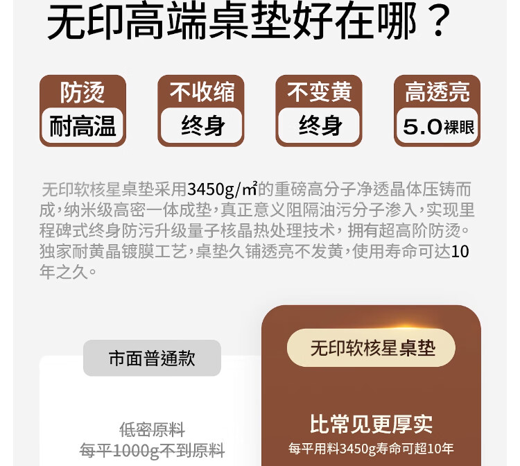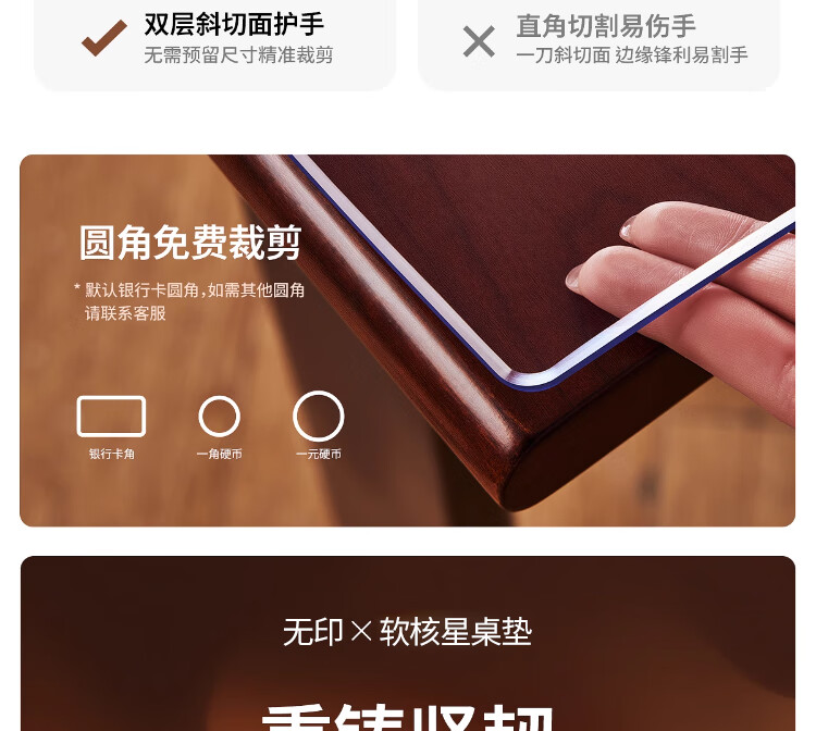 无印良品【软核星】母婴级透明桌垫pvc防水防油隔热餐桌面保护垫茶几垫子 纯净新料无味抗菌斜边透明2.0 定制专拍【请咨询客服】