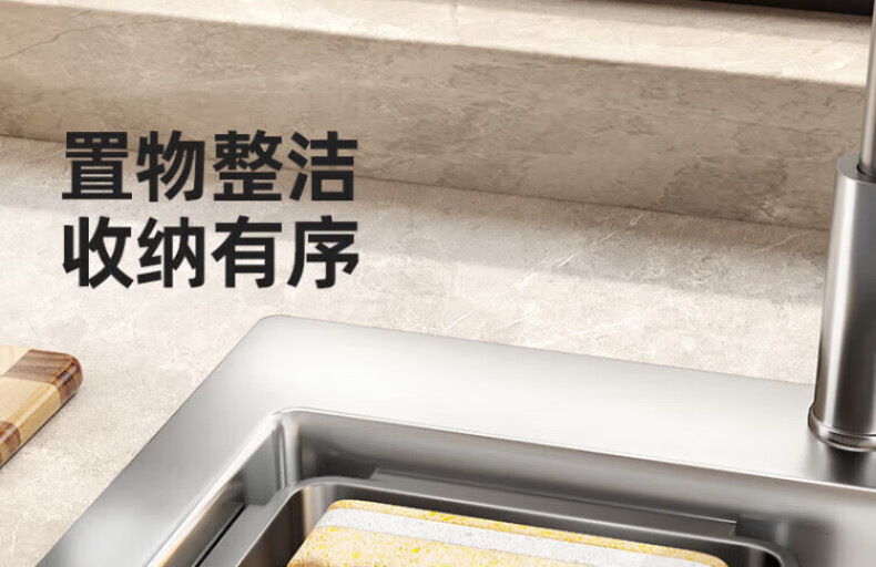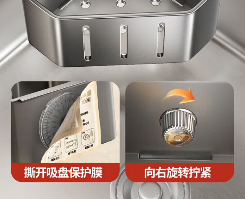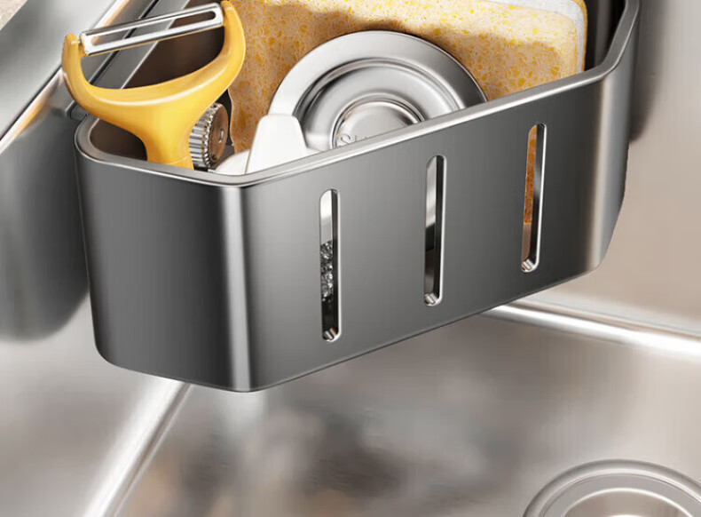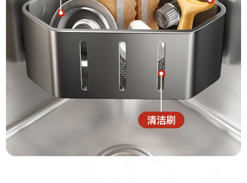 户璃德国高端吸盘水槽沥水架新款厨房水槽内置物架壁挂抹布沥水架海绵 牙刷置物架-两杯款