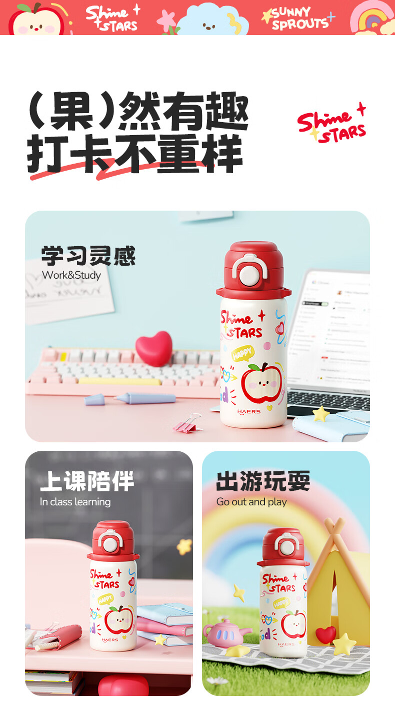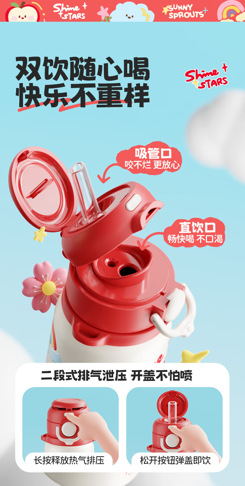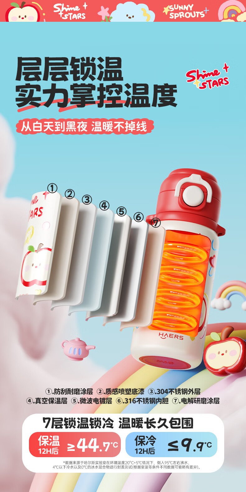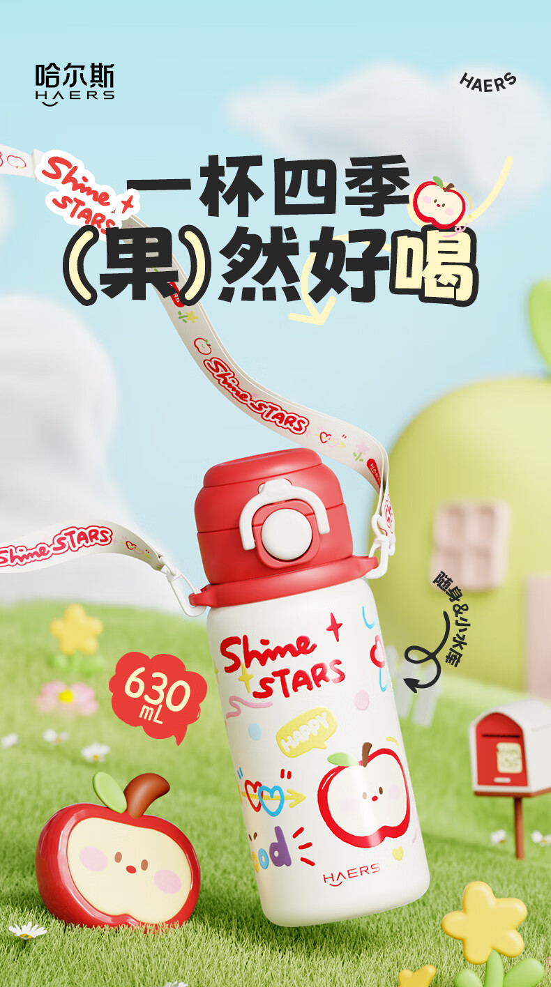 哈尔斯儿童保温杯学生上学专用水杯316不锈钢双饮杯送女高颜值生日礼物 【双饮送杯带】菠萝椰椰630mL