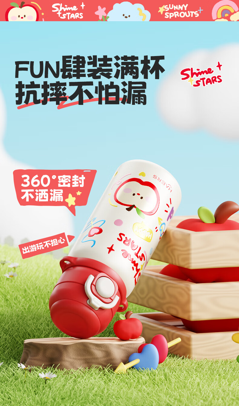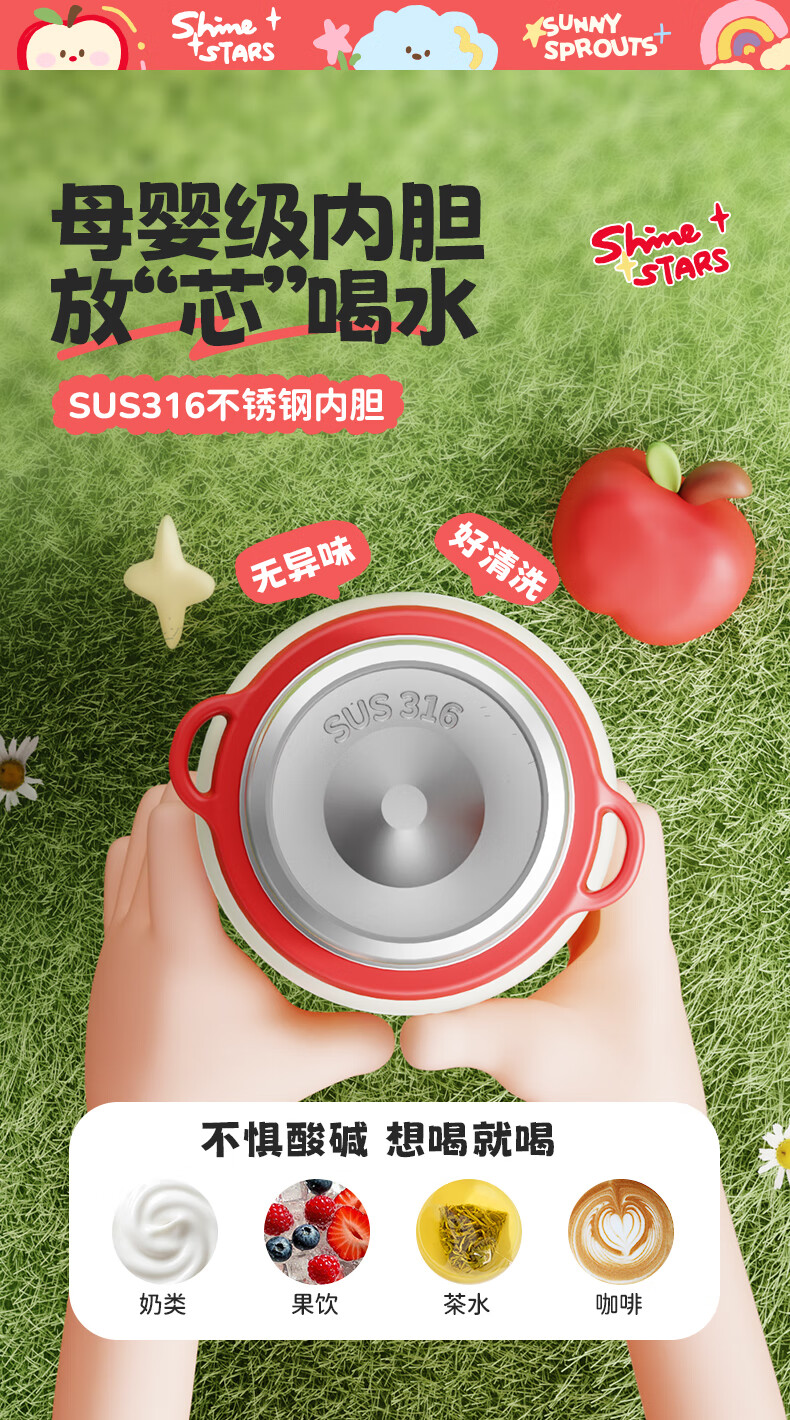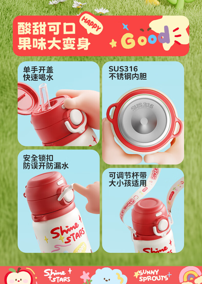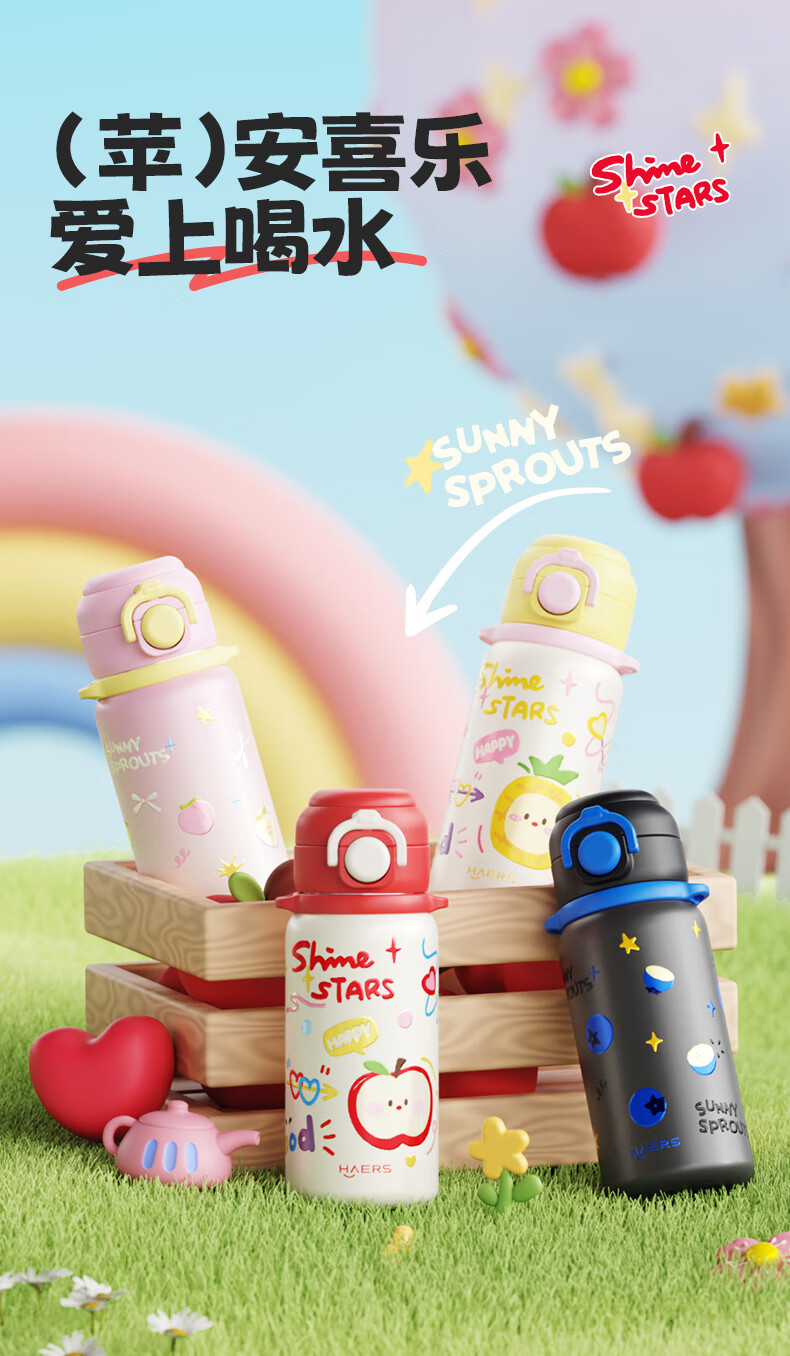 哈尔斯儿童保温杯学生上学专用水杯316不锈钢双饮杯送女高颜值生日礼物 【双饮送杯带】菠萝椰椰630mL
