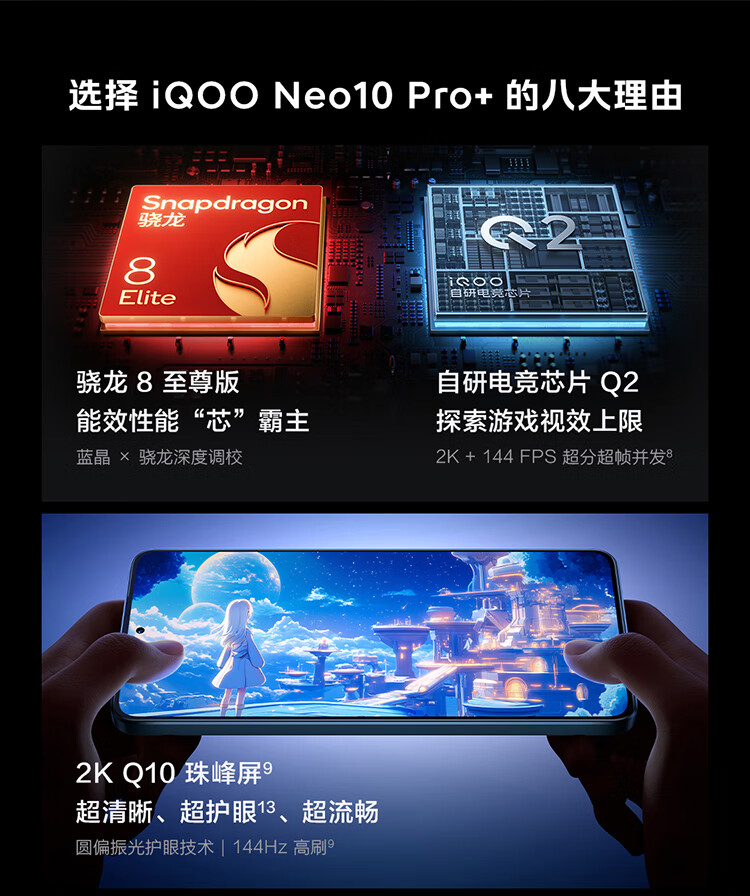 vivo iQOO Neo10 Pro+ 12GB+256GB 超级像素 骁龙8至尊版 2K Q10珠峰屏 国家补贴 学生 游戏 电竞手机