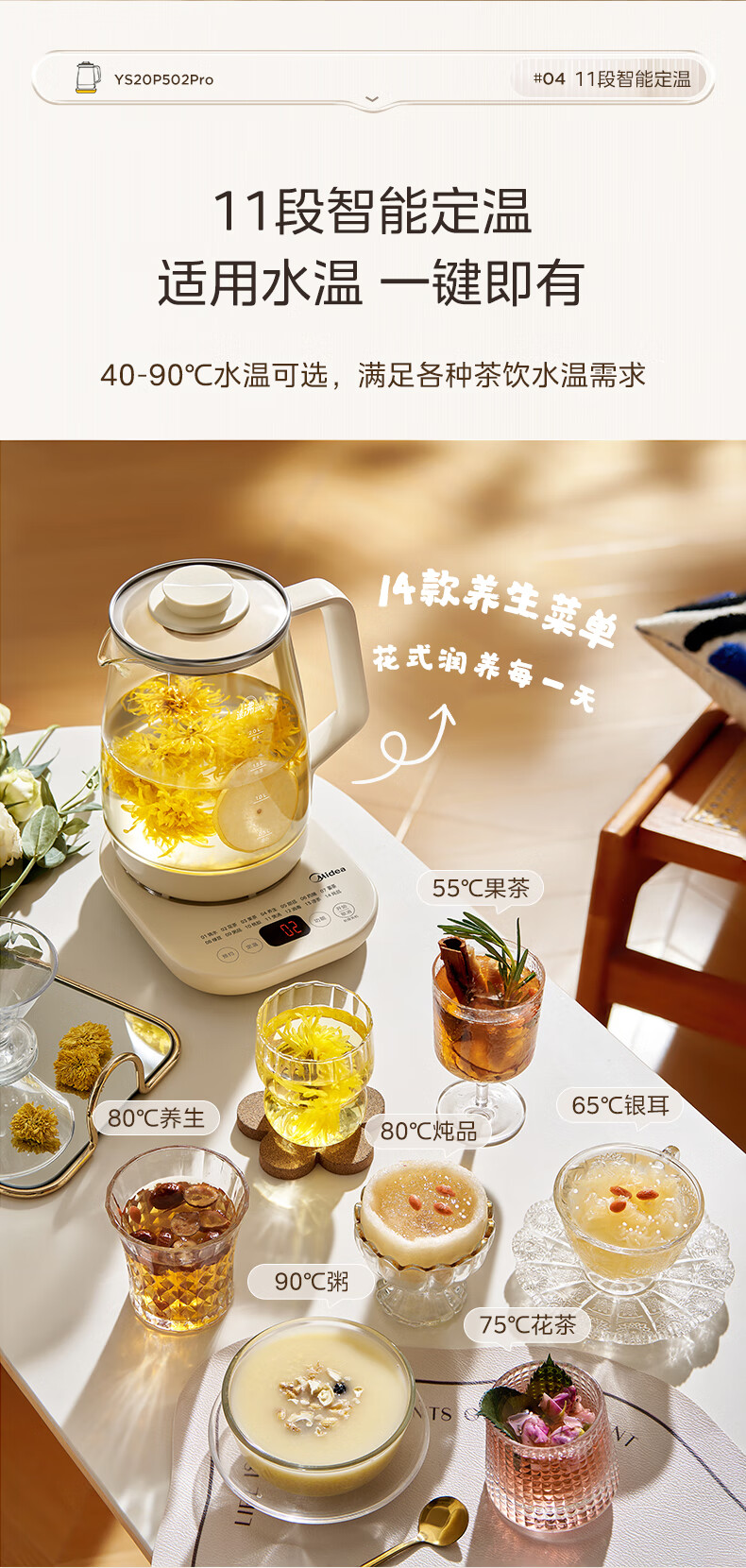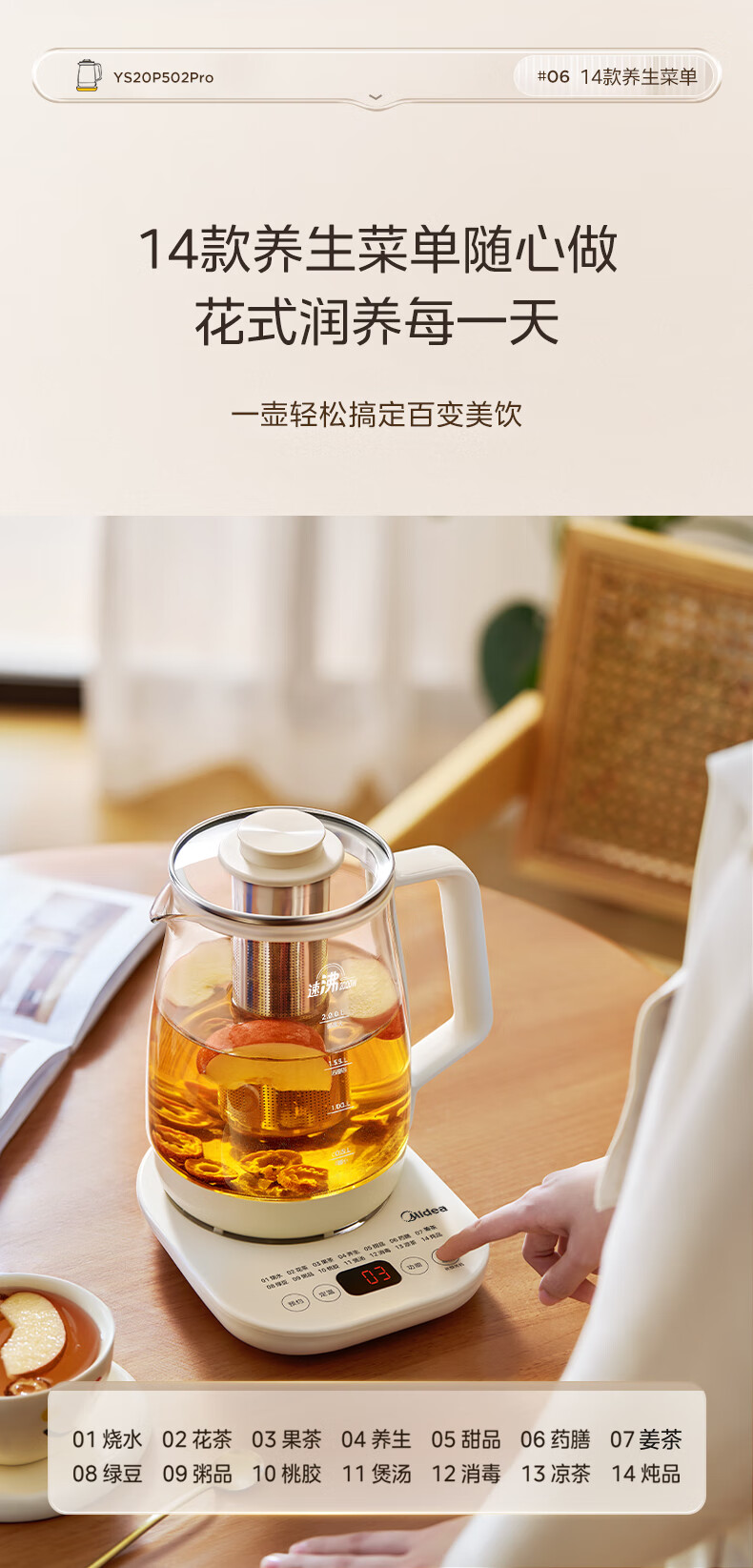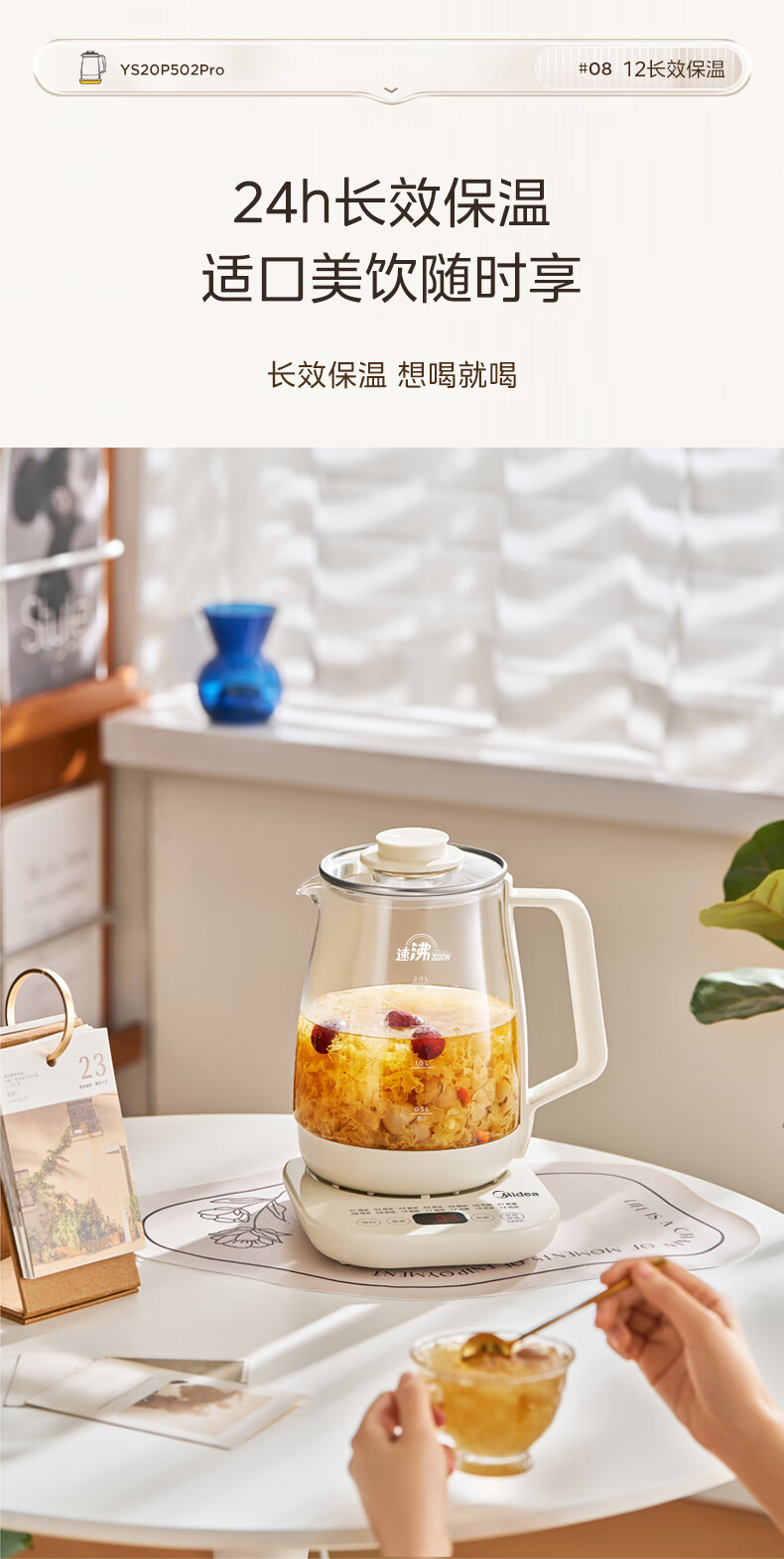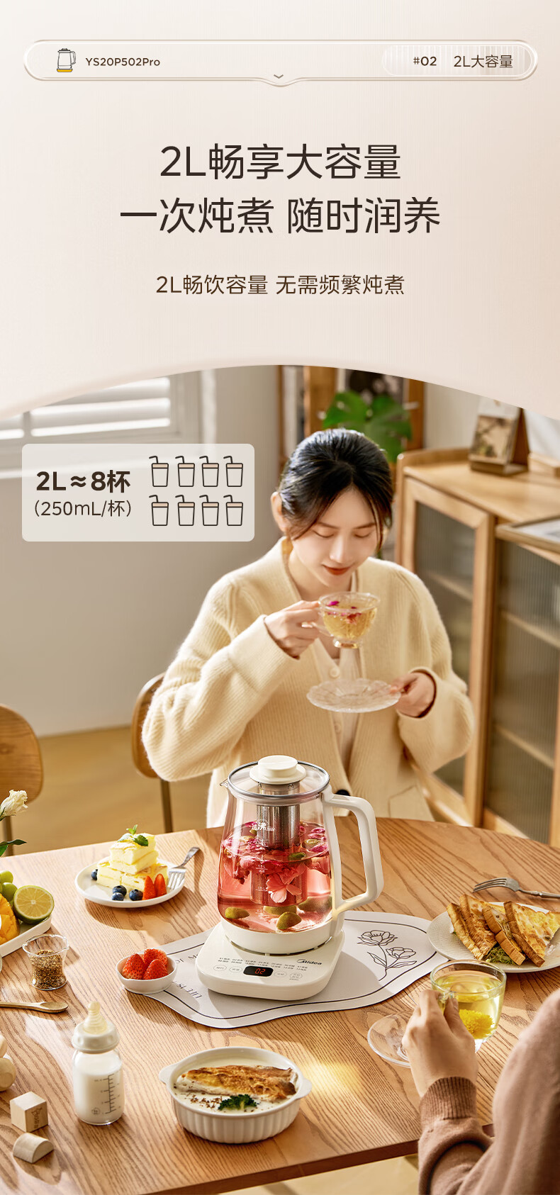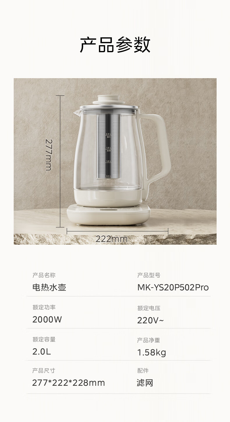 美的(Midea)养生壶2L大容量炖煮壶一体烧水壶恒温保温家用自动办公室花茶壶玻璃煮茶器316L不锈钢 【旗舰新品-配茶漏】 2L