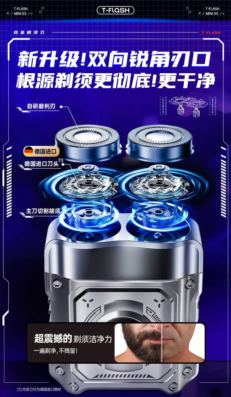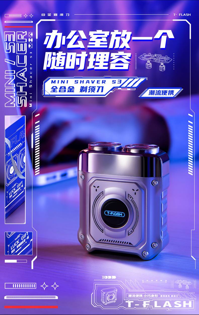 同诗艾齐S3合金机甲剃须刀男士电动便携迷你刮胡刀生日新年礼物送男朋友老公礼物