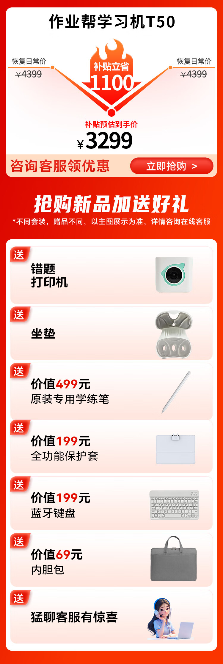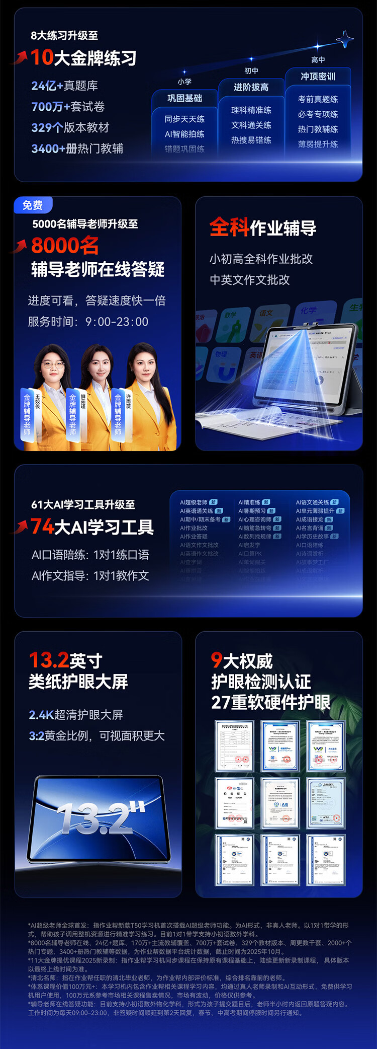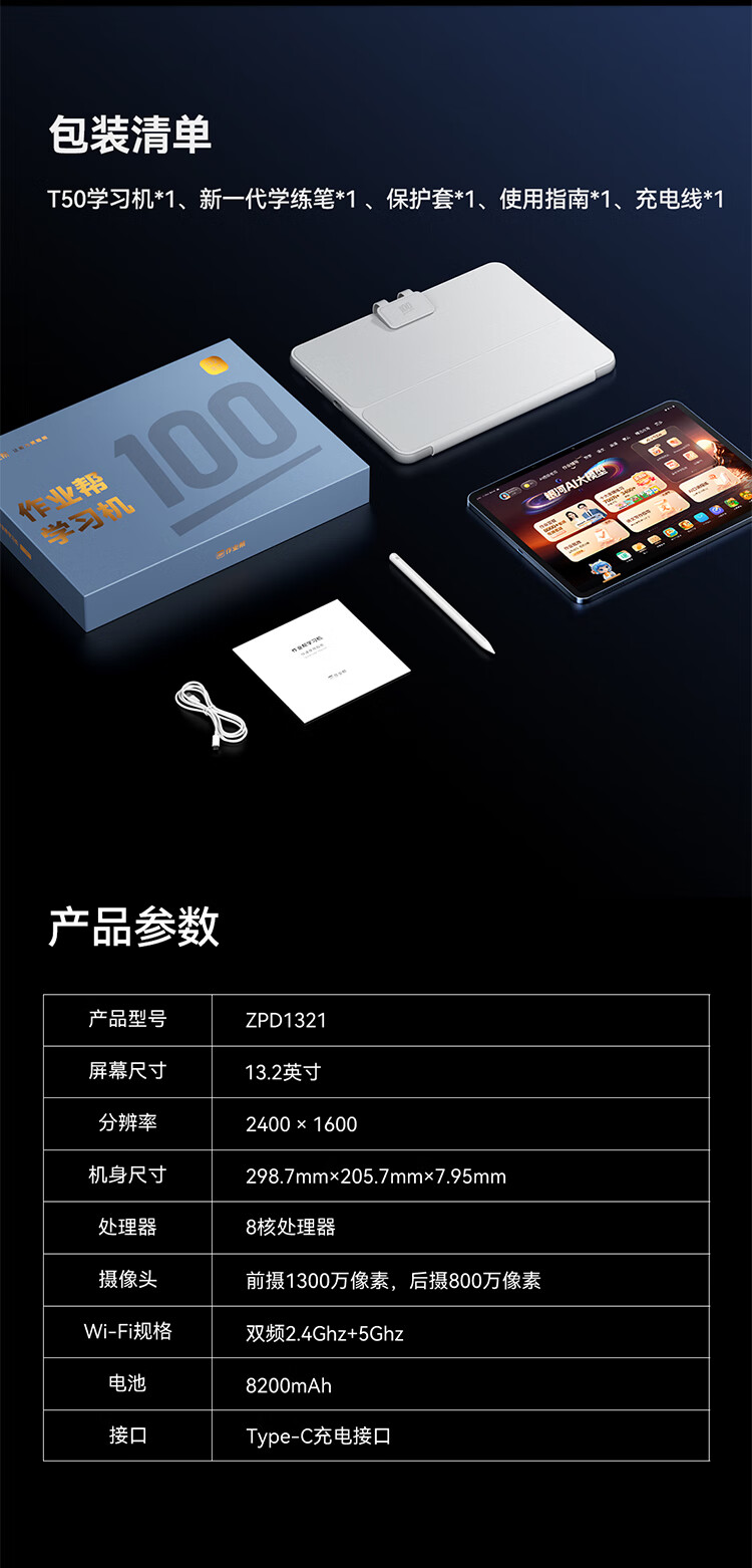 作业帮学习机T50学练机AI超级老师1对1 学生平板电脑小学到高中课程同步全科学练一体机13.2英寸 T50【旗舰新品】8+256G