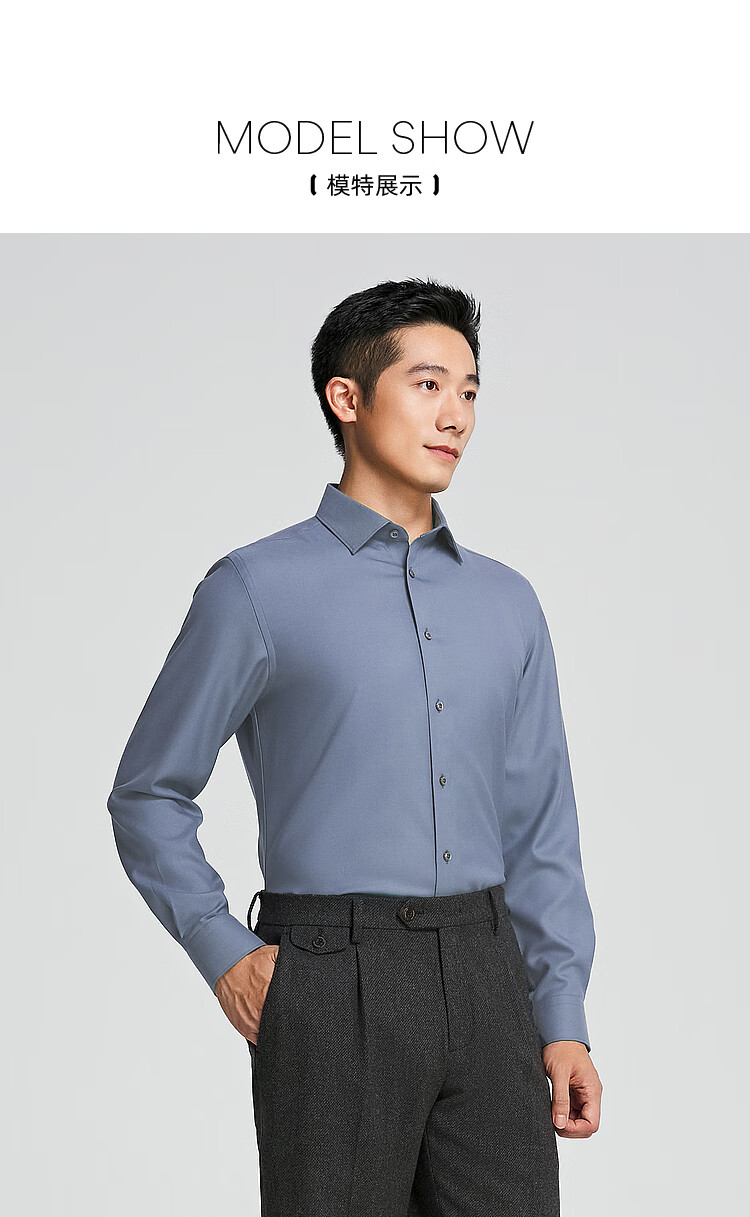 雅戈尔衬衫男士秋冬青年男长袖衬衫YLQW115524HBA 蓝色素色YLQW115524HBA 43