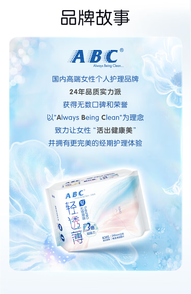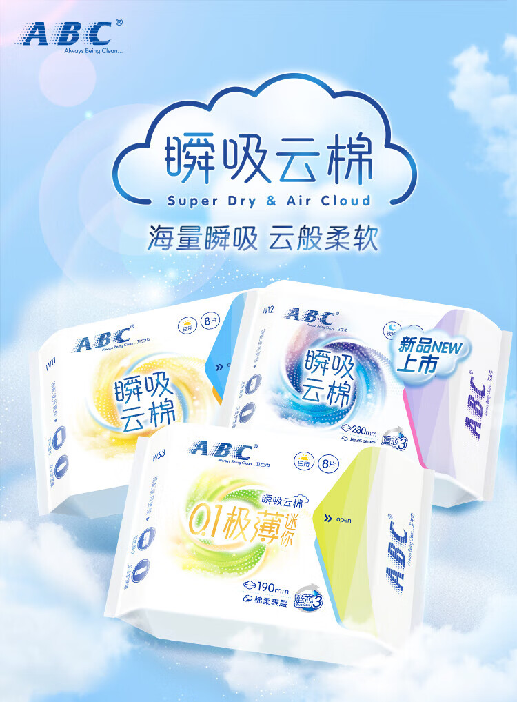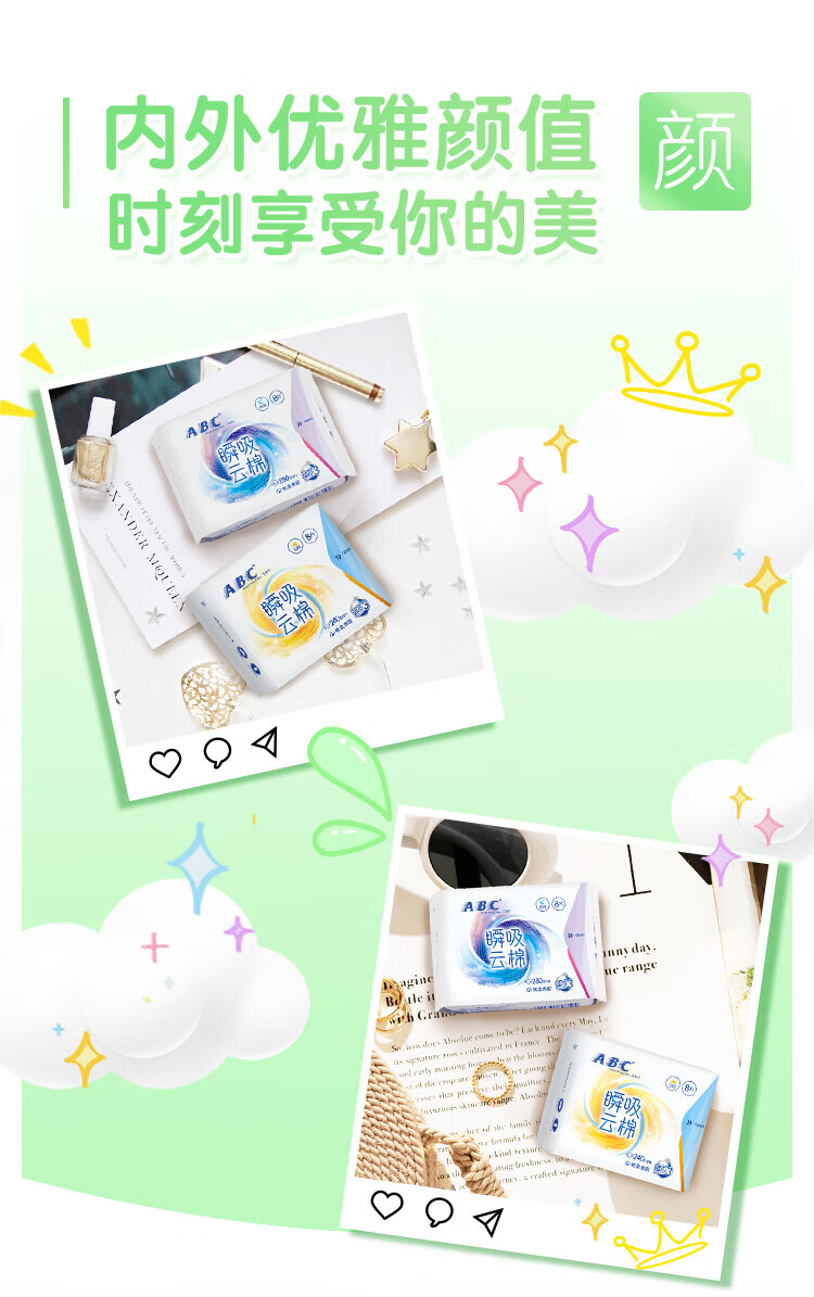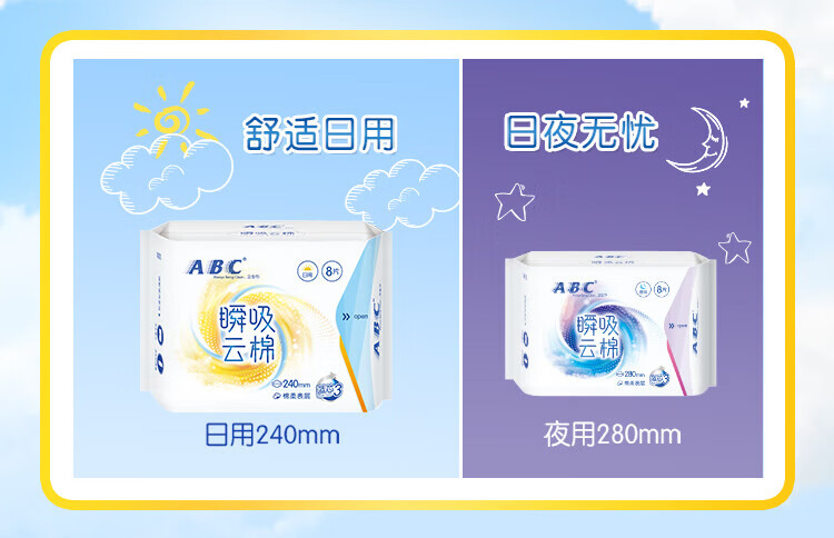 ABC卫生巾日用迷你巾组合装 日用240mm7包56片+迷你巾190mm16片
