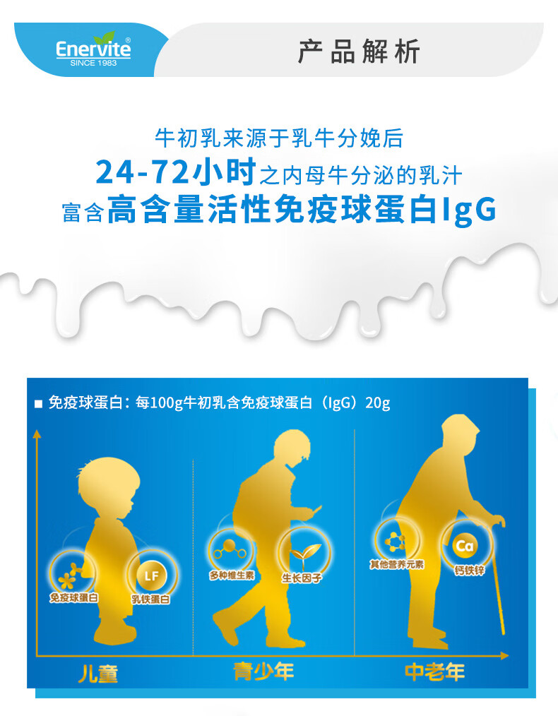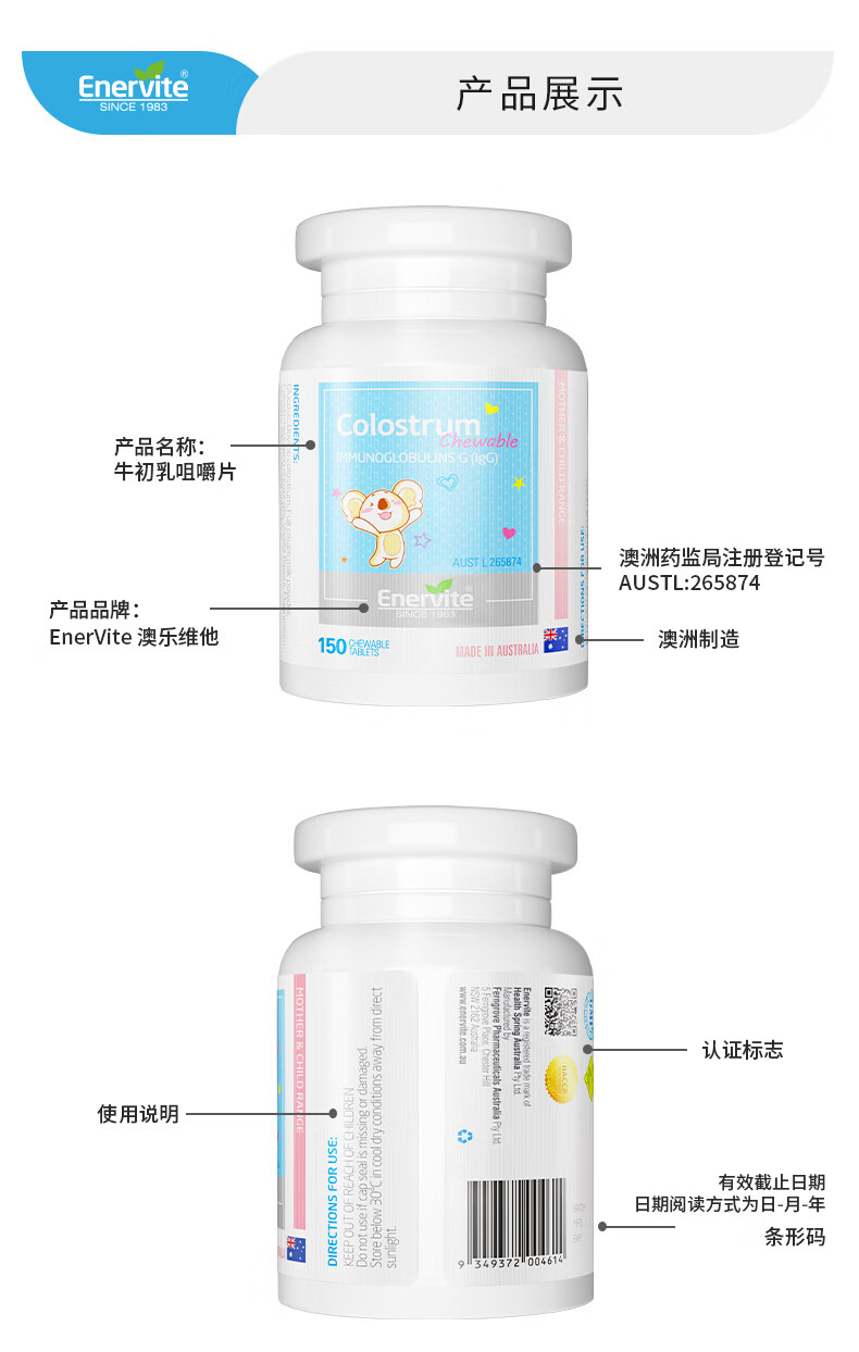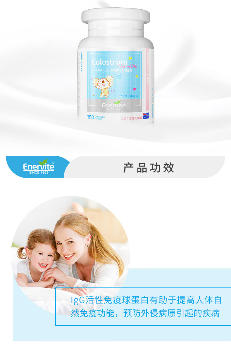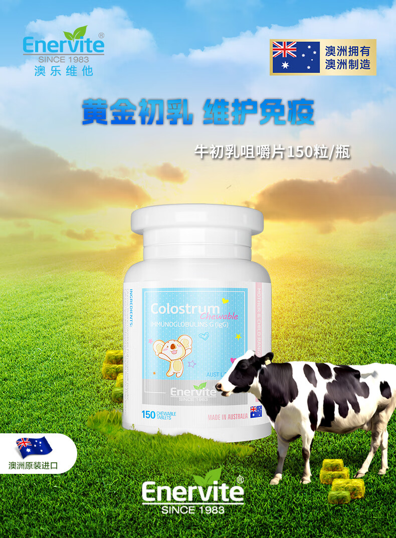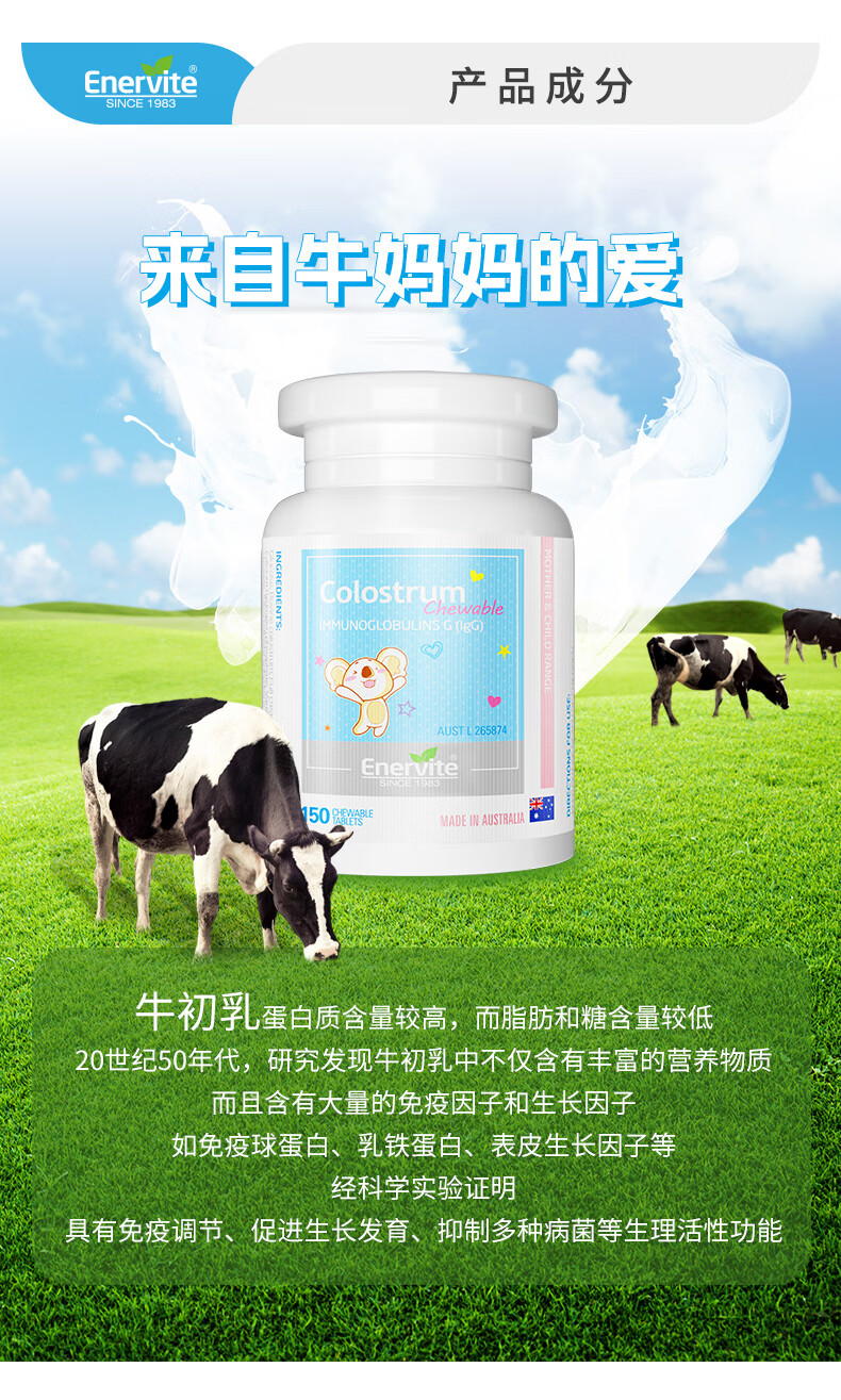 EnerVite牛初乳咀嚼片免疫球蛋白儿童钙片增强免疫力补充营养纯天然奶片 150粒/瓶