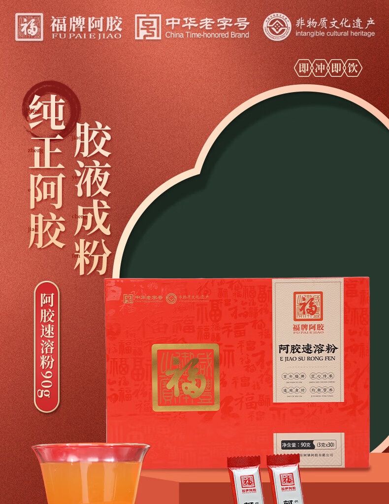 福牌阿胶阿胶速溶粉90g礼盒 阿胶粉易溶解便携 滋补营养品礼物礼品送长辈 90g(3g*30袋)