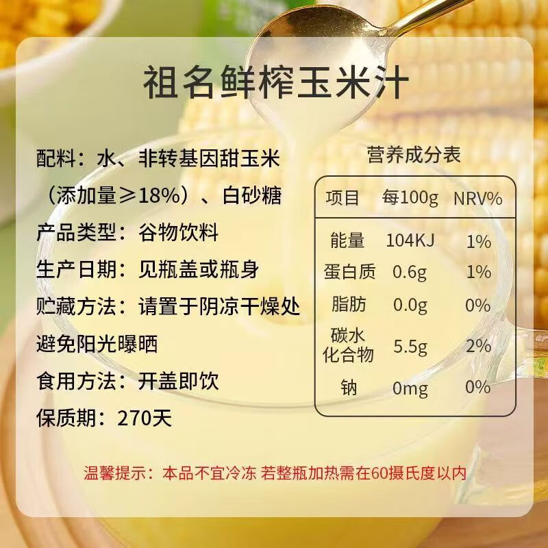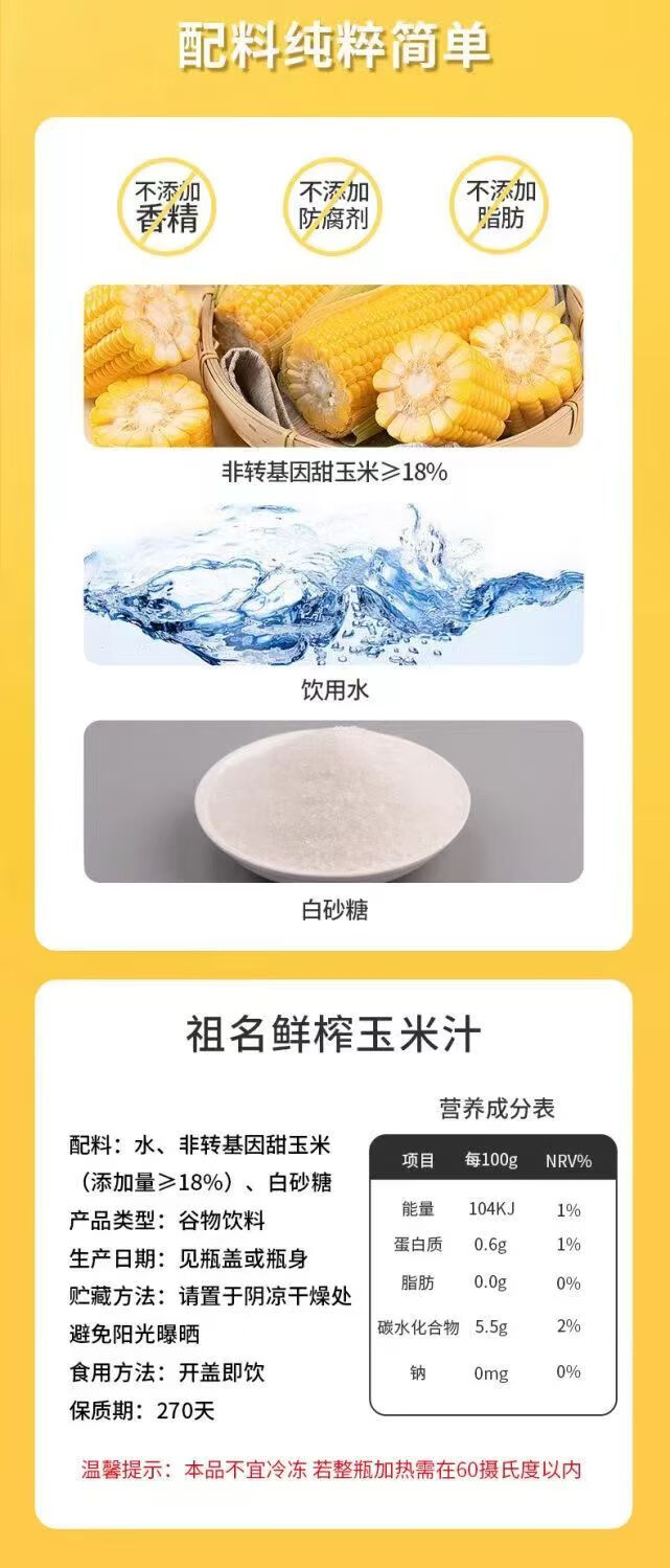 祖名鲜榨玉米汁大瓶1千克非浓缩无添加现炸营养早餐聚会谷物蔬果饮料 【全家共享】囤货6瓶装