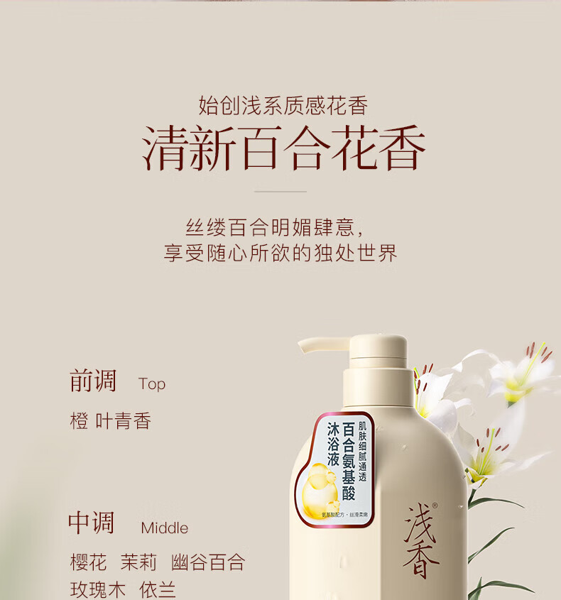 浅香沐浴露洗发水 氨基酸百合滋润保湿沐浴液 男女士通用持久留香 百合沐浴露750gx3瓶