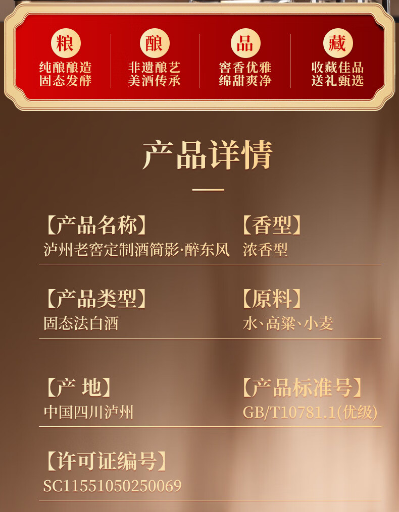 泸州老窖简影醉东风52度浓香型高度纯粮食白酒整箱礼盒年货送礼宴请 52度 500mL 6瓶