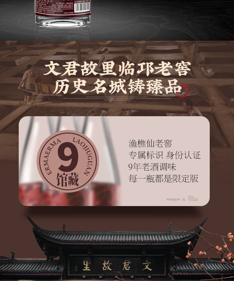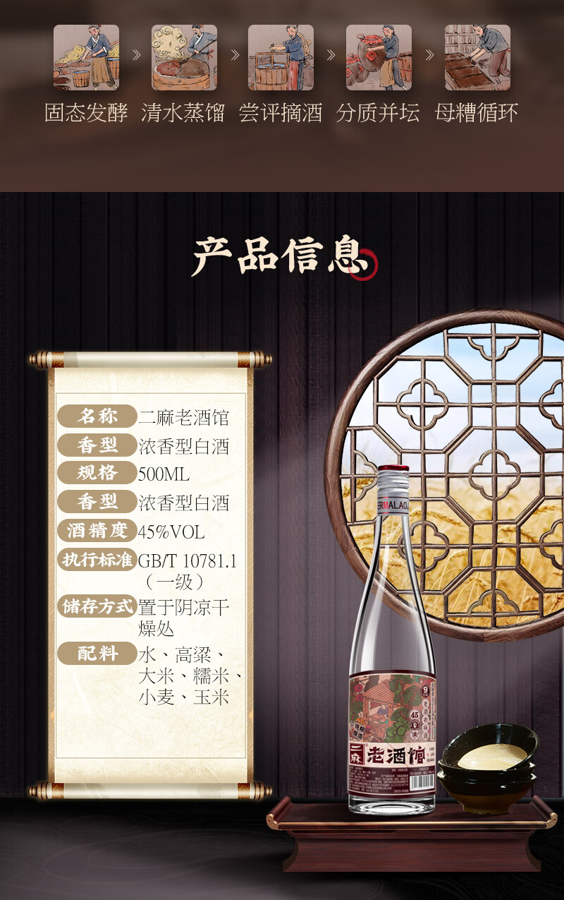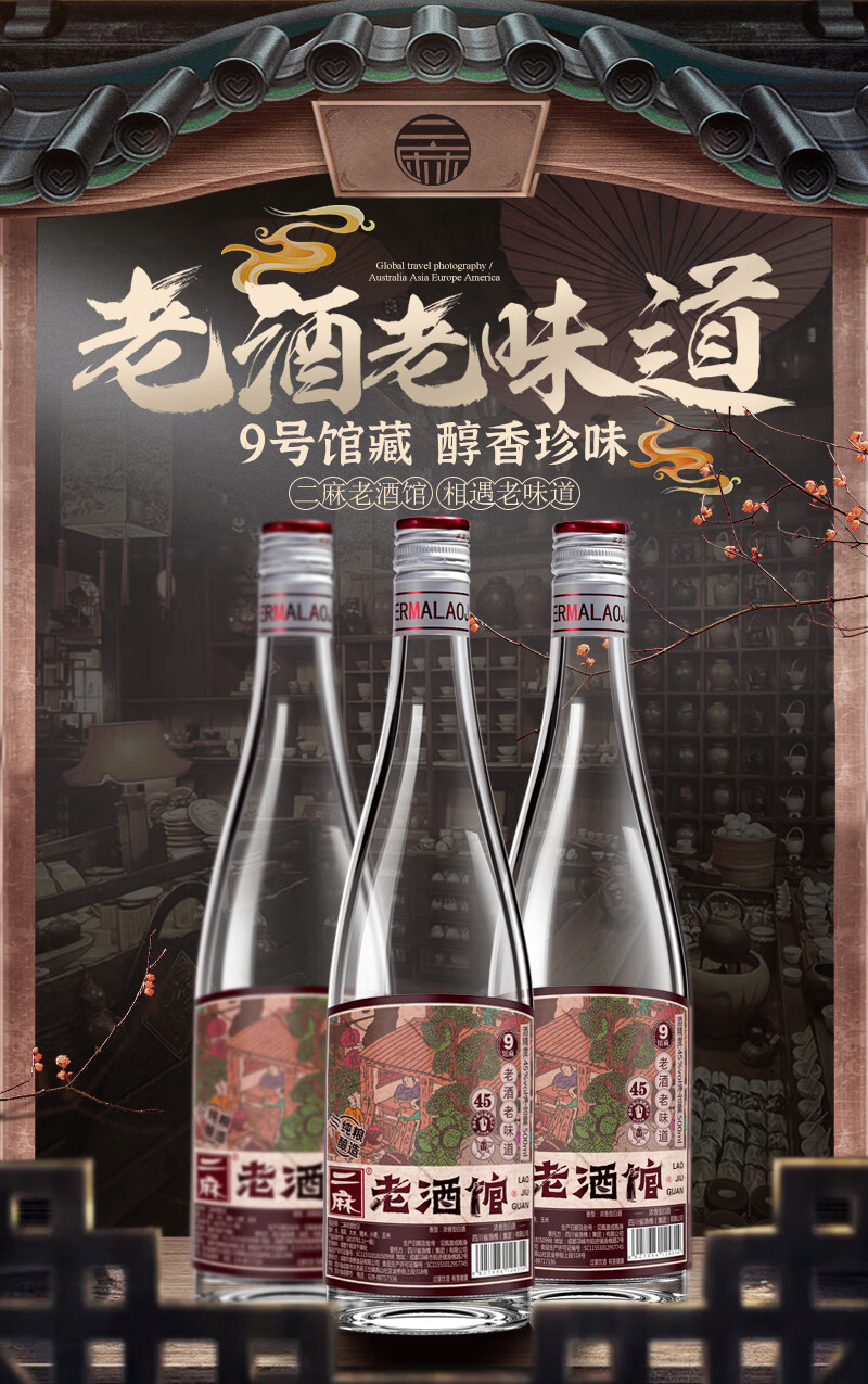 二麻二麻老酒馆 馆藏9号浓香型白酒45度纯粮口粮酒光瓶酒四川窖藏老酒送礼 45度 500mL 6瓶