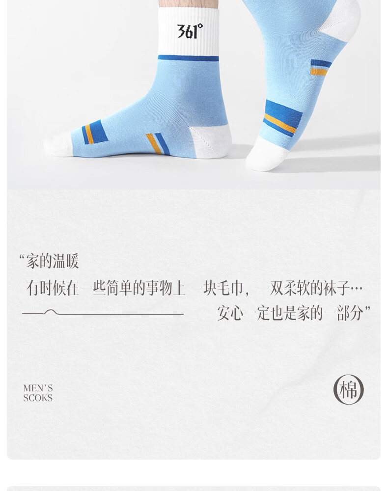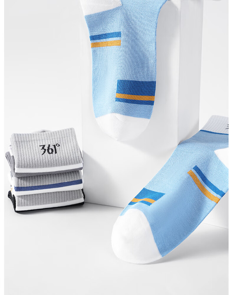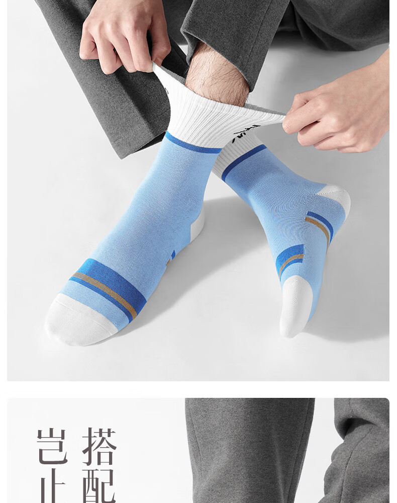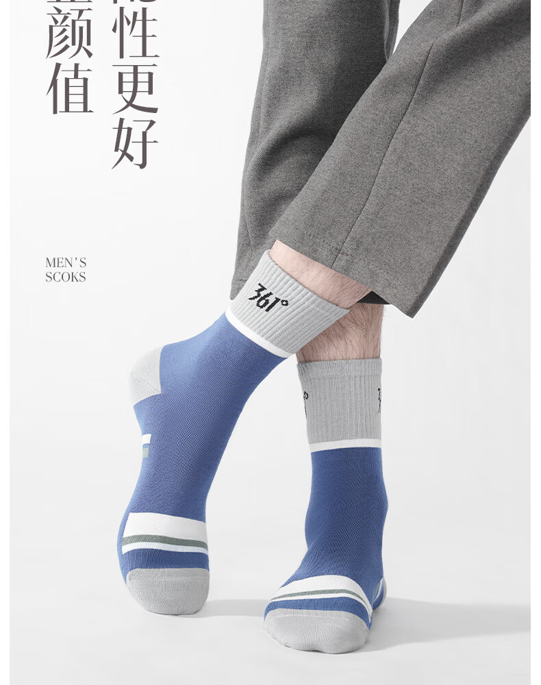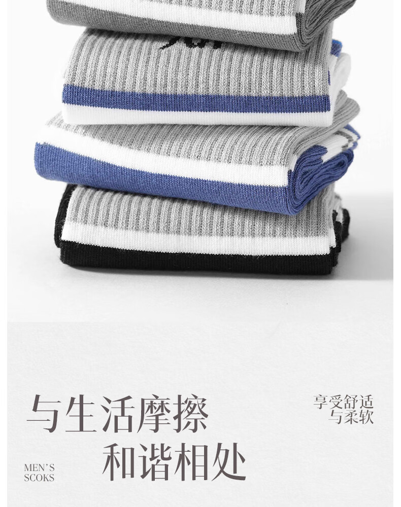 361°袜子男士春秋运动款中筒袜吸汗透气拼色条纹袜秋冬季男袜中筒袜 混色5双装