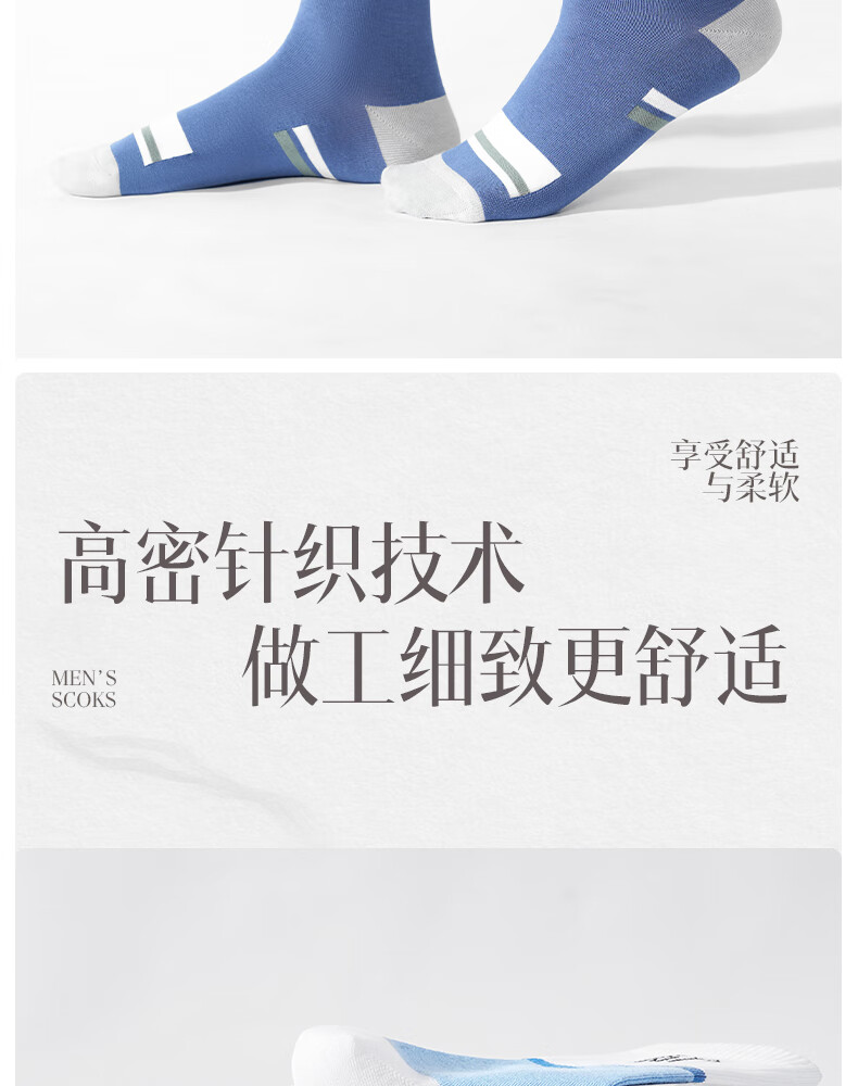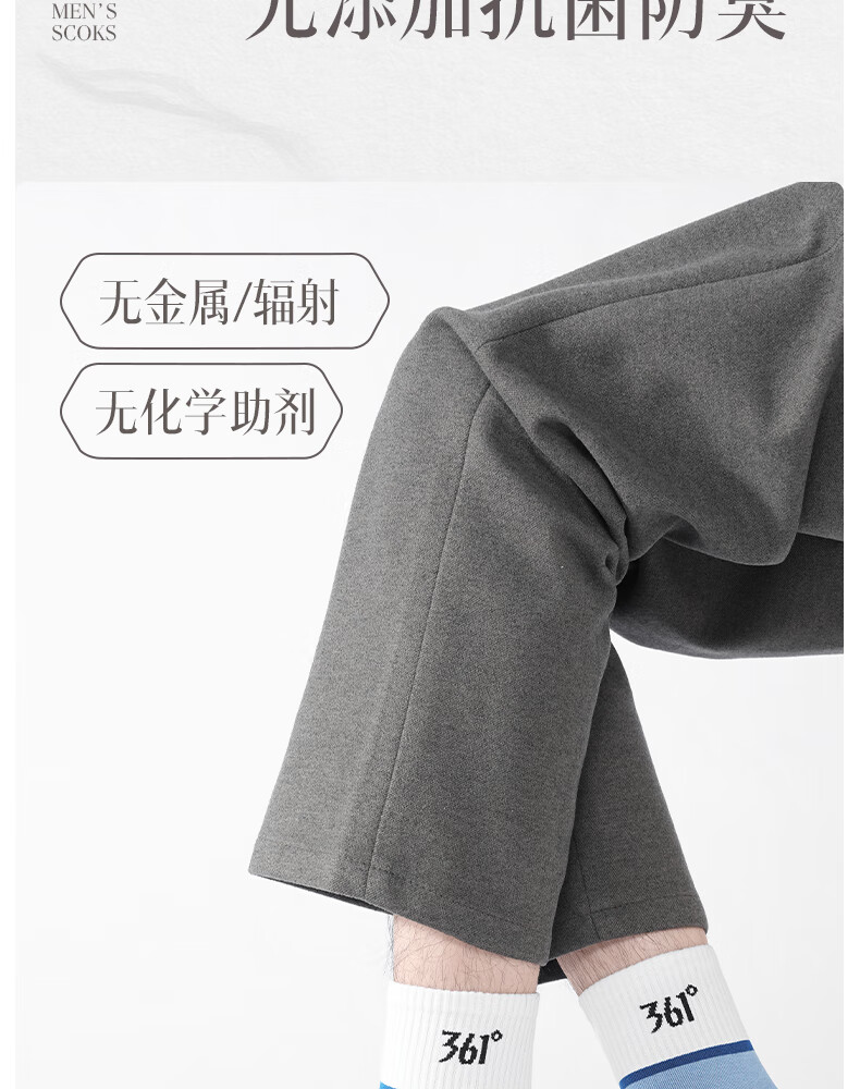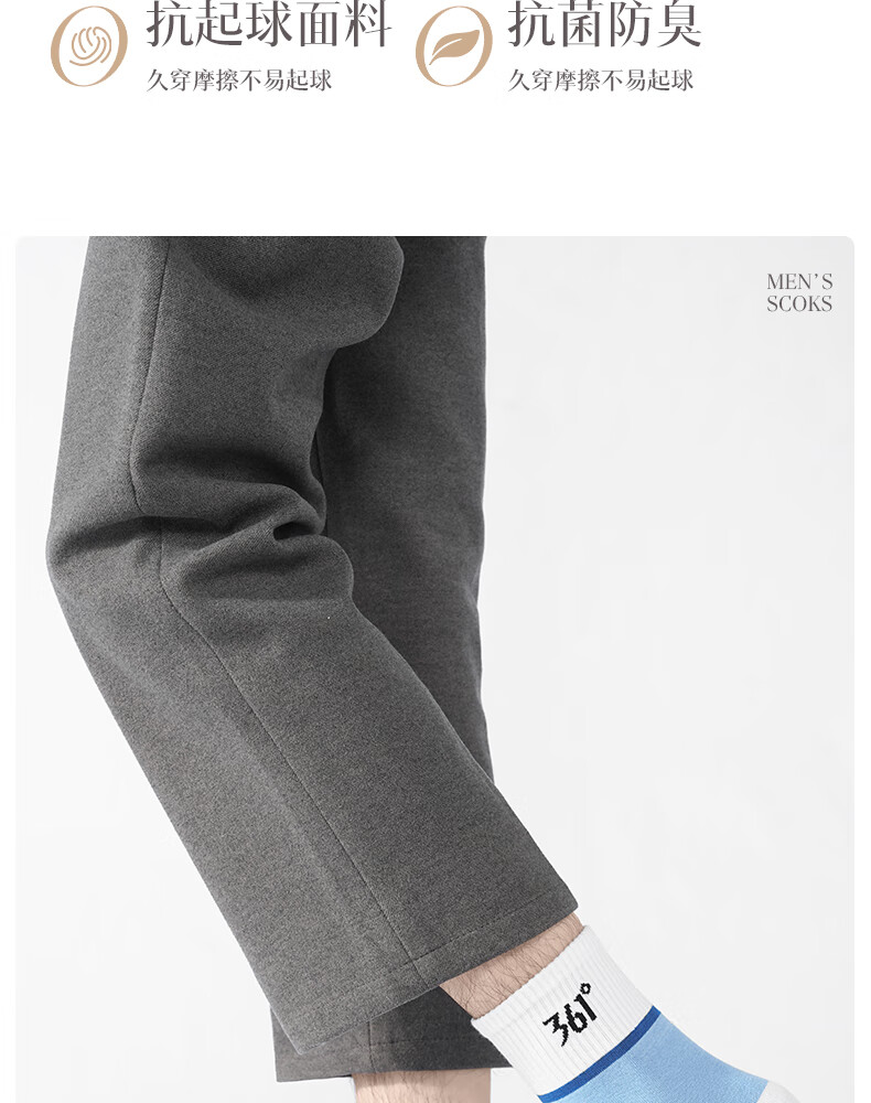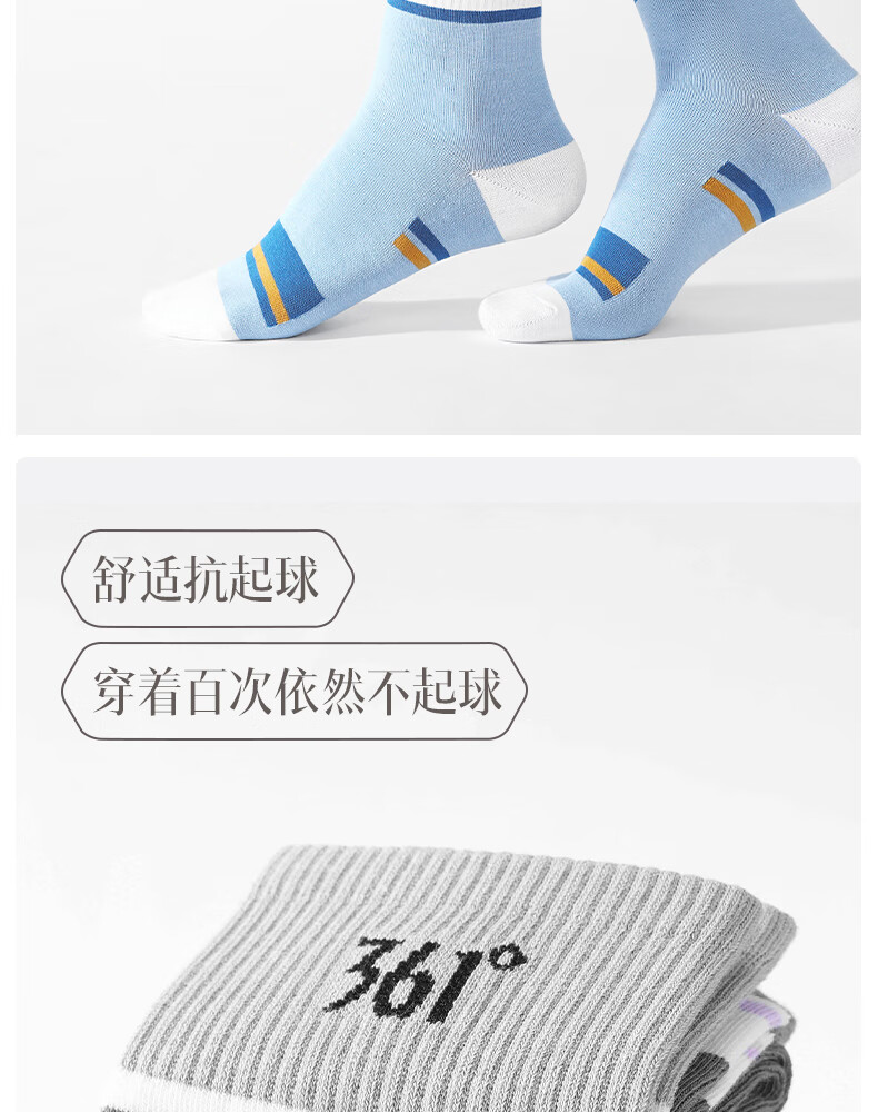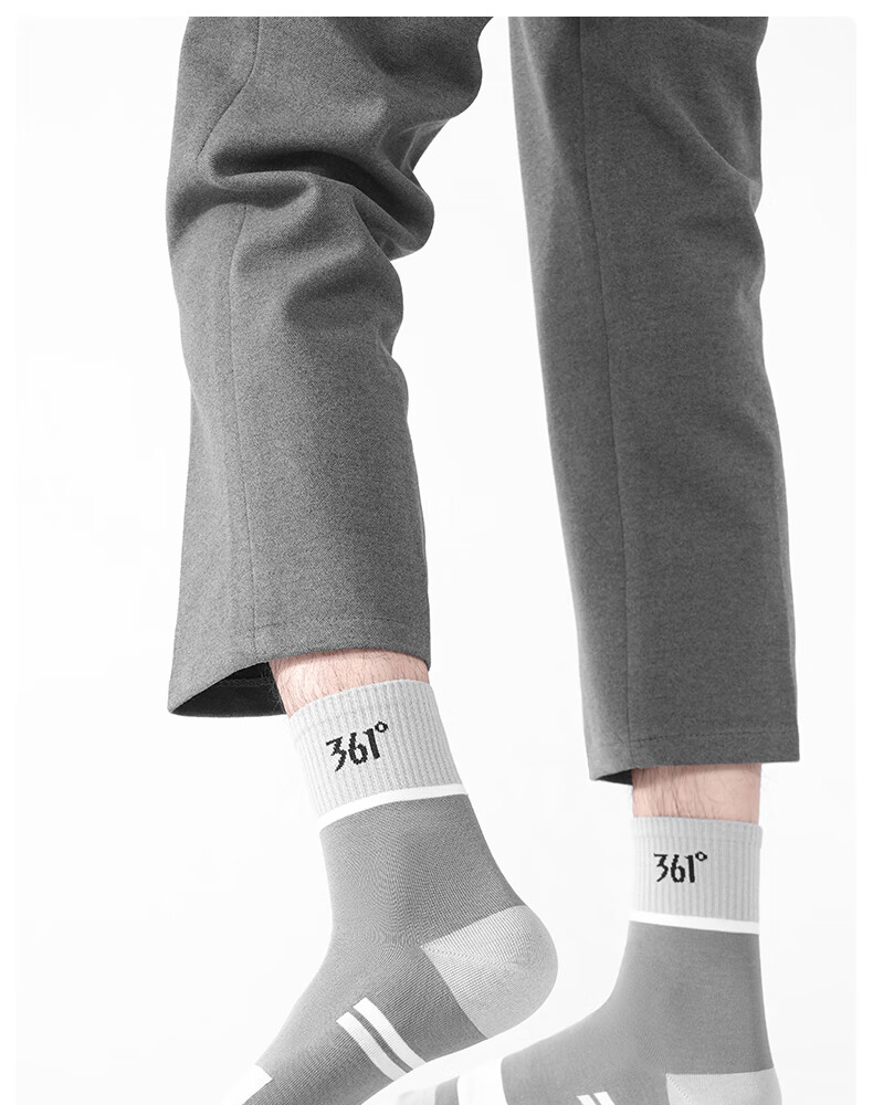 361°袜子男士春秋运动款中筒袜吸汗透气拼色条纹袜秋冬季男袜中筒袜 混色5双装