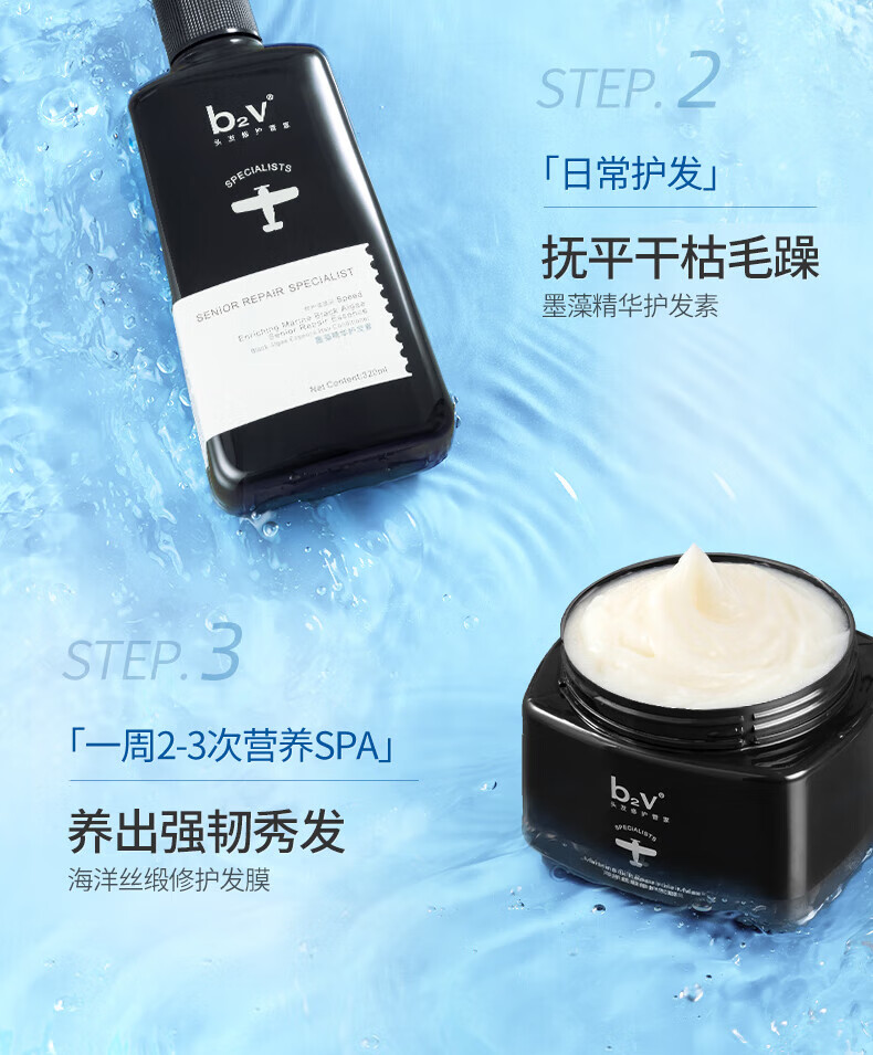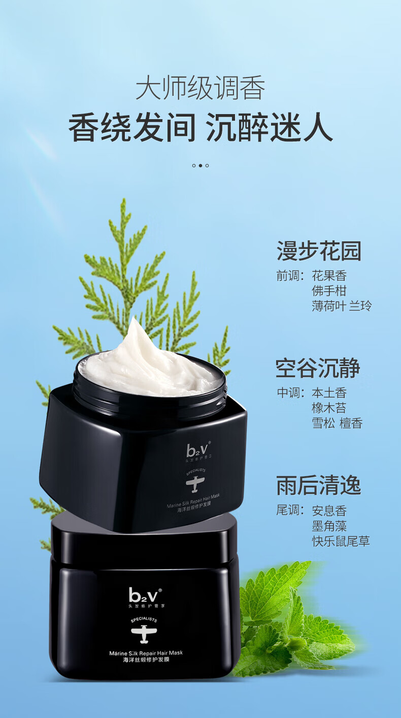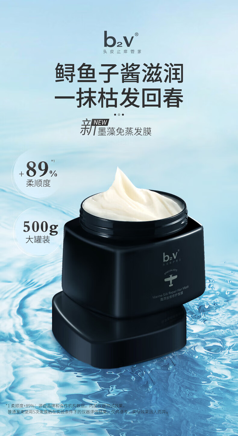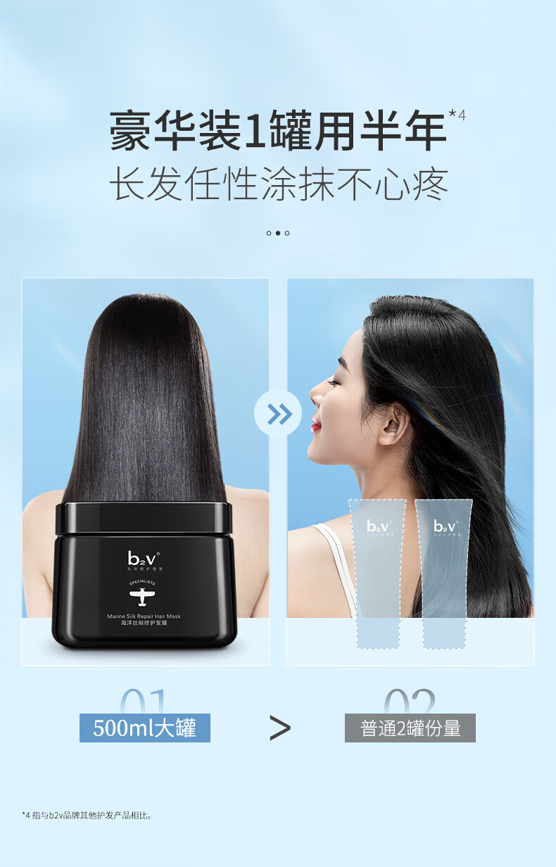 b2v免蒸修护发膜500ml 海洋丝缎鱼子酱 改善毛躁滋润柔顺光泽护发素 免蒸修护发膜500g*1瓶+96ml