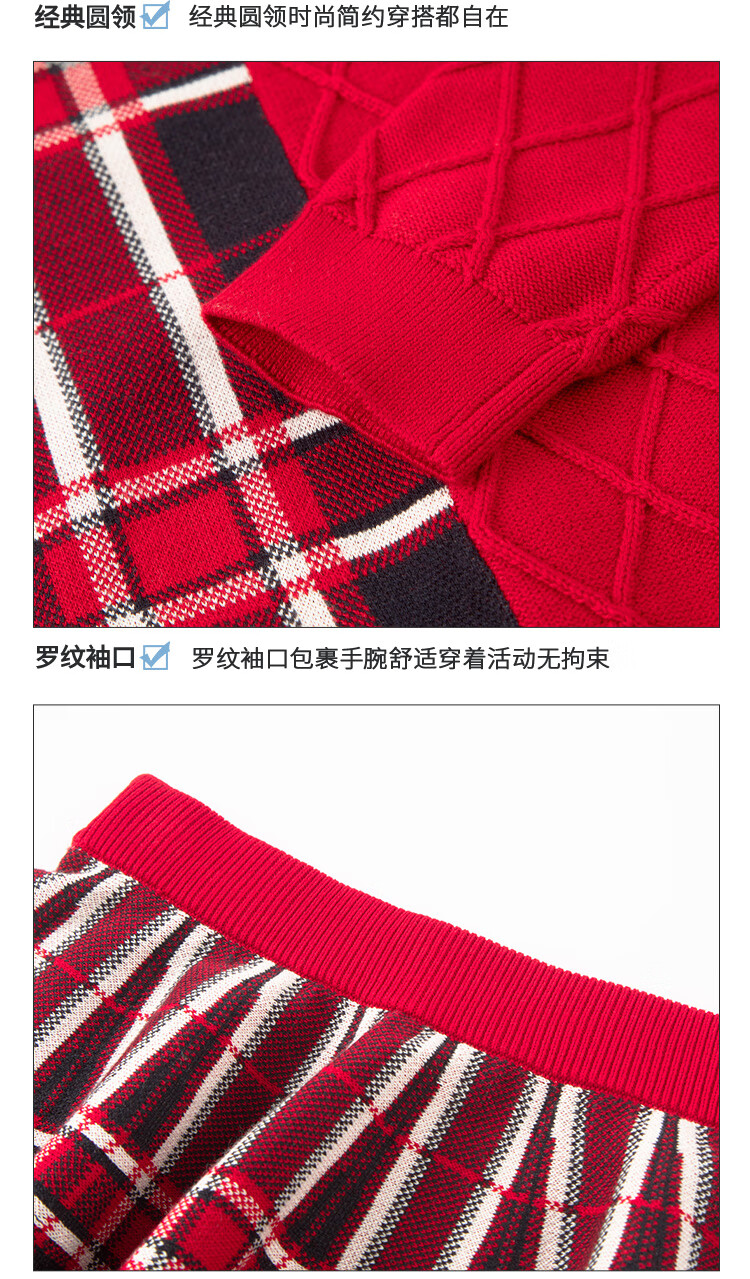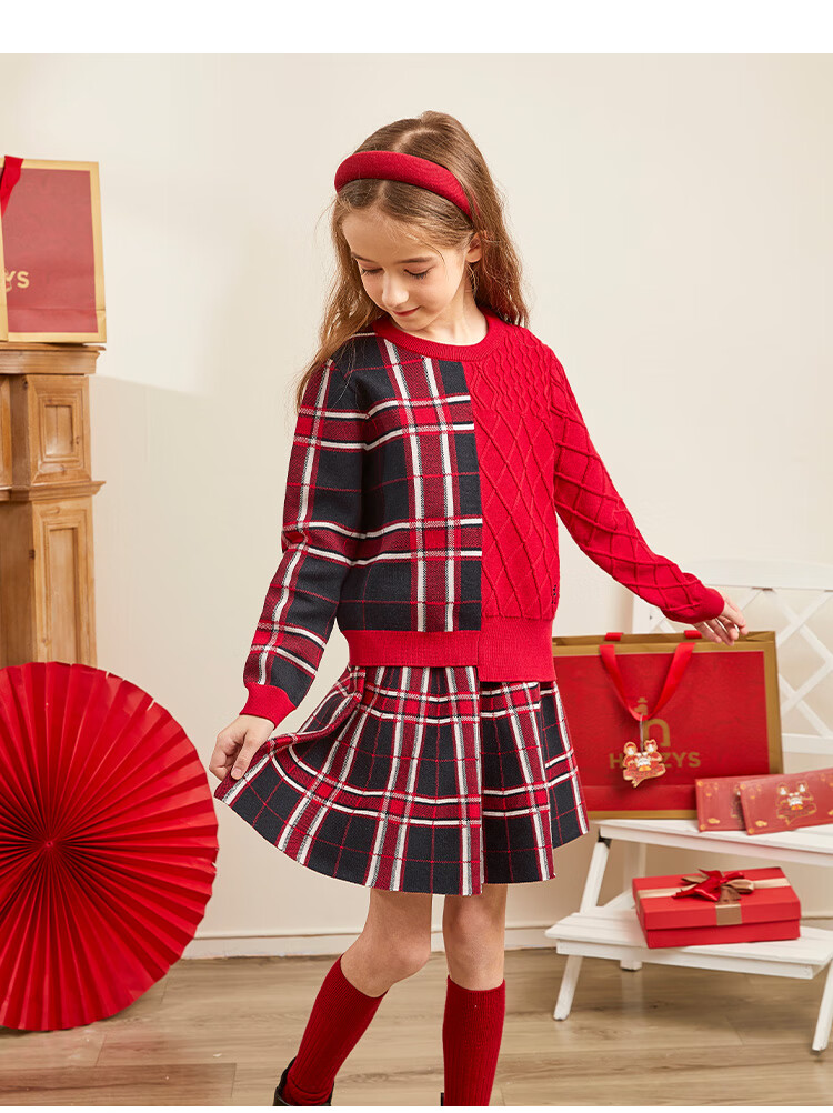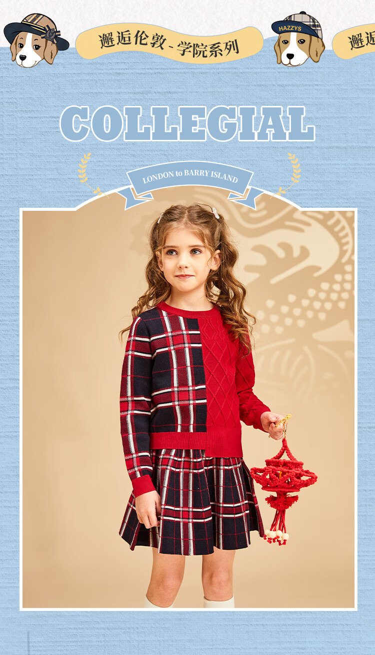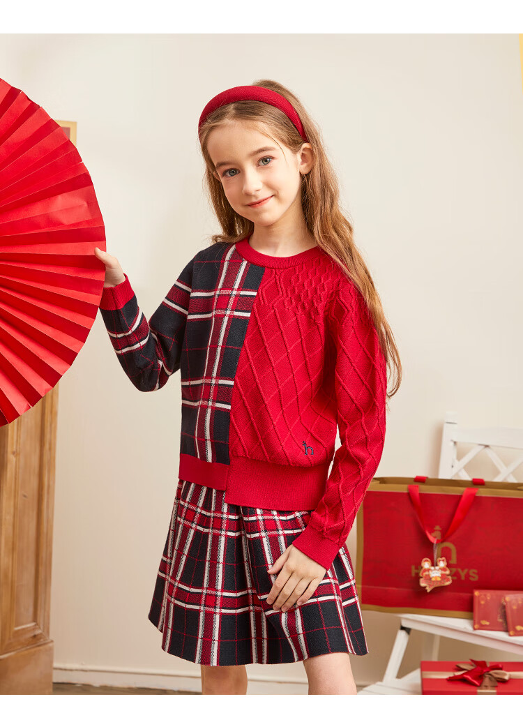 哈吉斯(HAZZYS)童装女童套装春新品红品经典圆领简约舒适保暖女童套装 经典红 120