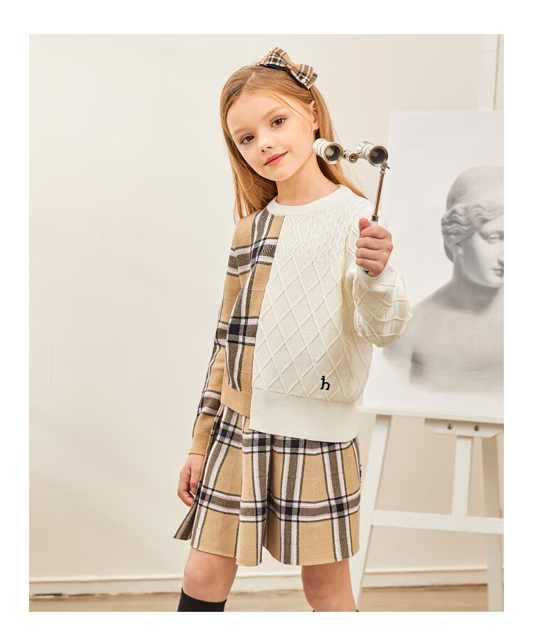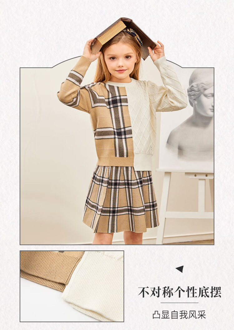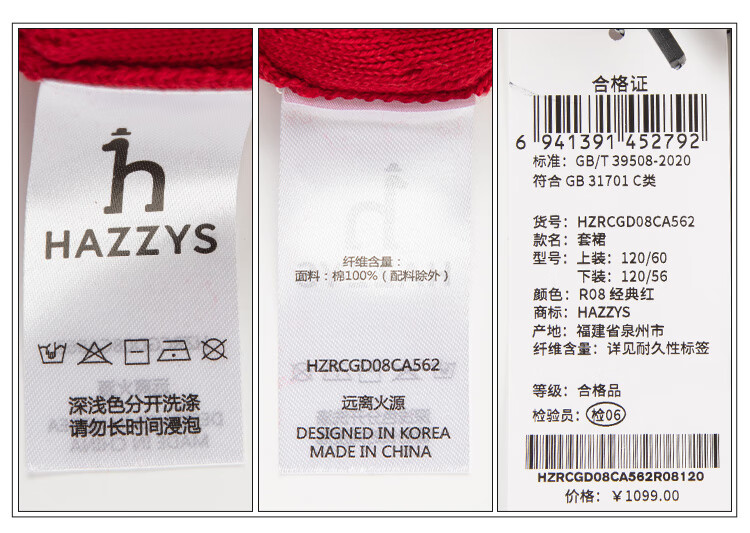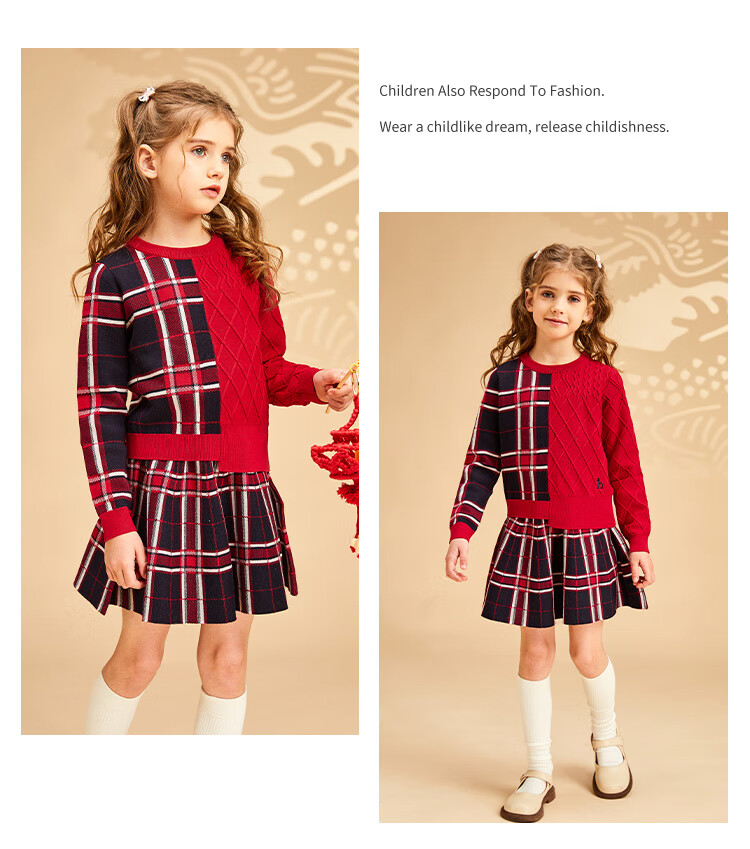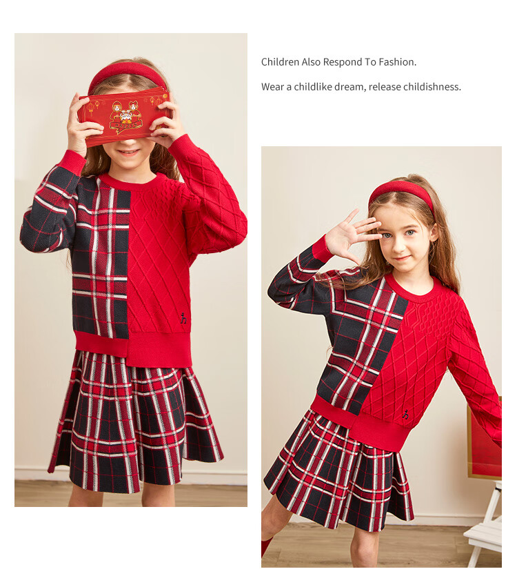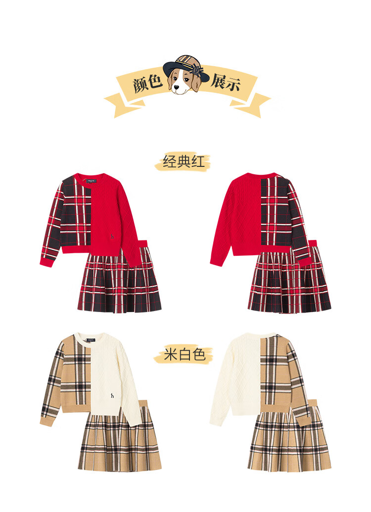 哈吉斯(HAZZYS)童装女童套装春新品红品经典圆领简约舒适保暖女童套装 经典红 120