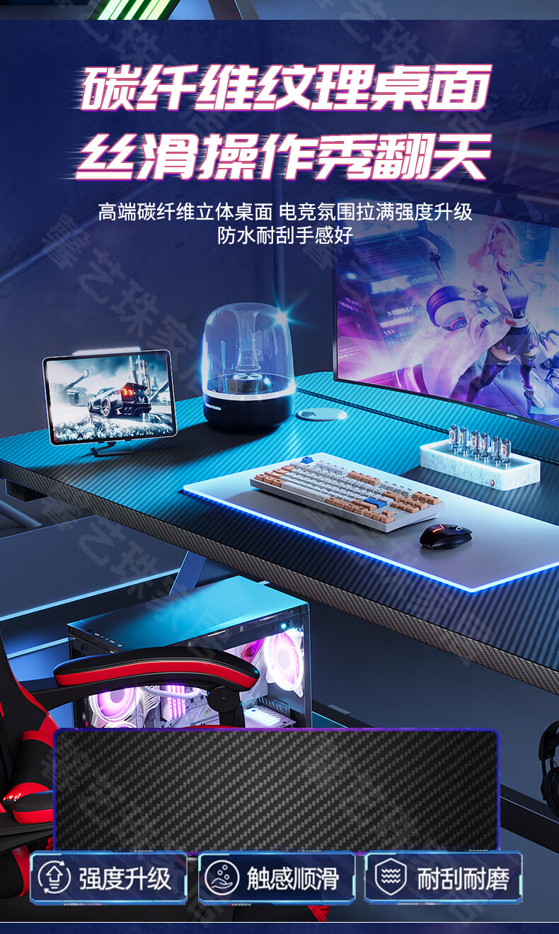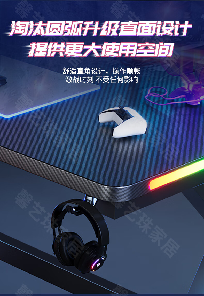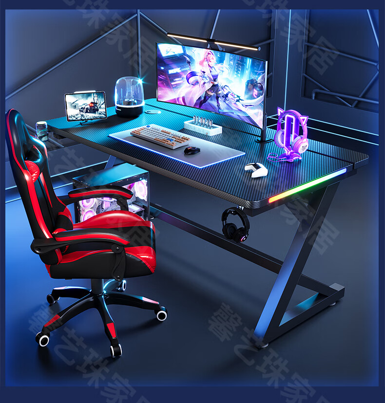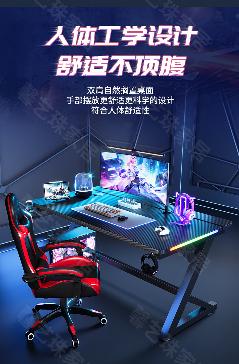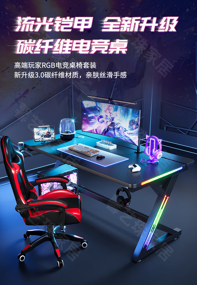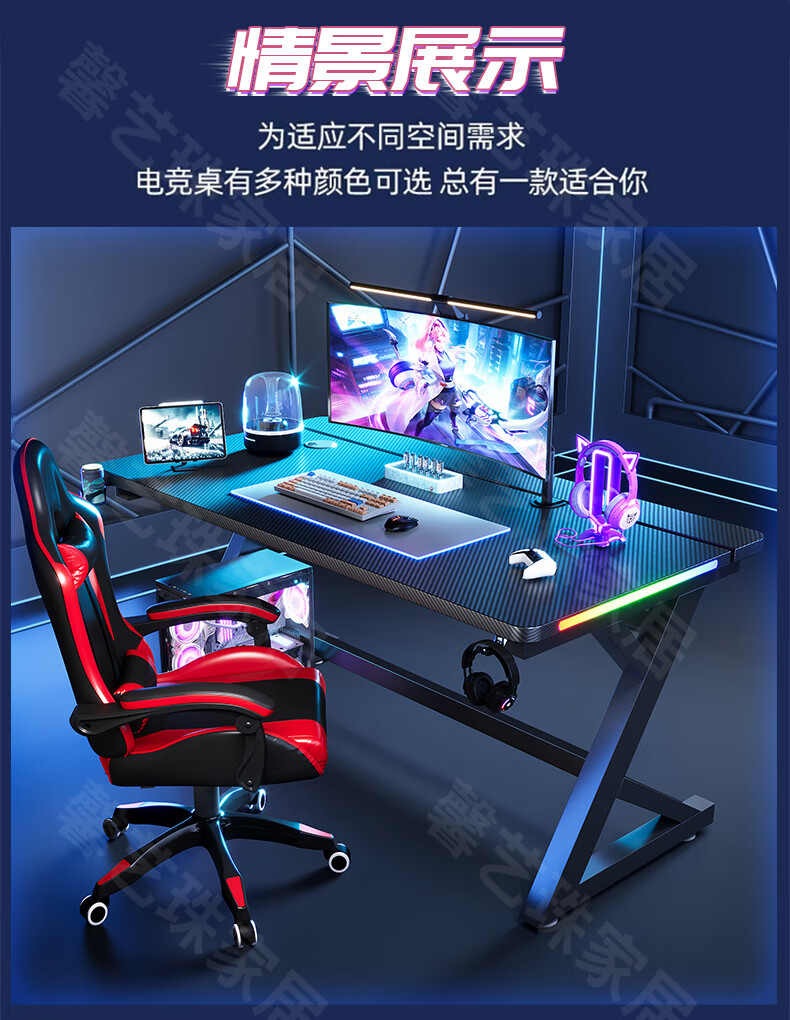 馨艺珠升级S3钛戟电竞桌台式电脑桌实木家用书桌可装机械臂碳纤维游戏桌 S3黑碳纤维+桌面灯 100*73*74cm【二分段板】