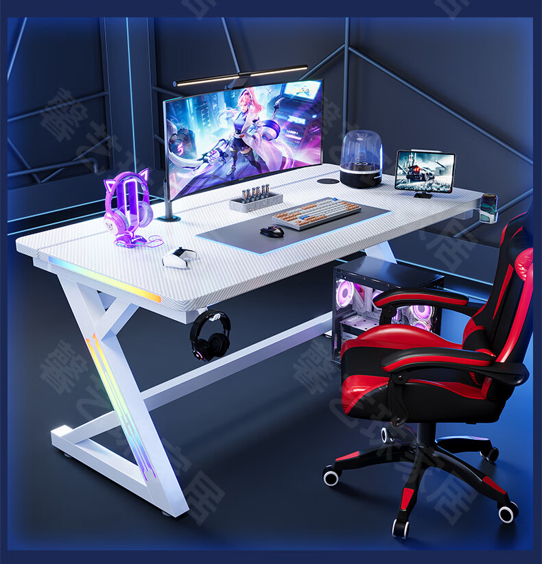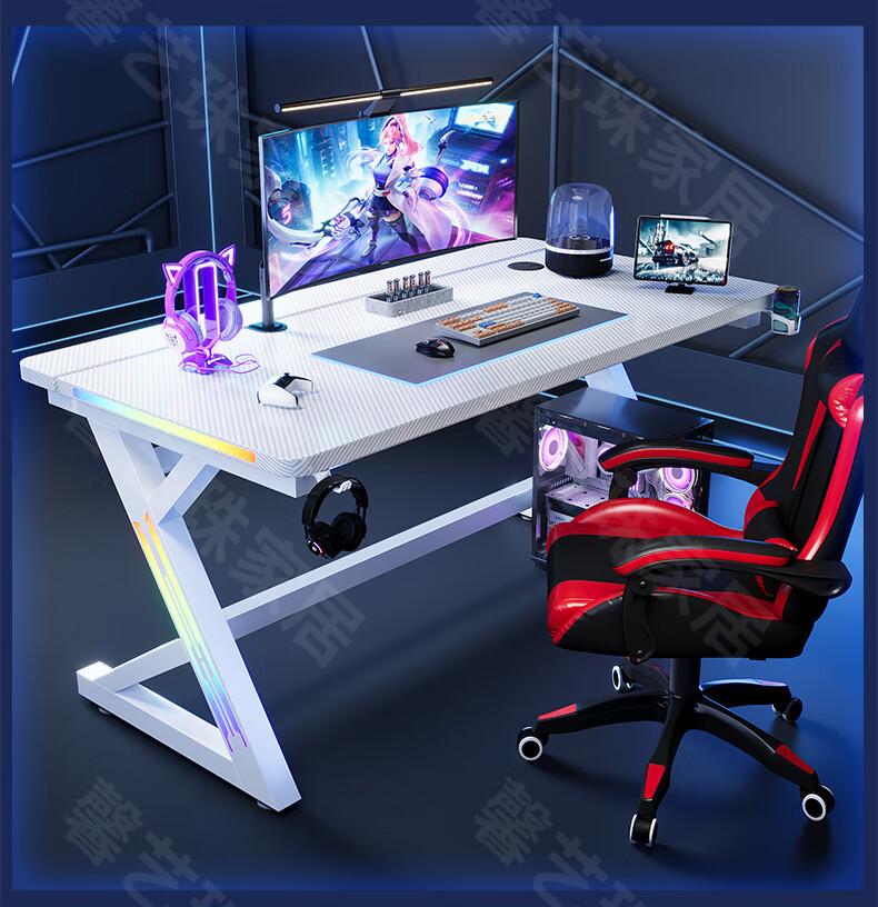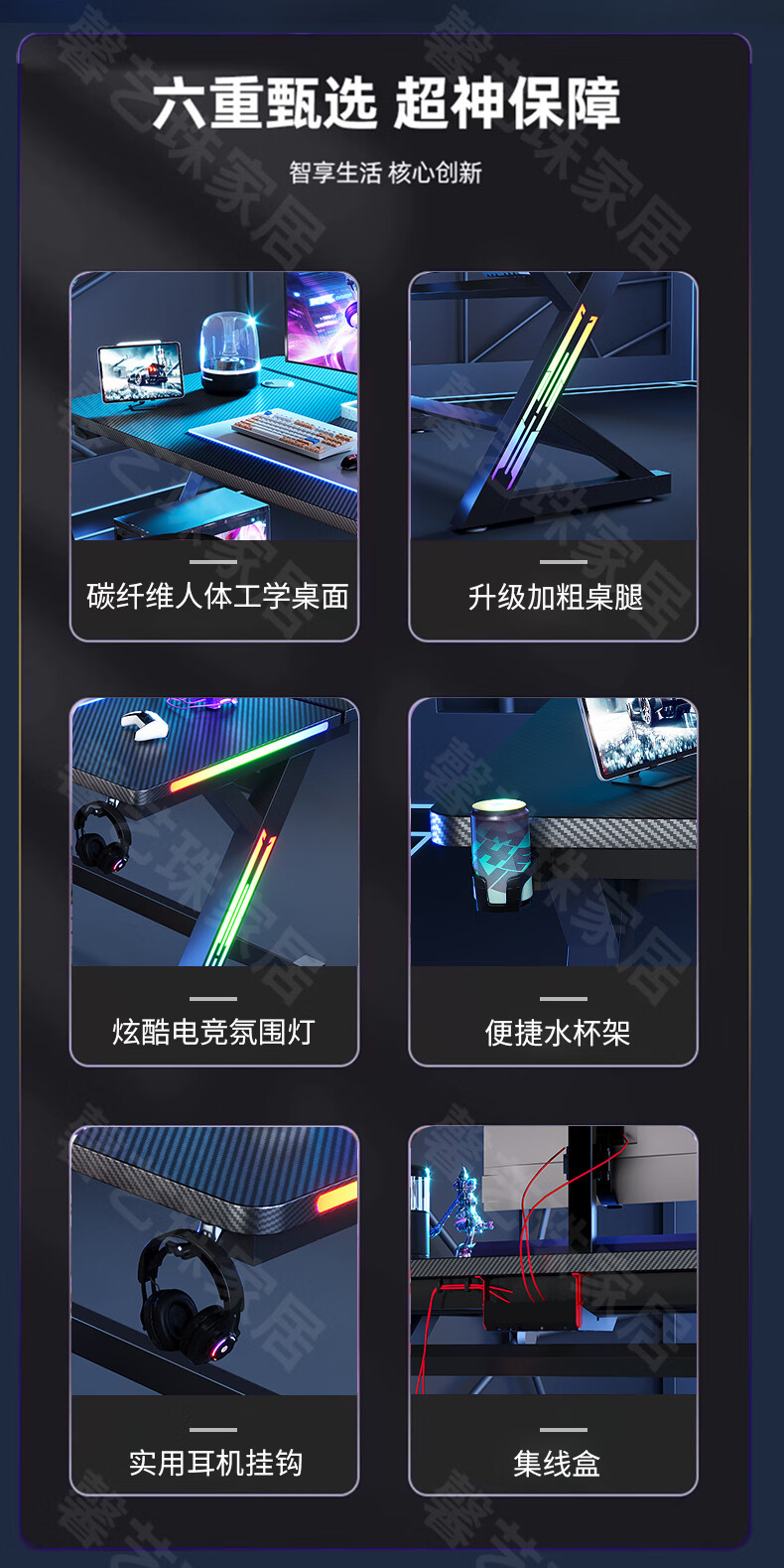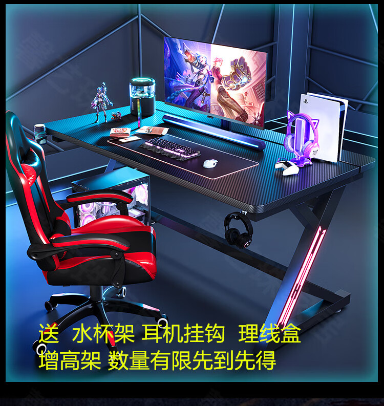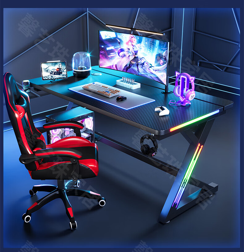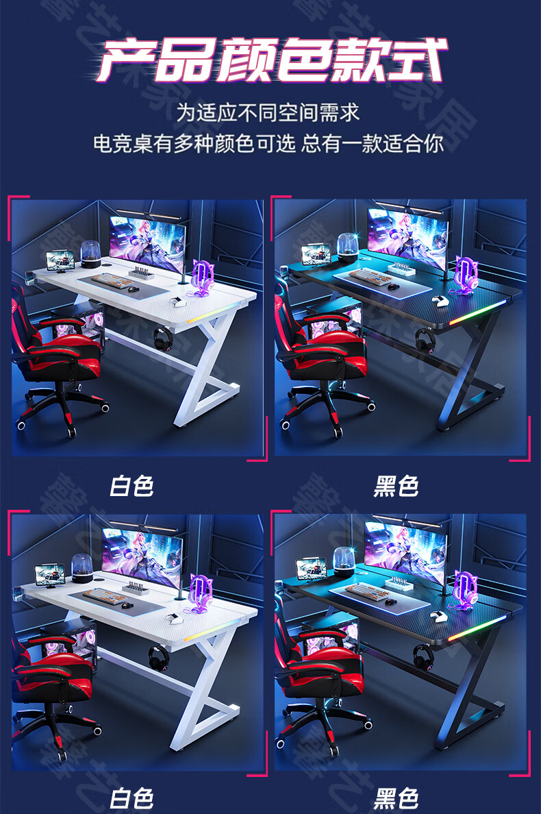 馨艺珠升级S3钛戟电竞桌台式电脑桌实木家用书桌可装机械臂碳纤维游戏桌 S3黑碳纤维+桌面灯 100*73*74cm【二分段板】